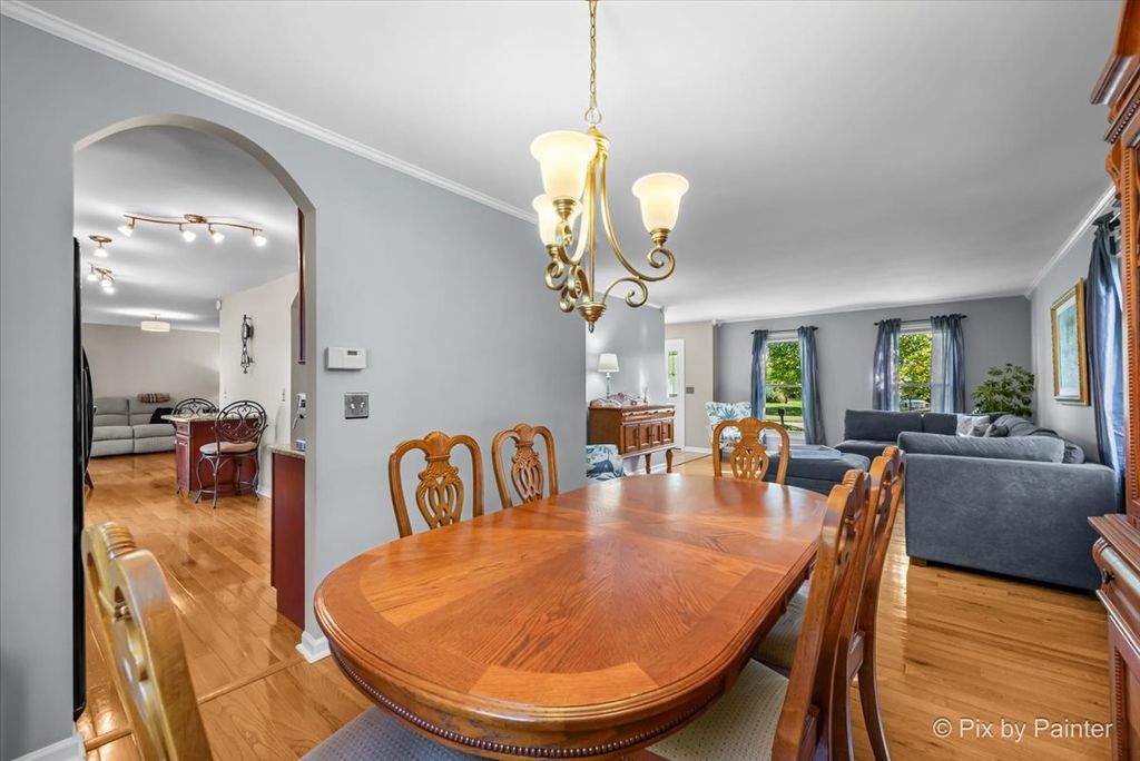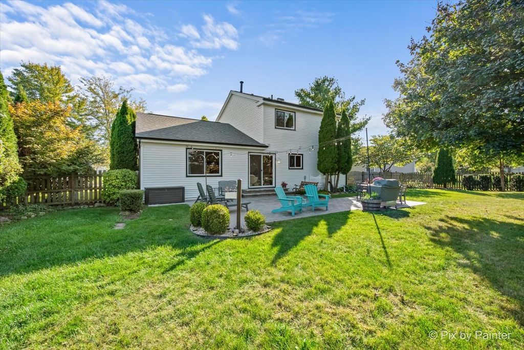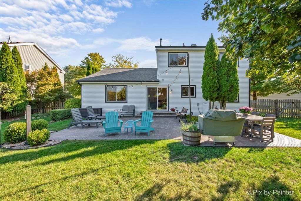 If you are looking for your outdoor living space to be equally as inviting as your indoor space, this one is for you! Outstanding location with premium sized (.34 acre) , beautifully fenced yard with unilock paver patio, and shed! No rear neighbors, backs to outlot! Updates include kitchen cabinets, granite counters, and all baths updated as well! Brand new roof, gutters, downspouts, window wraps, and back fence just completed (2025) ! Gleaming wood floors throughout most of main level! Finished basement an added plus to give you the additional finished square footage space you may need! Enjoy all the nearby amenities which include the splash pad, athletic fields, dog park, paths and multiple parks! Convenient to town, the local eateries, and Metra! This lovely home won't disappoint, check it out today!