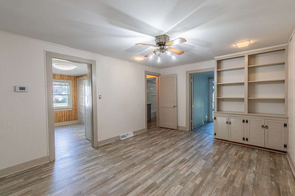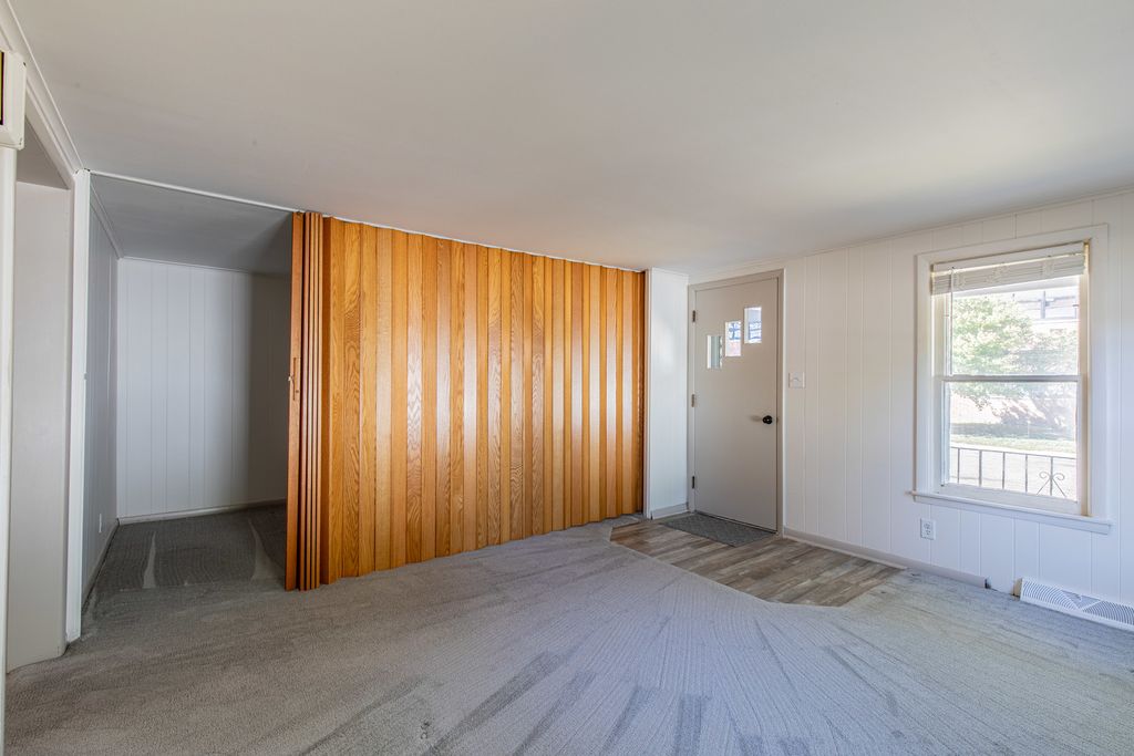 Cute as can be! This home is neat and tidy and ready to go! Check out the new carpet and new plank flooring. The kitchen is nicely updated with new counter tops and cedar paneling. The white cabinets and newer appliances complete the package. Main floor laundry is so convenient! Dining room has built in book shelves. The master bedroom is amazing with beamed ceilings and a wall of closets. At the back of the house, a bonus room could be the 2nd bedroom. In the living room, an accordion wall is tucked away that can be used to create a guest space! So many updates! Within the last three years the seller has replaced the AC, furnace, all the flooring, patio door, back deck, garage door and opener, kitchen counters and cedar wall paneling, oven and frig, toilet, vanity, and replumbed the kitchen and bath. The roof is estimated to be about 10 years old. Basement is dry and provides nice extra storage space. 1 1/2 car garage is insulated. Older shed in back yard has an overhead door and provides a great spot for mowers, bikes, etc. This house is a gem. Call for a showing today!