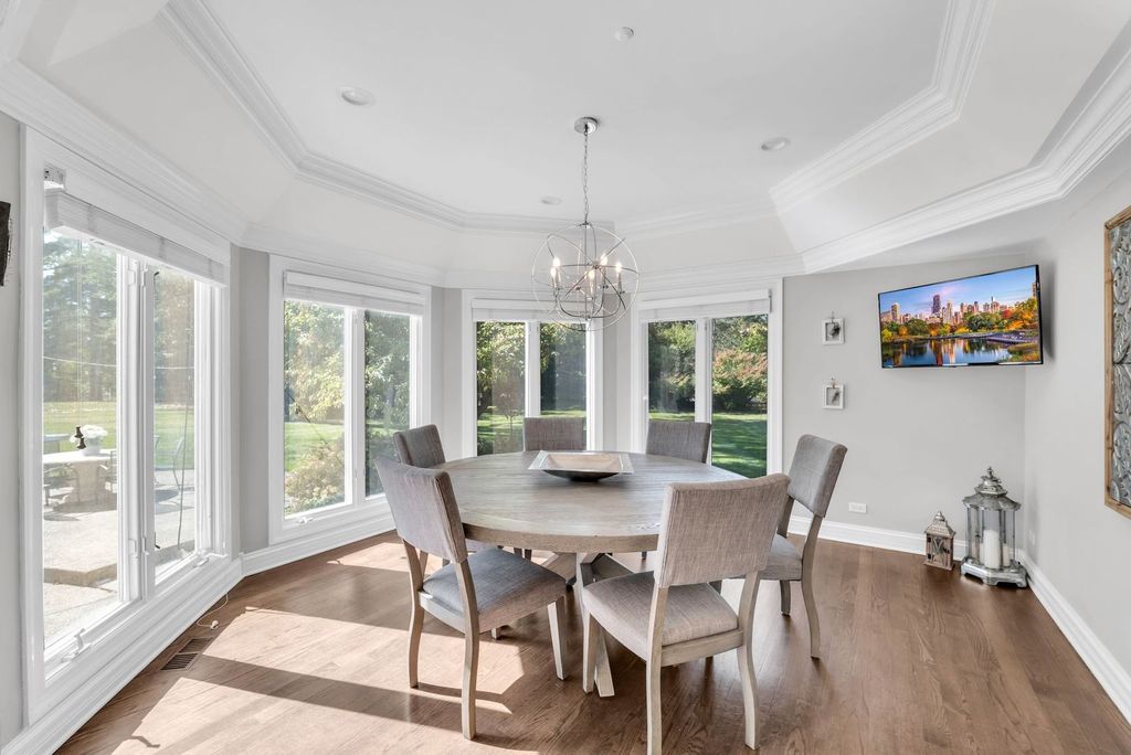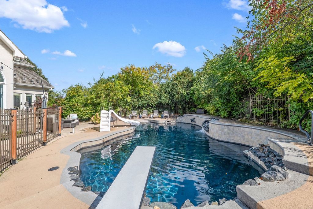 Welcome to 5802 Teal Court, an exquisite custom residence nestled within the prestigious Herons Landing subdivision of Long Grove. Perfectly situated on 1.77 acres of beautifully landscaped grounds, this home offers the ideal blend of luxury, comfort, and functionality. Step inside to discover nearly 4,600 square feet above grade (aprox over 6,800 total finished square feet) of elegant living space designed for both everyday living and grand entertaining. The main level features all-new hardwood flooring, custom paint, and striking modern light fixtures. Soaring ceilings, skylights, and expansive windows fill the home with natural light, creating an open and inviting ambiance throughout. The chef's kitchen is a true showstopper, featuring high-end appliances, abundant cabinetry, and a spacious island perfect for casual dining or entertaining. A formal living room, dining room, and first-floor corner office provide both style and flexibility for today's lifestyle. Upstairs, you'll find four large bedrooms, including three en suite rooms, and a spectacular primary suite offering an expansive walk-in closet and a spa-inspired bath with dual vanities, a freestanding soaking tub, and a steam shower with body sprays. The finished lower level expands your living space with a full bar, exercise room, bedroom, full bath, kids' play area, and a comfortable family room-ideal for gatherings and relaxation. Outside, the resort-style backyard is a true highlight, featuring a 10+ foot deep pool, multiple patio areas, and an outdoor fireplace-all set within a private, tranquil setting perfect for entertaining. Additional features include a 4-car garage and circular driveway. Residents of Herons Landing enjoy the serenity of a premier neighborhood, city water and public sewers, as well as feeding into the award-winning District 96 schools (Country Meadows and Woodlawn) and Adlai E. Stevenson High School (District 125).