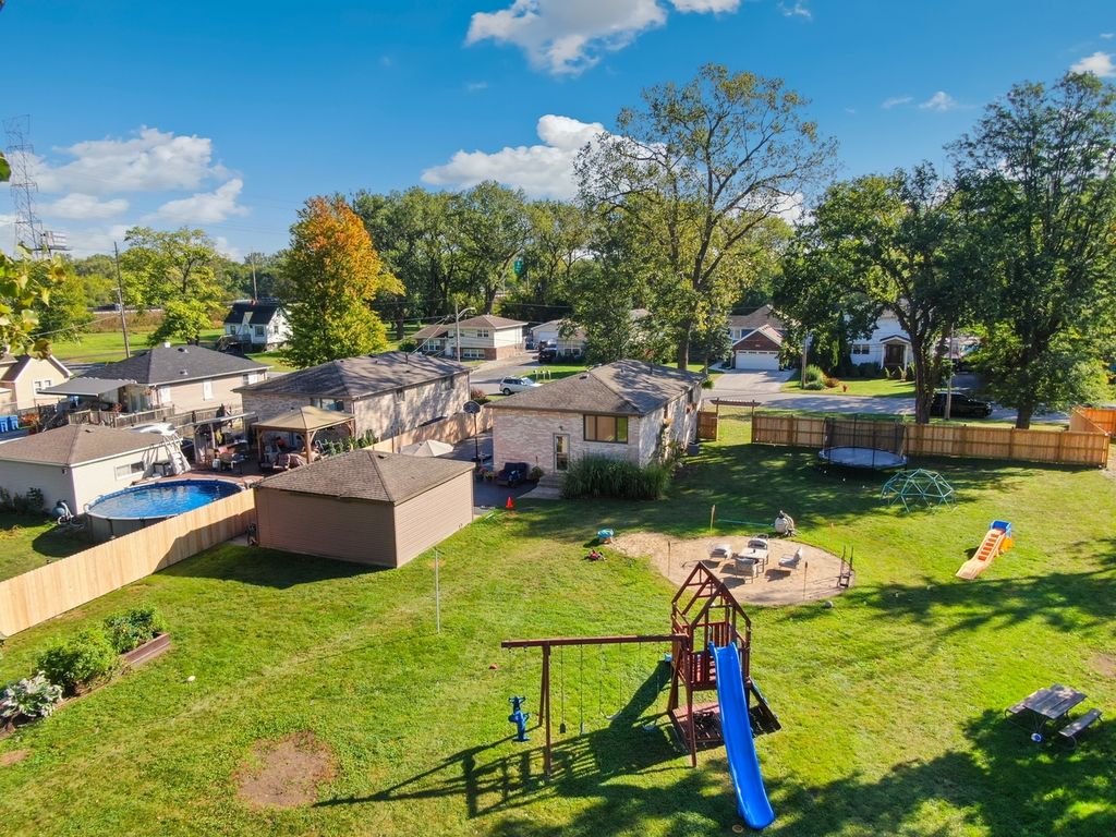 Move right in and start making memories in this beautifully updated raised ranch home nestled on a nearly half-acre lot in the heart of Crestwood. The tree-lined street welcomes you to a large front porch, perfect for your morning coffee. Step inside the entry foyer to an inviting living room filled with natural light from the large picture window and stylish recessed lighting throughout. Prepare meals in the sunny kitchen with a convenient breakfast bar, stainless steel appliances, pantry and spacious dinette area. Unwind at day's end in the generously-sized primary bedroom with double closets. A second bedroom with vaulted ceiling, full hall bath, and a convenient powder room complete the main level. The full finished basement adds even more living space with a large family room, custom stone and granite bar, a third bedroom, another full bath, and a laundry room. Outside, enjoy the expansive yard with mature trees, a detached 2.5 car garage and oversized driveway. Ideally located near schools, shopping, dining, parks, forest preserves, and just minutes from I-294 for easy commuting. Make this charming home yours today!