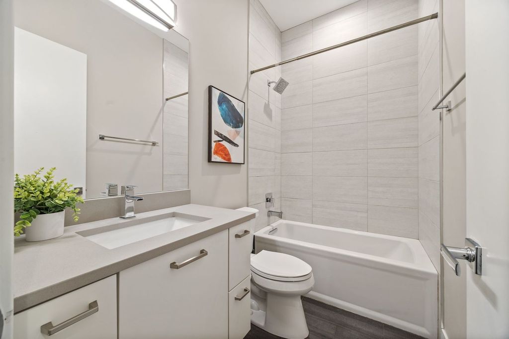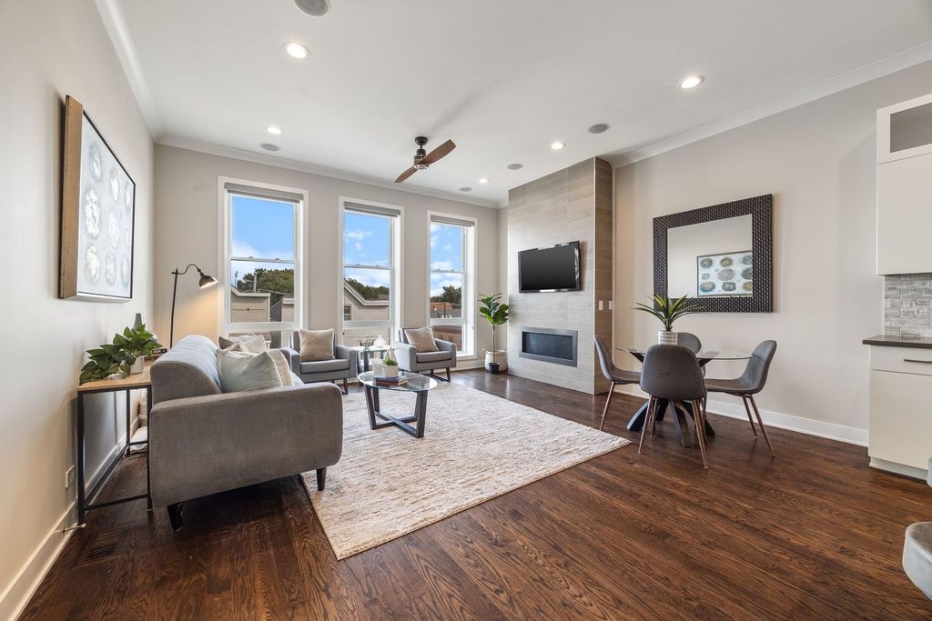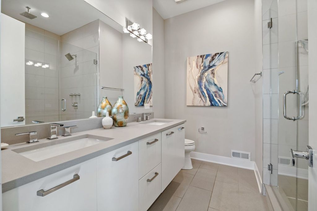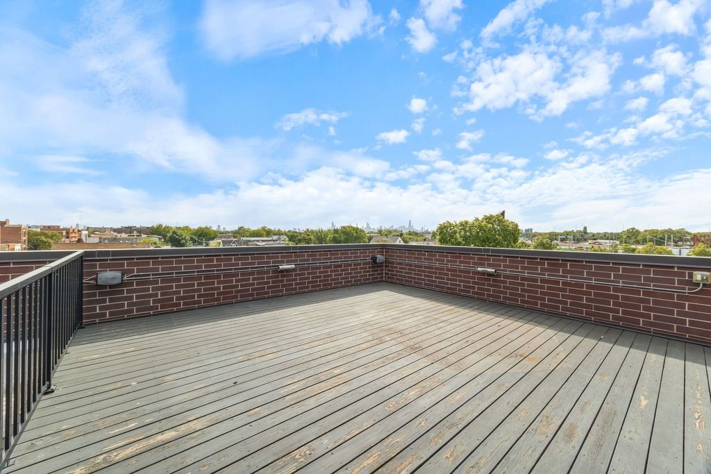 This fresh top-floor 3-bedroom, 2-bath condo is a gorgeous Avondale retreat, crowned by a rooftop deck with postcard-worthy skyline views. Built in 2018, it balances contemporary design with many thoughtful details, creating a space that feels both stylish and livable. Step inside to soaring 10' ceilings and massive windows that drench every corner in light. Hardwood floors run throughout, guiding you to a sleek chef's kitchen with granite countertops, high-end appliances, and an island perfect for cooking and entertaining. The living area is anchored by a glass gas fireplace and is equally suited to cozy evenings or dinner with friends. Down the hall, two guest bedrooms share a full bath, while the secluded primary suite offers three custom closets-including a walk-in-and a spa-inspired bath with heated floors, a double vanity, and a luxurious walk-in shower. Outdoor living shines here: sip coffee on your private balcony, then head upstairs to your oversized rooftop deck, where city views stretch endlessly and will make your friends jealous. Other highlights include built-in speakers, full-size side-by-side laundry, custom window treatments, premium garage parking with additional private basement storage, and smart home touches like a Nest thermostat. With Logandale's dining scene, the CTA Blue Line, 312 River Run, and expressway access all nearby (you do not hear the highway from this condo!), this light-filled home delivers both comfort and convenience in one of Chicago's most exciting neighborhoods.