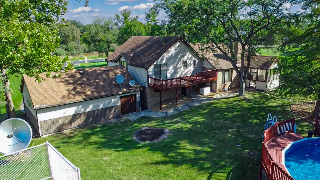 This stunning quad-level home in Crete has it ALL! Remodeled in 2024 and sitting on nearly 2.5 acres, it offers 3 bedrooms, 3 full baths, over 3,600 sq. ft. of luxurious living, and a 3-car detached garage. Vaulted ceilings, a wood-burning fireplace, a bright sunroom, and an eat-in kitchen with stainless steel appliances create the perfect space for family and entertaining. The master suite boasts private balcony access, while outside, the above-ground pool, private tennis court, and expansive wooded lot provide a serene retreat-horses welcome! Rarely does a property like this hit the market, combining privacy, space, and lifestyle in one exceptional package-schedule your private showing before it's gone!