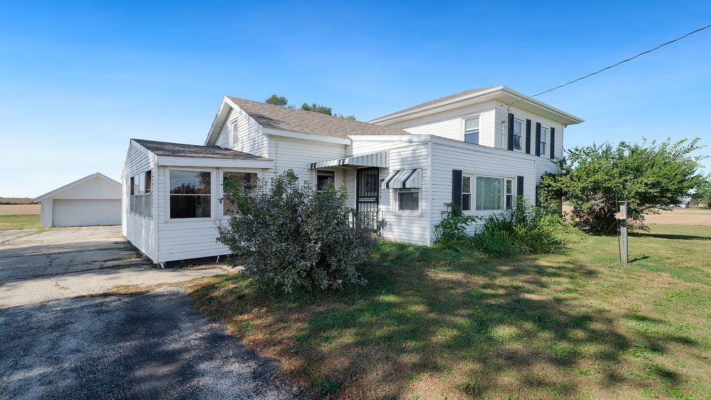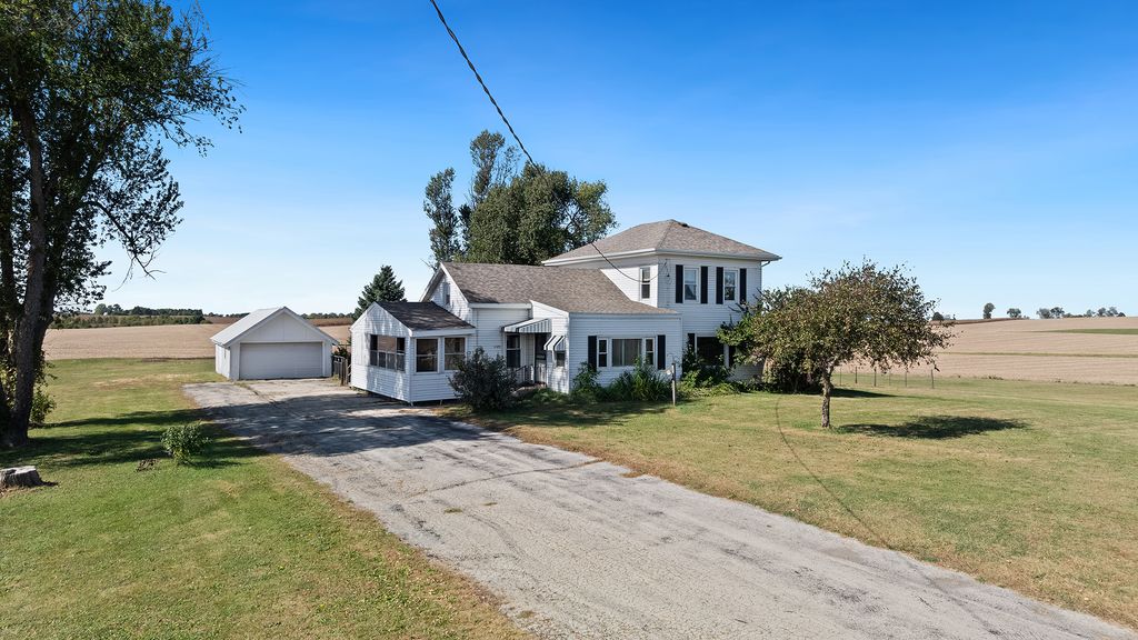 Full of character and country charm, this spacious farmhouse sits on a peaceful 2-acre lot and offers over 1,800 sq ft of comfortable living space. With recent updates and classic features throughout, this home is the perfect blend of old-world charm and modern convenience. Step into the inviting enclosed porch, perfect for enjoying your morning coffee, which leads into a generous mudroom/laundry room-ideal for country living. The updated kitchen boasts white cabinetry, ample storage, wood laminate flooring, and space for a breakfast table. It flows seamlessly into a spacious dining room with hardwood floors that continue throughout most of the main level. The cozy family room features a wall of windows overlooking the front yard and a wood chip stove to keep things warm and welcoming. An additional living room is located off of the dining room and connects to the main-level primary bedroom. A full bath completes the main floor. Upstairs, you'll find two generously sized bedrooms and a large attic space for storage. One of the bedrooms even includes a huge walk-in closet that could double as a sitting room or office space. Outside, enjoy the peace and privacy of your land, a 2.5-car extended garage, and a storage shed. Plus, with newer windows and roof, you can move in with peace of mind. Located in the sought-after Rockton/Hononegah School District, this one-of-a-kind property is perfect for anyone looking to enjoy space, charm, and tranquility-just minutes from town.