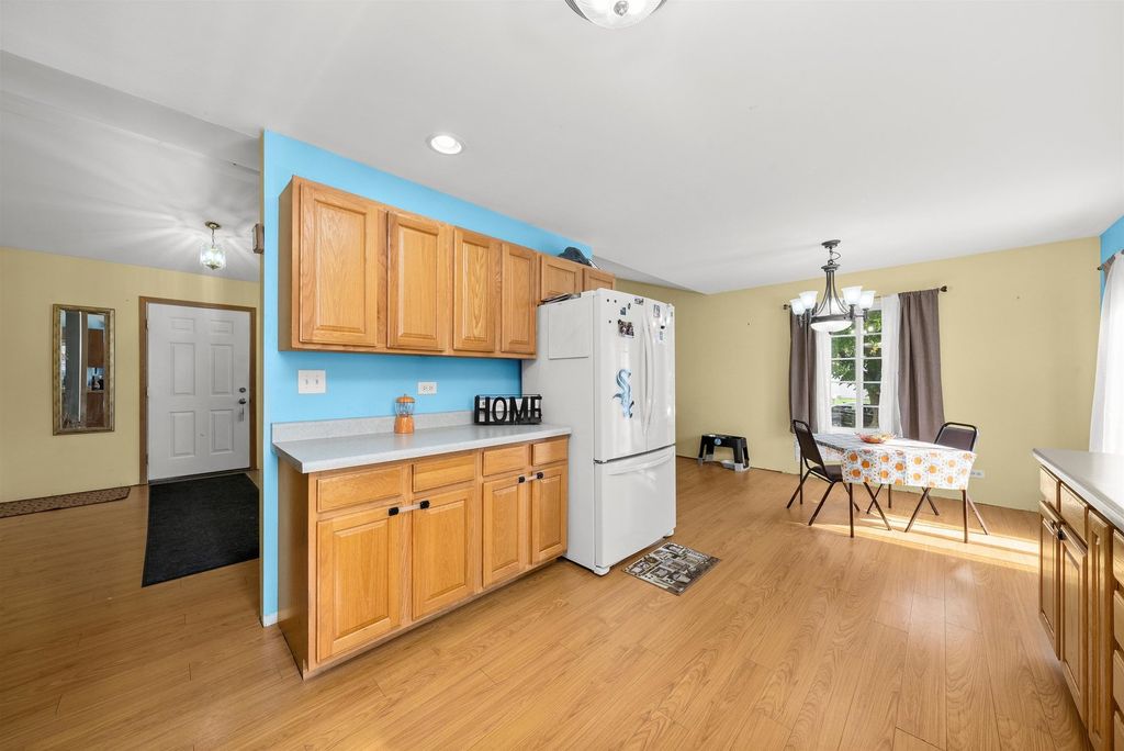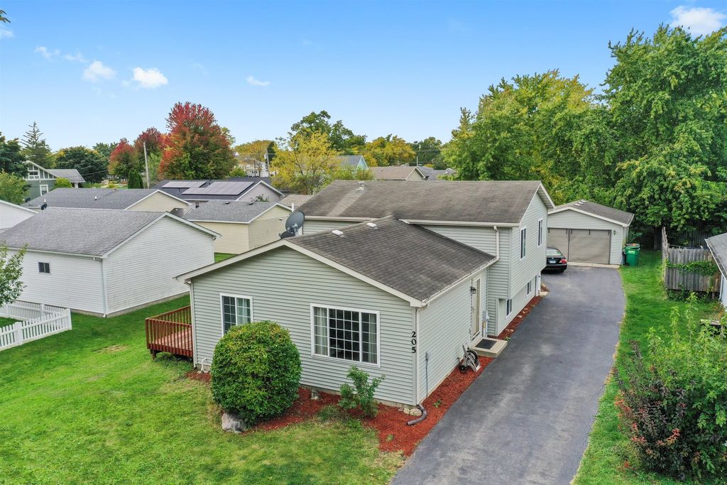 Step inside and discover a home that offers space, natural light, and everyday ease. This 3-bedroom, 2-bath split-level is thoughtfully laid out with over 2,000 sq ft of living space, ideal for relaxing, entertaining, or growing into. The bright living room features a vaulted ceiling that opens up the main floor, leading to a large eat-in kitchen with generous counter space, and all current appliances included. A sliding glass door connects you to the side deck to enjoy sunny mornings and afternoons. The lower level offers a cozy family room, a 3/4 bath, and a spacious laundry room with direct access to a fully-fenced backyard, a private space framed by mature trees. Upstairs, the primary suite includes a walk-in closet, and both additional bedrooms offer plenty of room to personalize. The second-floor bathroom is roomy and includes a large linen closet for extra storage. Outside, you'll find a 2-car detached garage with a nicely maintained yard. The location is a true perk where it's centrally placed in Elwood, just a short walk from the park, general store, and local favorites. Whether you're commuting or staying close to home, this neighborhood has the small-town charm with everyday convenience. Gigabit internet and strong 5G coverage from major providers support remote work, streaming, and smart home features (buyer to verify coverage). This home is clean, comfortable, and ready for its next chapter. Don't miss your chance, schedule your visit today.
