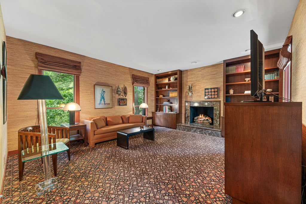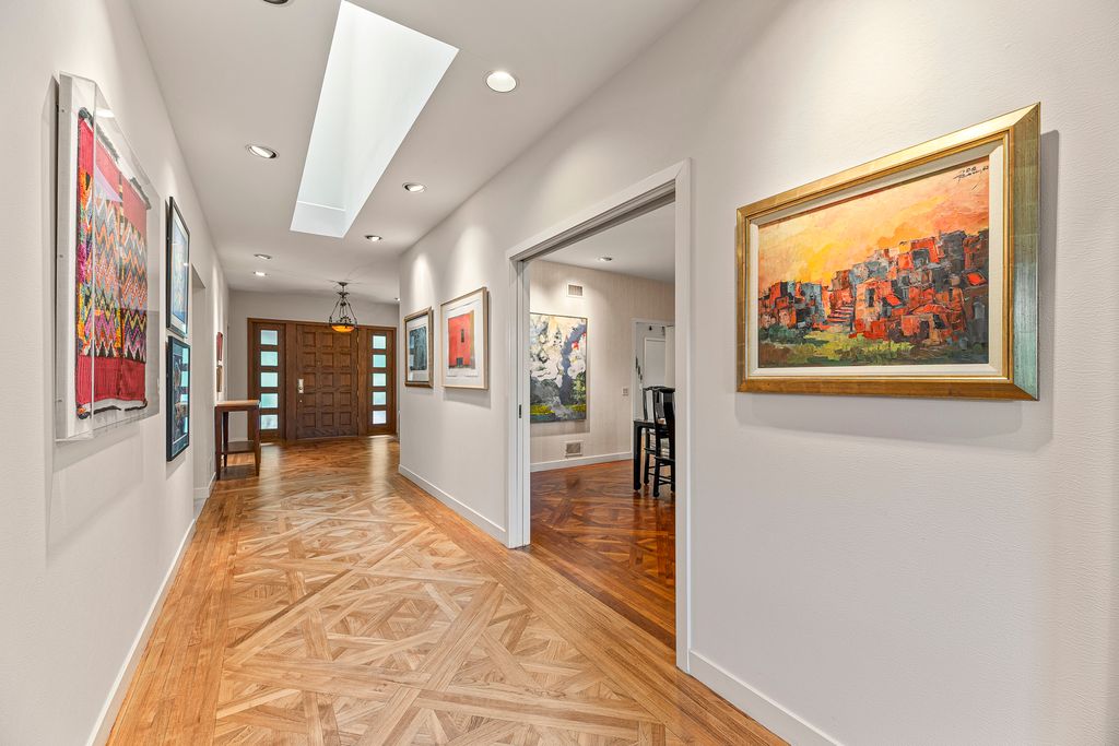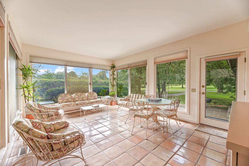Exquisitely crafted for luxurious living and effortless entertaining, this exceptional residence, custom designed by the homeowner and noted local architectural firm W.D. Murphy Associates, backs onto the serene golf course, offering picturesque views from every room and utmost privacy. Encompassing over 4,600 square feet of refined living space, this home lives like a ranch, with the vast majority of rooms situated on the main level. A grand vaulted room with skylights on the second floor creates an inspiring space perfectly suited for a fitness studio or art retreat. The interior radiates natural light through multiple skylights and showcases stunning Teak Parquet hardwood floors. A magical sunroom captures sweeping golf course vistas, while a sophisticated library/bedroom features a marble gas fireplace surrounded by custom cherry bookshelves. The expansive primary suite is an oasis of comfort, boasting separate walk-in closets, built-in cabinetry and luxurious baths. Additional highlights include a cooled wine room, a three-car heated attached garage, and a brand-new roof, making this home an unparalleled offering in both style and functionality.