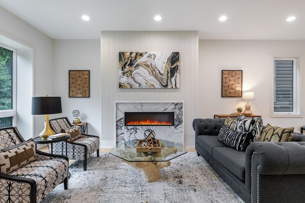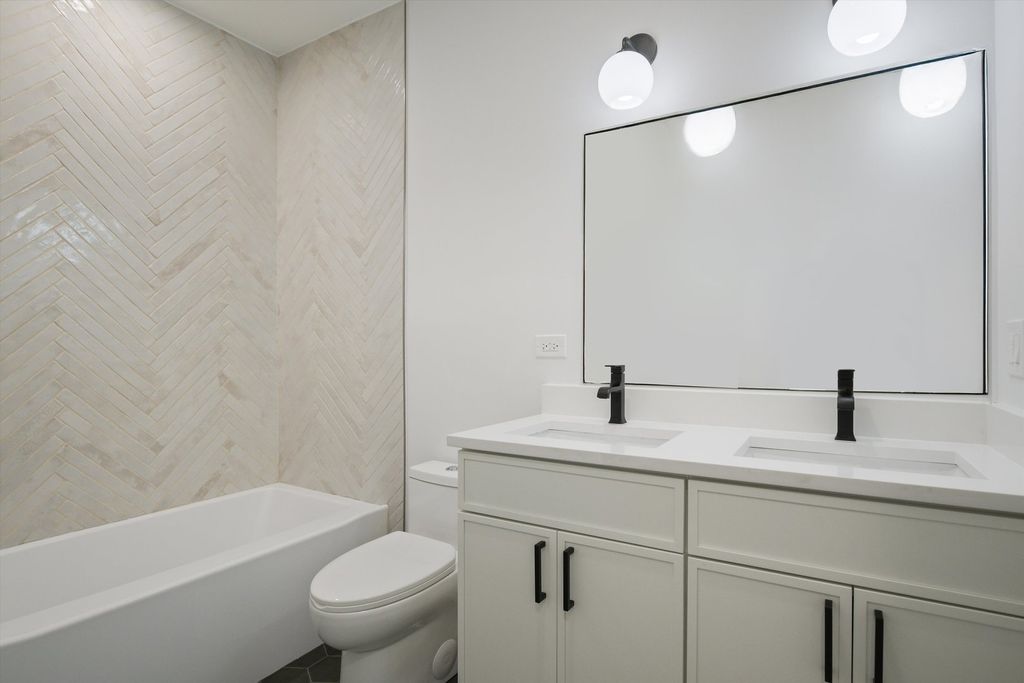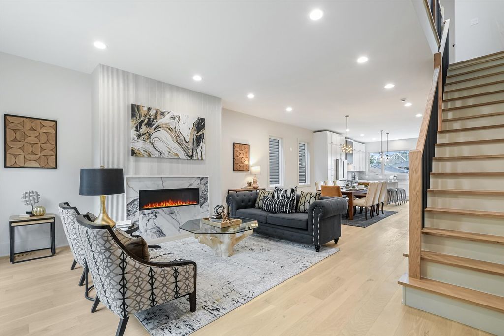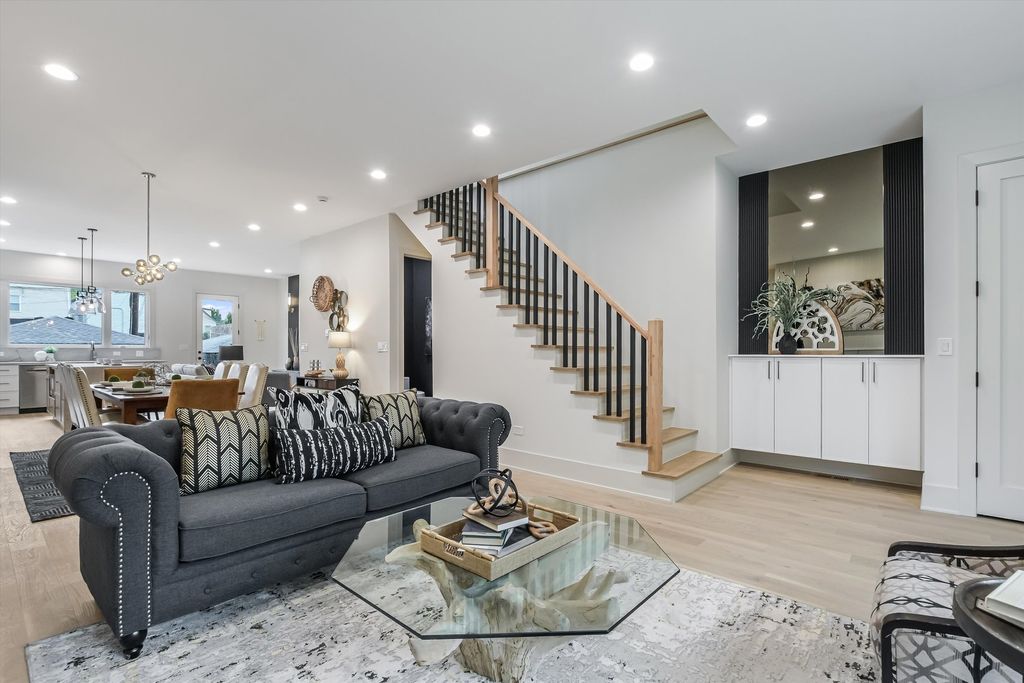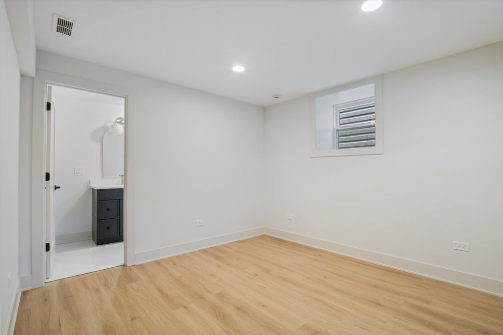 Located less than five blocks From the Logan Square Farmer's Market, this beautifully reimagined home boasts an extra wide interior foot print and designer grade finishes throughout. The Home features an expansive open-concept main level featuring ten foot tall ceilings, white oak hardwood flooring throughout, 8-foot solid core doors, and custom quartzite countertops in the kitchen and powder room. Some of the upgrades in this home include finished custom closets throughout, heated floors in the primary bathroom, a full height natural quartzite backsplash, and multiple custom built in features. Incredible natural light pours through oversized windows and a thoughtfully placed skylight, highlighting the home's exceptional craftsmanship and airy feel. The kitchen, thoughtfully appointed with Bosch appliances, custom cabinetry, and a large island perfect for entertaining. Upstairs, you'll find three spacious bedrooms and two luxurious bathrooms, including a stunning primary suite with vaulted ceilings, a spa-inspired bathroom featuring a freestanding soaking tub, double vanity, and a walk-in shower. The fully finished basement expands your living space with a large family room + Bar, additional bedroom, and full bathroom-ideal for guests or a home office setup. Dual-zone HVAC ensures year-round comfort throughout all three levels. Enjoy outdoor living with an oversized rear deck, green yard space, and a two-car garage for added convenience. Located under a mile from the Logan Square Farmers Market, you're steps away from some of the best dining, shopping, and community vibes the neighborhood has to offer. Crafted by an experienced local developer, this is not your typical new construction-every detail has been carefully curated to create a truly special home.