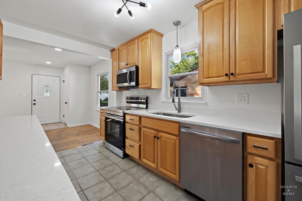Beautifully refreshed 3-bedroom, 1-bath ranch offering modern style and comfort throughout. This home features hardwood floors and a bright, updated kitchen with new cabinetry and stainless steel appliances. The bathroom has been tastefully renovated, and the entire home has been freshly painted with new fixtures and finishes. The finished lower level adds a comfortable rec space, perfect for relaxing or entertaining. Step outside to enjoy the fenced yard with a deck and charming gazebo-ideal for outdoor gatherings. A detached 1-car garage provides extra convenience. With thoughtful updates and inviting spaces, this home is move-in ready and full of character.