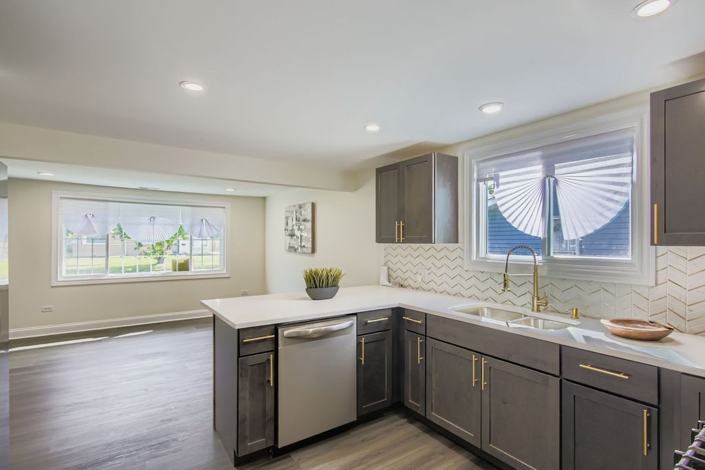 Beautifully rehabbed 3-bedroom, 2-bath ranch featuring flawless craftsmanship throughout! This charming home offers an open and inviting layout with a modern kitchen showcasing stainless steel appliances, sleek finishes, and stone counter space. Convenient main-floor laundry with washer and dryer included. Both bathrooms are tastefully updated with contemporary details. The property also boasts a spacious 2.5-car garage and large driveway, providing ample parking and storage. A true move-in ready home with quality upgrades from top to bottom!