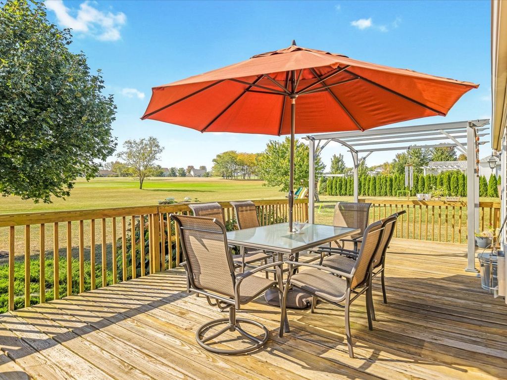 Great room ranch on the Westlake Golf Course! Enjoy the views down the fairway from the kitchen, great room, primary, or the generous deck. Large dine-in kitchen with full appliances. Main floor laundry. Primary bedroom with private ensuite including double vanity. Unique custom finishes including wood beamed ceiling, fireplace surround with overmantel, patio door shutters, & Heirloom Seven Sisters rose bushes. Wide open basement ready to finish as you like. Lifetime waterproofing guarantee by Goebel Waterproofing. Enjoy the Westlake amenities including the 82 acre lake, beach with volleyball, swimming pool, tennis/pickleball courts, basketball court, 3 mile paved walking path, Community Center, playground, nature area, as well as the 18-hole Lynx Golf Course. Many community events to enjoy. Home warranty included. Welcome to YOUR NEW HOME!