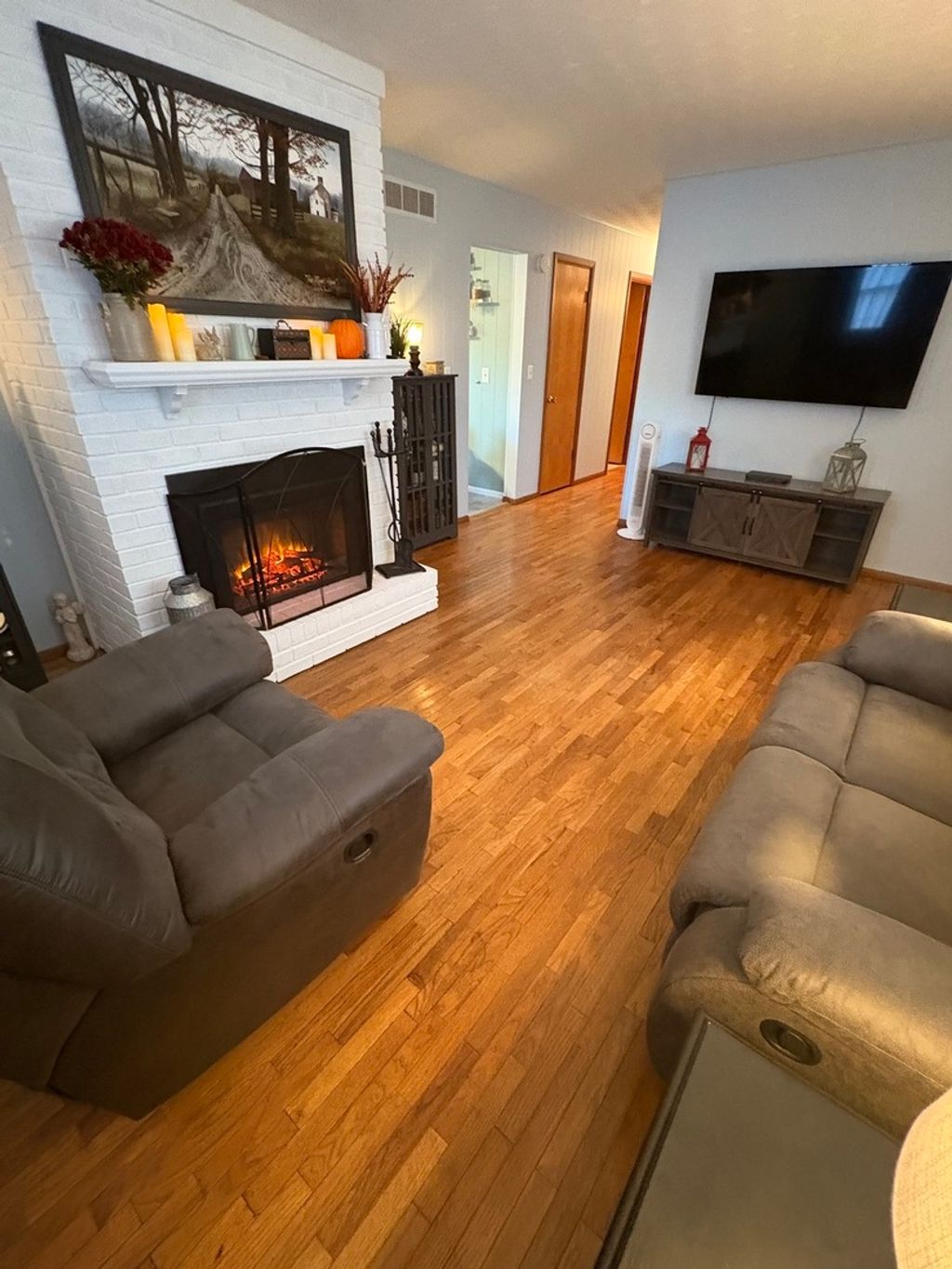 Welcome to this IMMACULATE charming cozy 3 bedroom 1 bath COTTAGE. This home is close to ISU, Fairview Park and uptown Normal. Don't let the small view from the front deceive you, this home has a very large backyard with a 2 car detached garage, shed and a dedicated concrete area to turn your car around or extra parking. Enjoy the 14x14 trex decking and vinyl railing, on the extra sunny days pull down the New 2025 awning for shade! When you are outside please enjoy all of the BEAUTIFUL NEW 2025 landscaping and front window boxes/planters. NEW 2024 electrical added to the garage along with a chambers whisper drive garage door opener with a new electrical box. If that's not enough sellers added a 1500 btu a/c unit for comfort along with a 10x12 shed sitting on a treated platform. GUTTER HELMETS added 2024 to house, exterior motion lighting also added to house and garage in 2024 for great visibility in the evening. WHOLE HOUSE duct cleaning 2025, fireplace changed from gas to electric by Nordine remodeling 2024 which provides a fan, flames, and a remote, not to mention the beautiful white washed brick, time to settle in for the fall. Sellers moved the washer and dryer upstairs into a bedroom for comfort, if you desire the hook ups are still in place in the basement. I HAVE SAVED the best for last!! The sellers uncovered 4 rooms and the hallway to find the beautiful, original small plank HARDWOOD FLOORS. MULTIPLE ROOMS have fresh light paint colors for a soft color palette. NEW FENCE is negotiable, 6 ft 10x6 removable panels, willing to talk this over in an offer. Water heater 2022, roof aprox 12 years old hvac 2019 and radon mitigation.