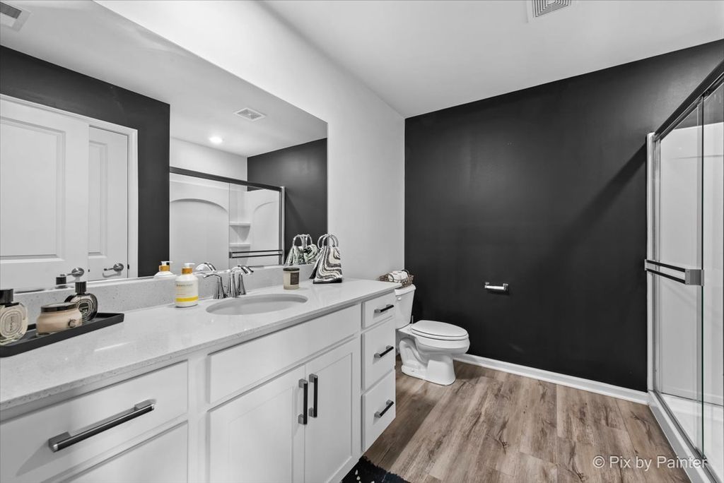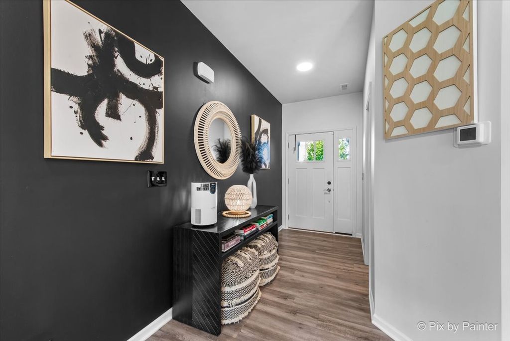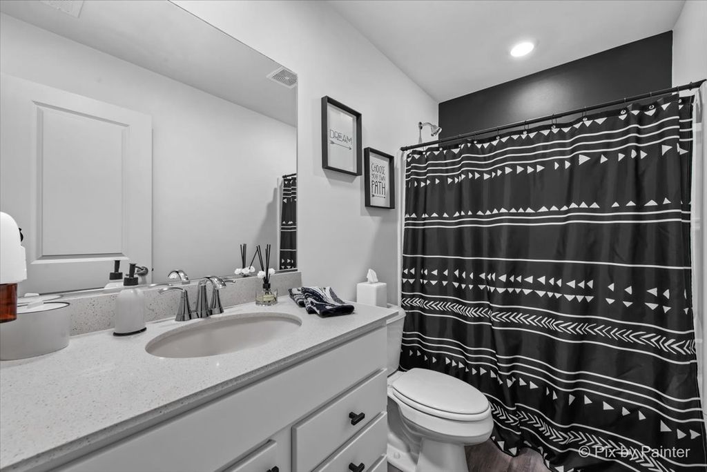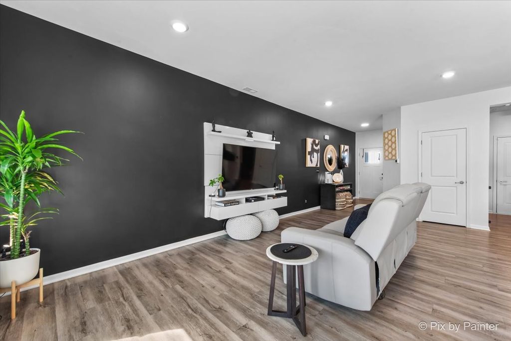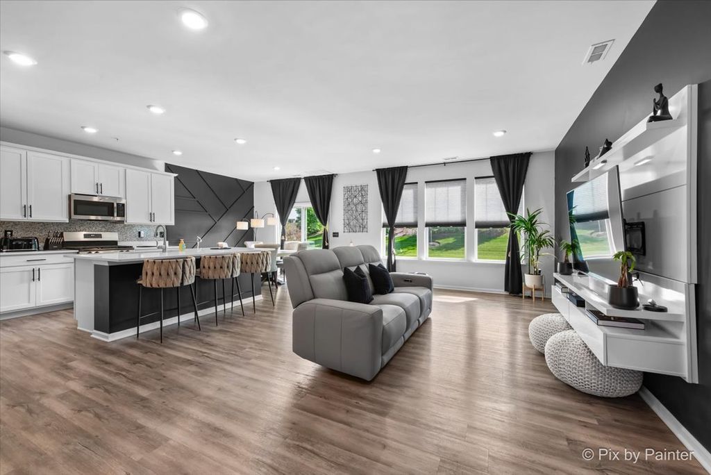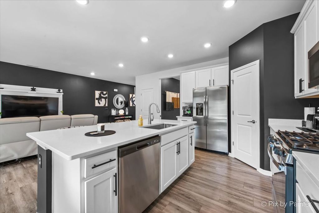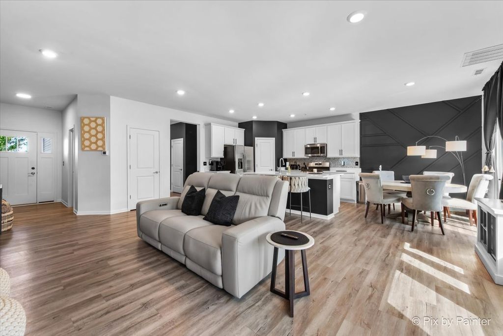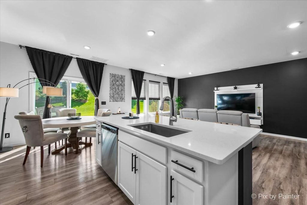 Welcome to this stunning newer home in the sought-after Park Pointe subdivision, offering the perfect blend of style, comfort, and convenience. Ideally located near expressways, the Fox River, shopping, and a variety of dining options, this home provides easy access to everything you need. Step inside to a bright and open floor plan where the eat-in kitchen takes center stage, showcasing 42" white cabinets with elegant crown molding, gleaming quartz countertops, a walk-in pantry, undermount sink, and stainless steel appliances. The kitchen flows effortlessly into the spacious family room, creating a seamless space for entertaining or relaxing at home. A designer-inspired dining area with an accent wall and sliding glass doors opens to the backyard, perfect for indoor-outdoor living. Beautiful vinyl plank flooring extends throughout the main level, bathrooms, and the conveniently located second-floor laundry room. Upstairs, the inviting primary suite offers a private bath with a walk-in shower and linen closet, while the oversized second bedroom provides incredible flexibility for guests, an office, or hobbies. Thoughtfully designed and tastefully decorated, the home features a custom-built TV wall stand and integrated Smart Home Automation technology for modern comfort, including remote thermostat control, keyless entry, and a video doorbell. Move-in ready and impeccably maintained, this home combines modern living with a convenient location.