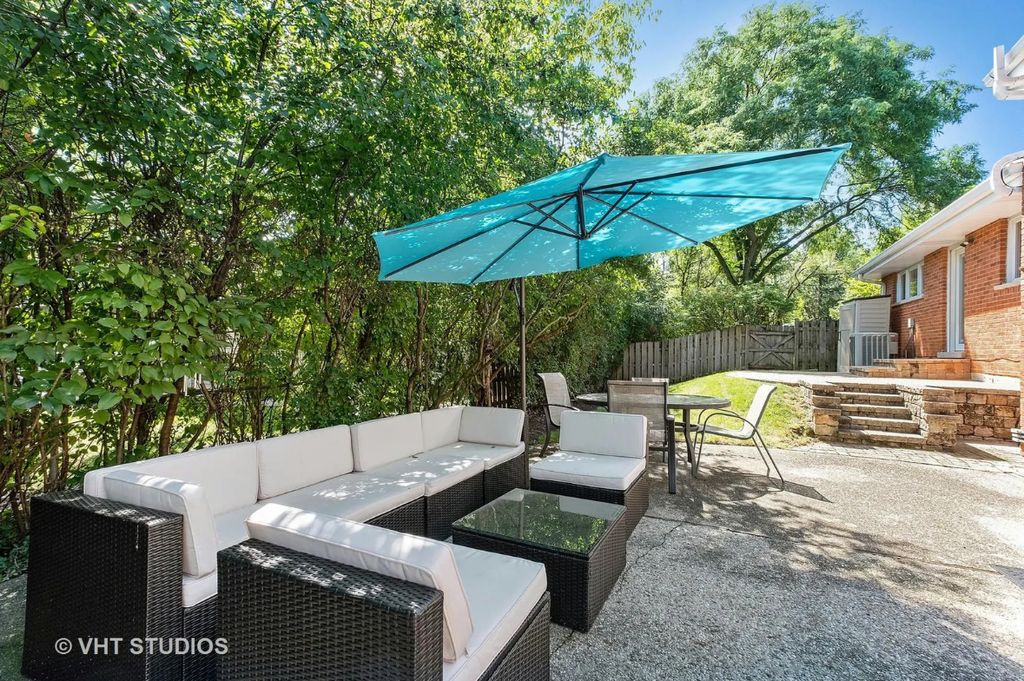 Fall in love with this bright, spacious and freshly painted 4 bedroom + office, 2.5 bath home. A two story foyer welcomes you and leads into a cozy private office with fireplace. Walk up a few steps into a large open family room and dining room with tons of natural light. The sunny white kitchen with skylight and double ovens is ready for hosting holidays. Upstairs you will find a generous primary bedroom suite with newly remodeled stylish bath. Three addiitional bedrooms on the second level share another fully remodeled bath. Lower level rec room offers an abundance of storage space with newer vinyl tile flooring making it perfect for the whole family to enjoy. Step outside to your own private oasis with a gorgeous in ground pool with diving board and water slide for summer fun. Two car attached garage is super convienent as well as the half bathroom that leads directly to outdoor patio for pool parties. Many recent updates including NEW ROOF and gutters (2023), new water heater (2023), new HVAC (2021) and new fencing (2021). Full list of improvements available. Walking distance to Devonshire Park, schools, and Downtown Highland Park! Wonderful neighborhood offers easy access to train or highway and choice of Highland Park or Deerfield High Schools.
