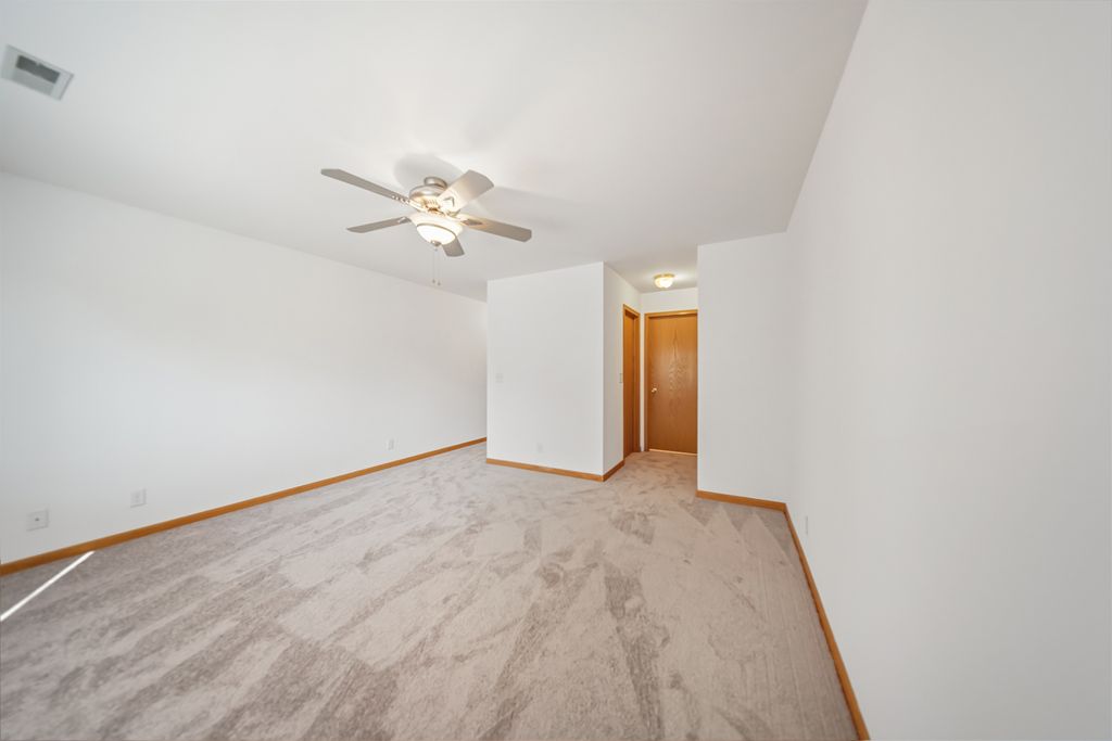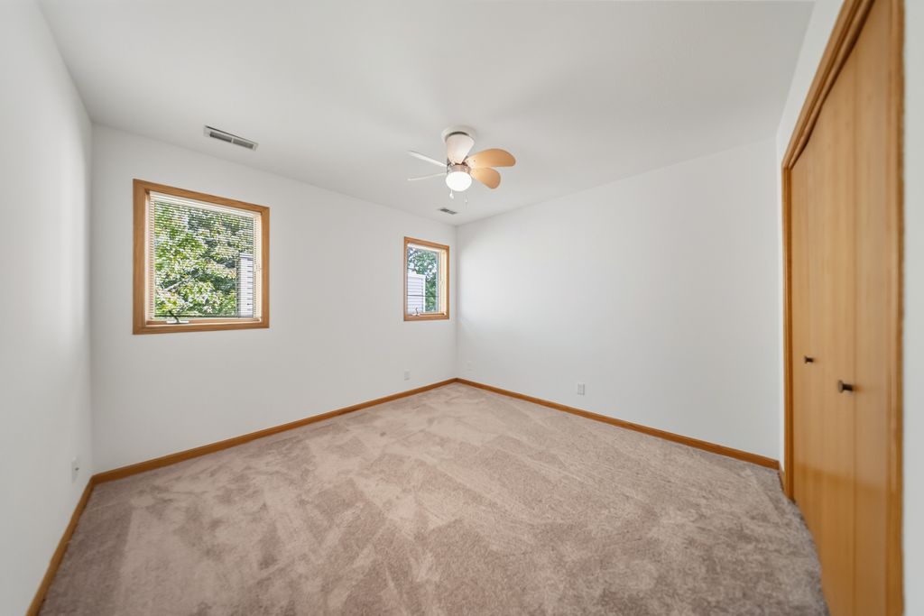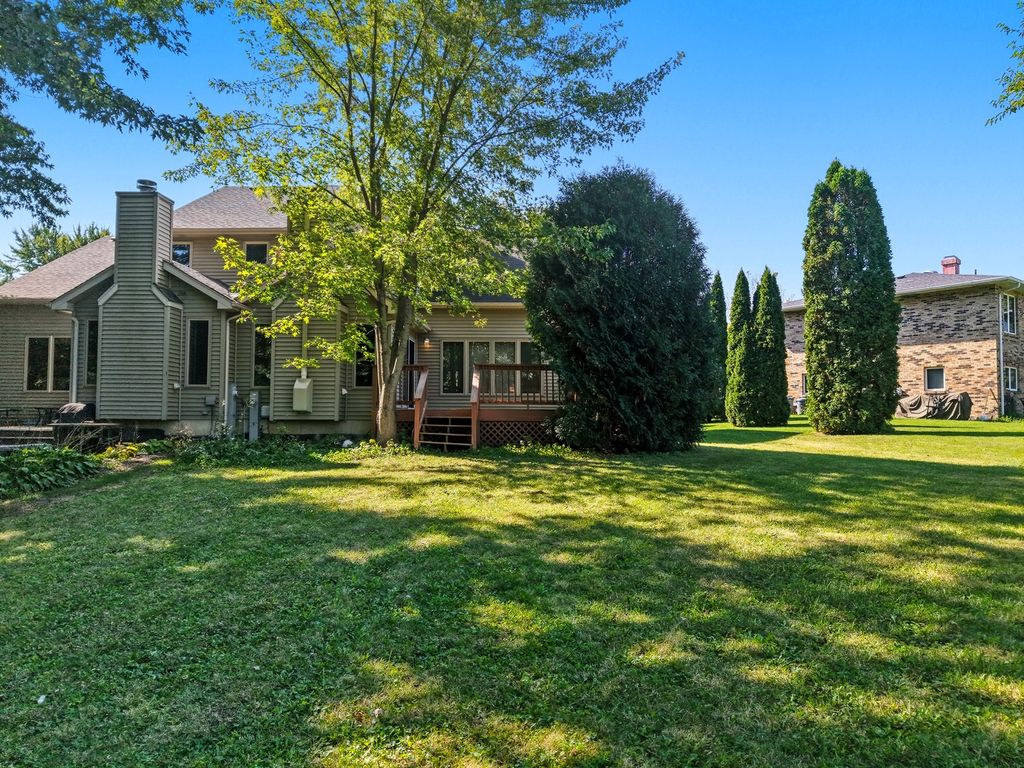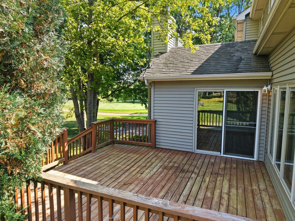 Just listed on the north side of DeKalb, this spacious 3BR, 2.5 Townhome is located on a private cul de sac on the Buena Vista Golf Course. Enjoy peaceful nights on the large deck while enjoying the mature, golf course landscaping and serenity of Mother Nature. Recent updates make this home ready for immediate occupancy. The main floor features hardwood floors in the eat in kitchen with hearth area with gas fireplace, and breakfast bar, living room, laundry room, powder room, and vaulted ceiling. 2nd level features 3 bedrooms and 2 baths. Primary suite. Harwood trim throughout. Finished basement with Great room, bar and storage room. 2 car garage. NO HOA!