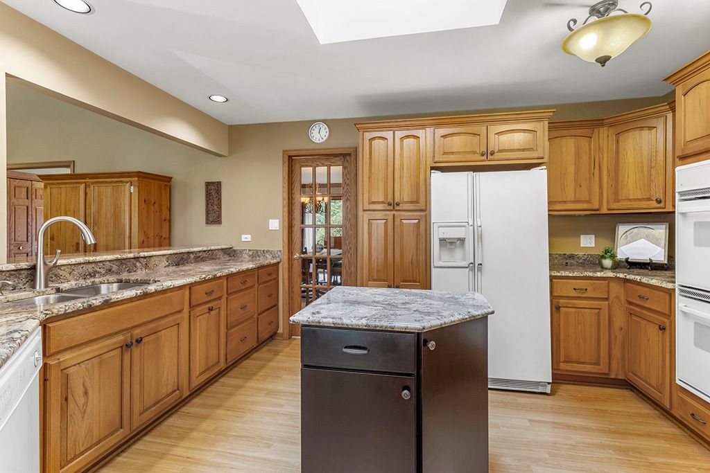 Rarely available, all BRICK, CUSTOM RANCH home situated in highly sought after Old Oak Estates of Homer Glen. This home boasts a beautiful brick exterior in neutral/grey hues and a highly functional floor plan perfect for entertaining. Spacious foyer offers sight lines straight to the backyard. Formal living room is a cozy space with bi-fold French doors and soaring ceilings accented by wood beams. The stylish dining room is ideal for hosting gatherings, features stunning crown molding details and a corner dry bar for extra storage. Spectacular family room/great room offers elevated ceilings, a beautiful fireplace with a marble surround, and a custom wet bar. GORGEOUS kitchen provides plenty of cabinetry, granite countertops, breakfast bar seating, a center island, an overhead skylight for natural sunlight, and a lovely eat-in/breakfast room. MAIN LEVEL MASTER bedroom is a perfect retreat with tray ceilings, a double closet, and a private bathroom featuring a dual vanity, whirlpool tub, and separate shower. Two additional bedrooms on the second level both have ample closet space and share a full bathroom. For added convenience, there is main-level laundry and a powder bathroom. MASSIVE finished lower level offers endless entertainment opportunities with a family area, wet bar, half bathroom, recreation space, potential fourth bedroom, office space, workshop, storage, and more. Incredible grounds feature an extended deck and a fenced yard. This home is in a great Homer Glen location within the 33C school district, close to Bengston's Farm and Konows Corn Maze, Old Oak Golf Course, the library, shopping, dining, and more. Dryer (2025) and Washer (2022) AC & Furnace (2020)