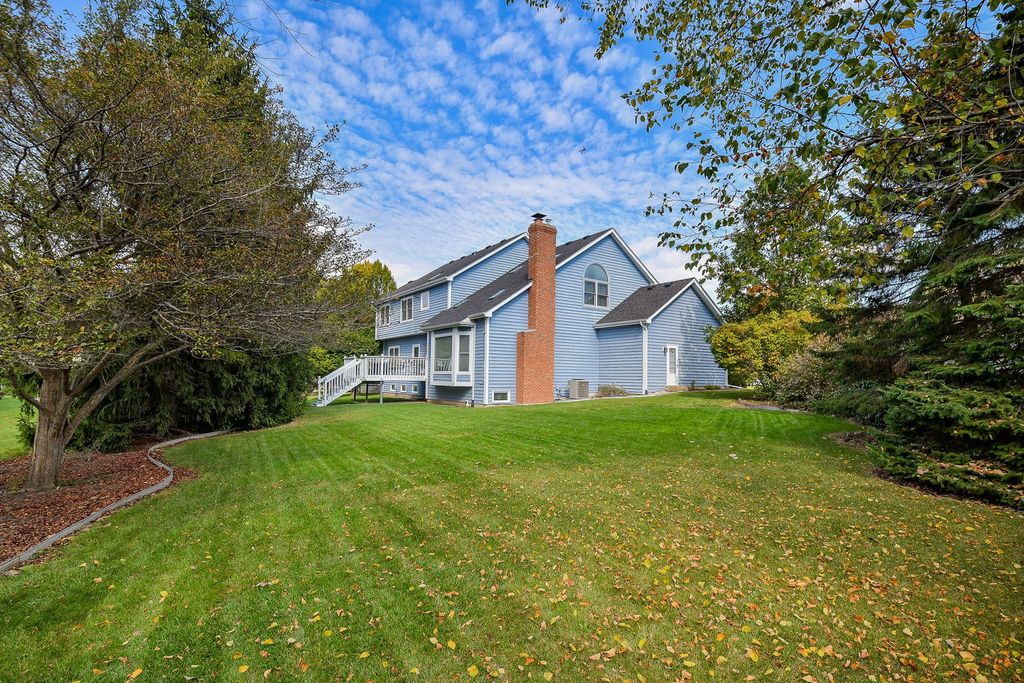 Welcome to this picture-perfect home in Geneva! A stunning expansive kitchen anchors the main level, featuring an island with seating, stainless steel appliances, abundant cabinetry, and a sunny eating area overlooking the beautifully landscaped backyard. The impressive two-story family room showcases skylights, a brick-surround fireplace, and a wet bar-ideal for entertaining. A grand two-story foyer with a curved staircase sets the tone upon entry. The executive office is thoughtfully designed with French doors, wainscoting, crown molding, and custom built-in shelving with bench seating. Formal living and dining rooms offer hardwood flooring and classic chair rail detailing. Retreat to the expansive primary suite featuring a sitting area, vaulted ceiling with skylights, and dual walk-in closets. The spa-like primary bath includes dual sinks, a skylight, separate shower, jetted tub, and generous storage. The second level also offers three additional spacious bedrooms and a hall bath with double sinks. The finished basement provides additional living space and a convenient half bath-perfect for recreation or relaxation. Step outside to enjoy a large deck, surrounded by mature trees and lush landscaping-your own private outdoor retreat. Ideally located near Randall Road, this home offers easy access to shopping, dining, and entertainment while providing comfort, space, and timeless style.