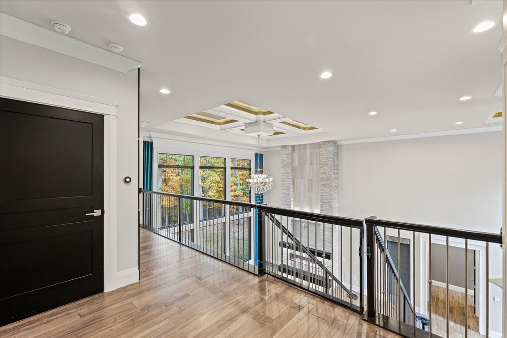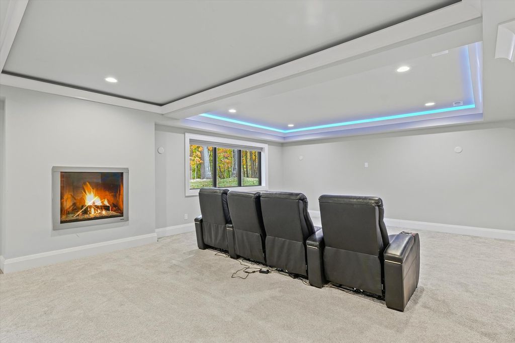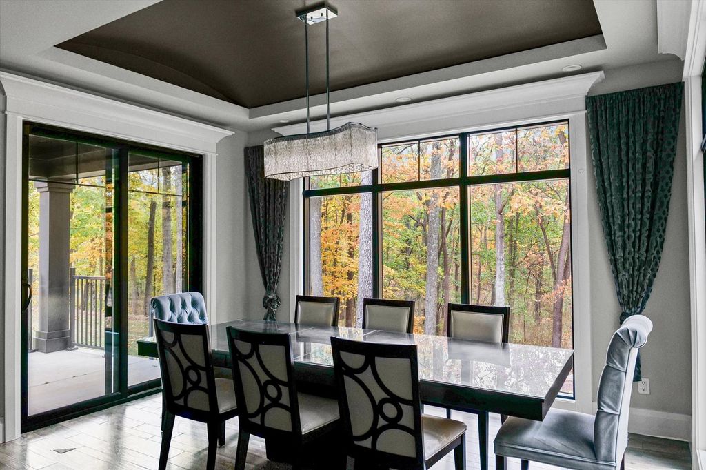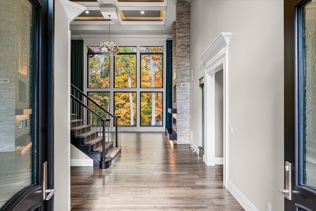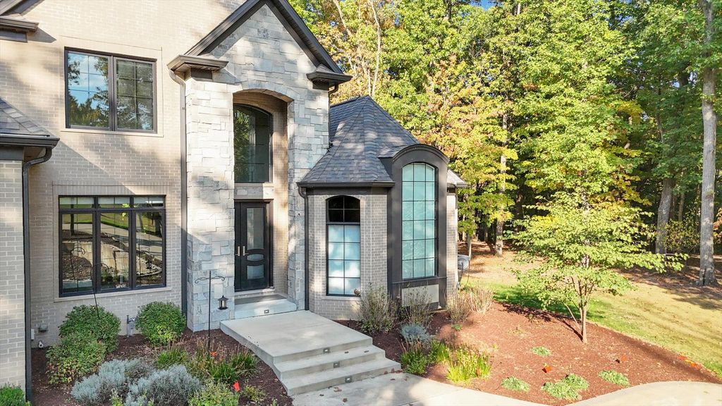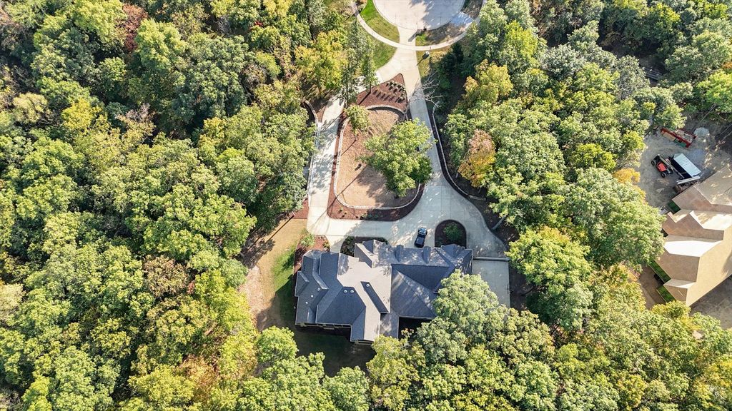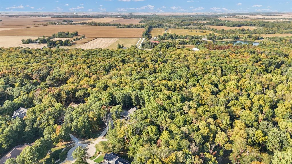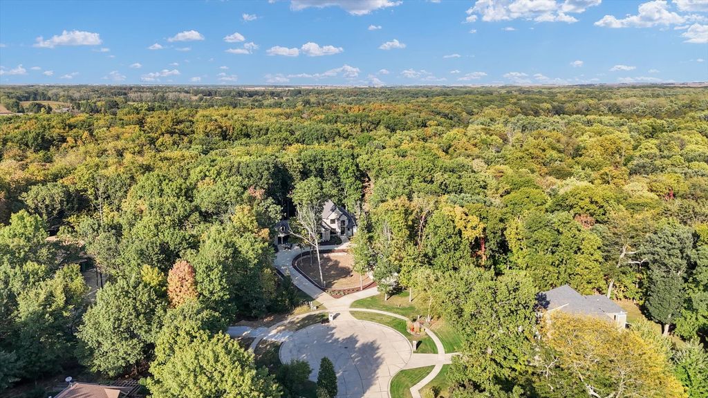 Located in the highly sought-after Thornewood Subdivision, one of Mahomet's most coveted communities, this stunning 2-acre estate sits quietly at the back cul-de-sac in The Reserve of Thornewood. Custom built by Premier Homes, the one-of-a-kind residence offers 6 bedrooms, 5.5 baths, and over 5,800 sq ft of luxurious living space. An additional 22 acres are available, providing exclusive Sangamon River access and interactive trails weaving throughout the woods for hiking, biking, and nature exploring. The impressive entry opens to a two-story great room with custom ceilings, a dramatic fireplace, and a wall of windows framing serene views of the wooded backyard. The gourmet kitchen is a showpiece with high-end stainless appliances, quartz countertops, a hidden butler's pantry, and a dining area wrapped in windows overlooking the infinity-edge backyard and forest preserve. The first-floor primary suite is a private retreat with a fireplace, arched ceiling, and three custom walk-in closets; the spa-inspired bath features marble floors, a soaking tub, dual vanities, and a walk-in shower with body jets. Upstairs, three spacious bedroom suites each include a private full bath and walk-in closet. The walkout lower level adds two bedrooms, a full bath, fireplace, built-in saltwater aquarium, gym, theater area, and open recreation space. Exterior highlights include two covered porches, a four-car garage, basketball half court, and circle drive, all set amid professional landscaping and mature trees for exceptional privacy. A rare opportunity to own a truly custom luxury home in an exceptional location-just minutes from schools, parks, and downtown Mahomet.