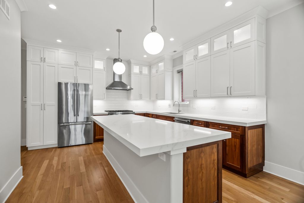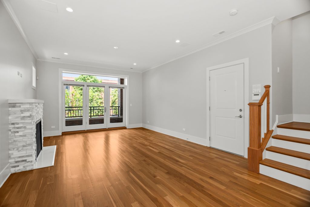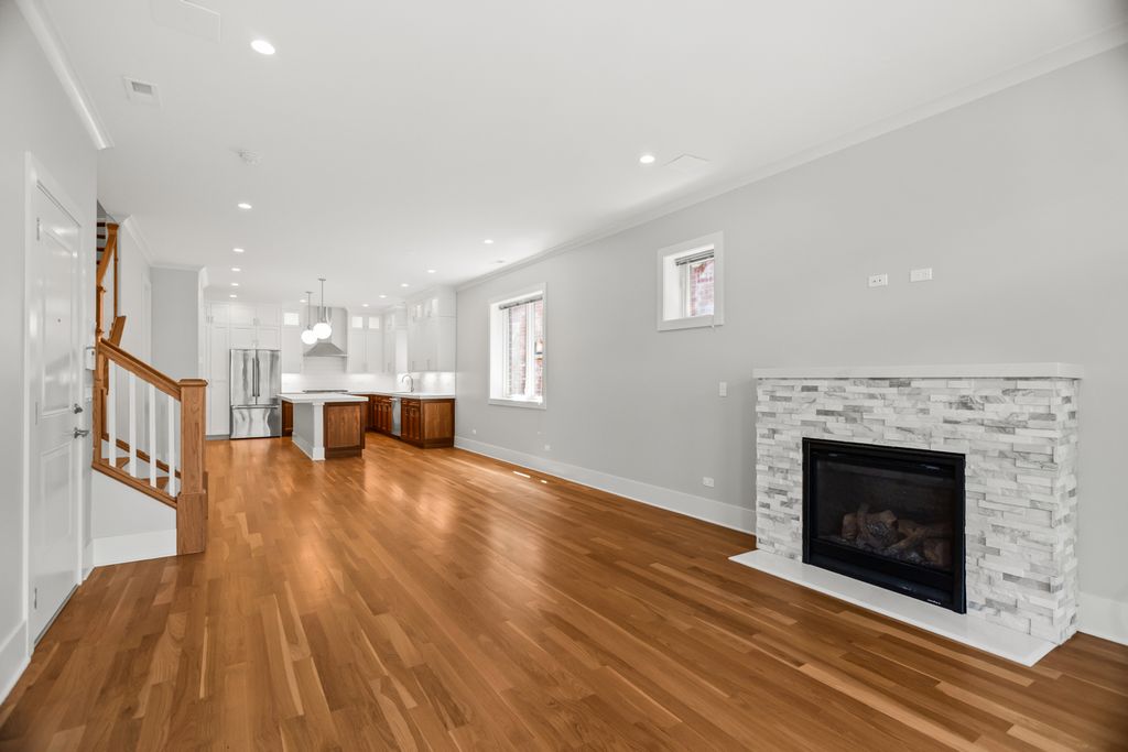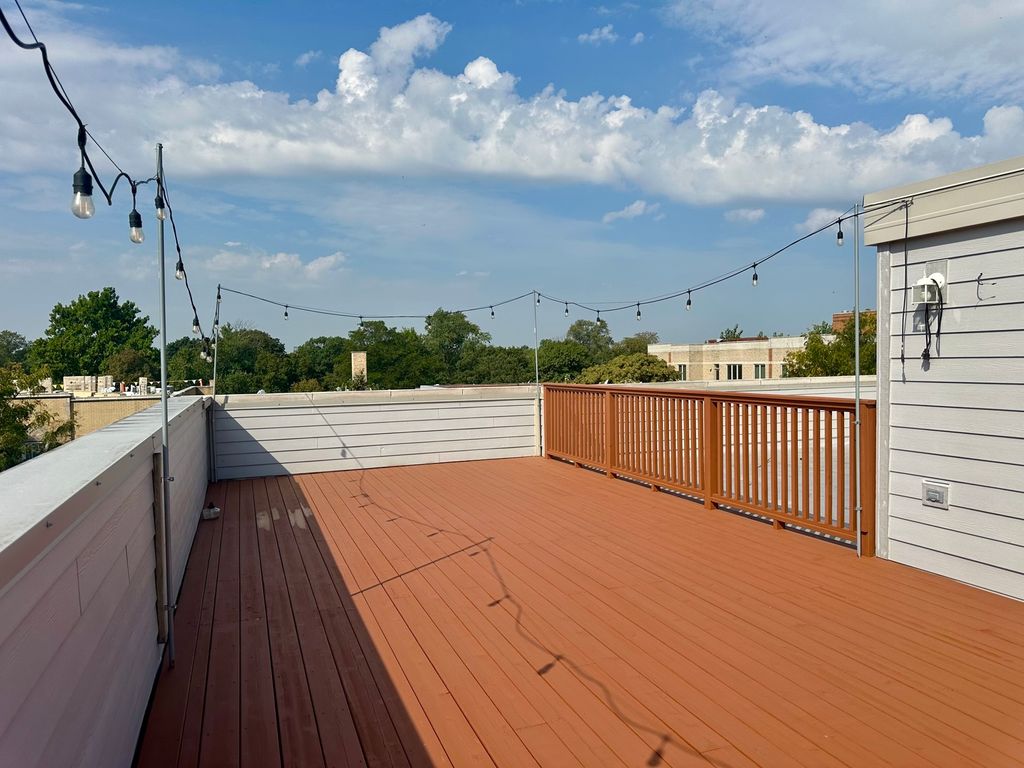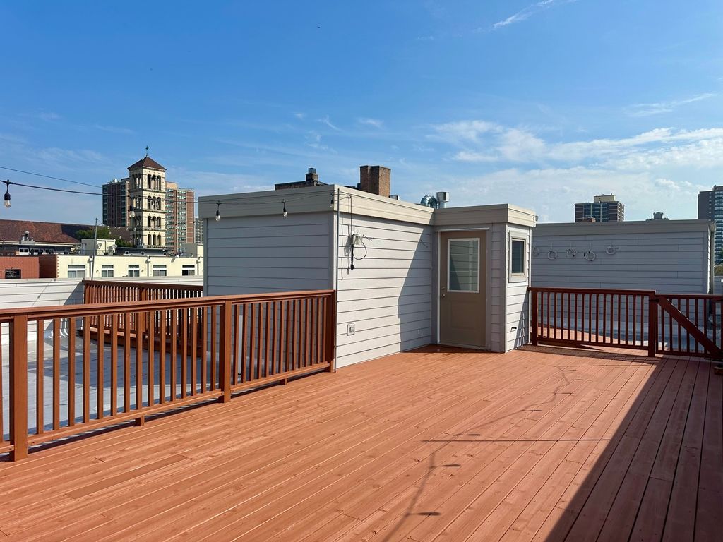 Top-floor duplex-up with private internal stair access to an expansive private rooftop deck showcasing panoramic downtown skyline views. This 3-bedroom, 2.5-bath residence combines modern design with high-end finishes throughout. The main level features an open-concept living area with a direct-vent gas fireplace, 10' ceilings, and a sleek kitchen equipped with Thermador and Bosch appliances, quartz counters, wine chiller, and custom two-tone cabinetry. Upstairs, all bedrooms are on the same level, including a spacious primary suite with a walk-in closet and double-sink bath. Enjoy quiet, east-side-of-Kenmore living with abundant natural light and no units above. Includes garage parking, Navien tankless water heater, American Standard HVAC, RenewAire ERV, and Cat-5/coax wiring. Steps from Wrigley Field, Sheridan Red Line, and Montrose Harbor.