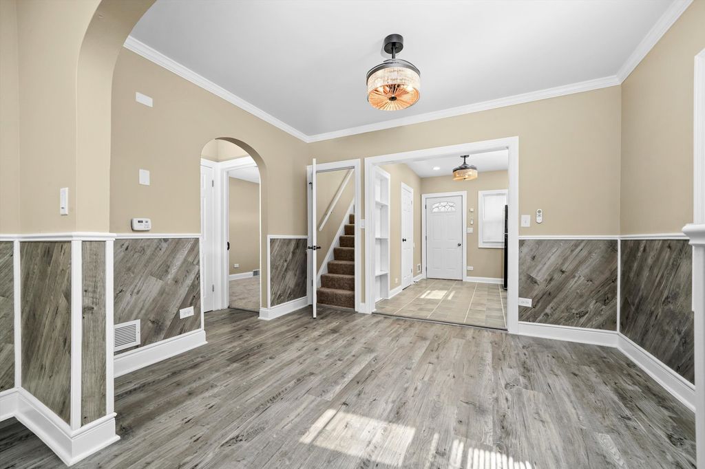 Beautifully fully remodeled home with 3 levels of living space where contemporary elegance of style meets comfortability. The details of the exterior built with craftsmanship details from the masonry to the newly wide deck on the front and rear of home, fenced yard and detached garage to enter into the interior flow for the floor plan of spacious rooms, new flooring throughout, new HVAC, Central Air system, plush carpet in the bedrooms, fireplaces in the bedrooms, deep closets for storage, new appliances, laundry room and much more! Seller providing a Home Warranty and Riverdale Village Inspection passed! Shops, restaurants, transit, Riverdales's community schools and Library ...minutes away...all is left is to move in!