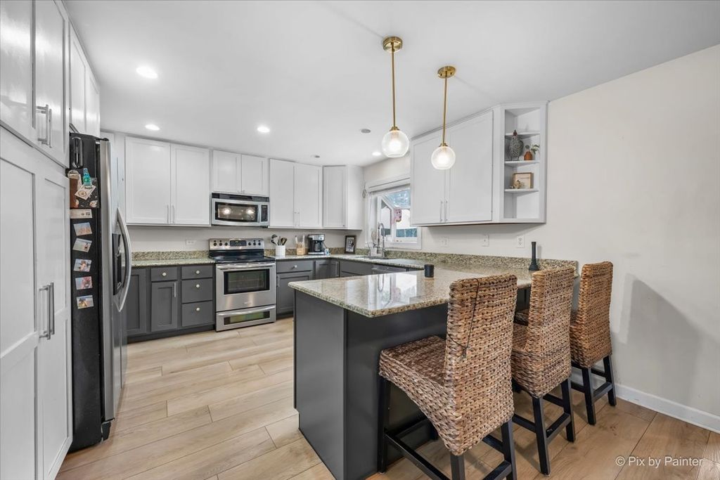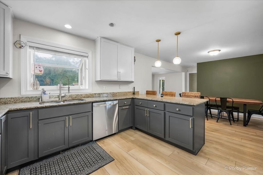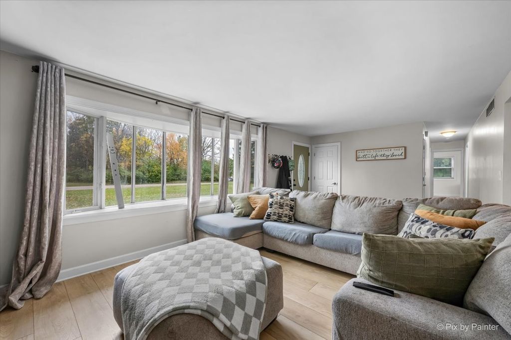 Calling all aspiring homesteaders looking for country living! You betcha, we have a chicken coop, WITH CHICKENS INCLUDED in the sale! 🙂 Lots has been done to this ranch home in the last few years! Situated on 1+ acre lot in the desirable District 158 Huntley School District, just minutes to booming downtown Huntley and Route 47! 3 Bed (with 4th Bed in Finished Basement), 3 Full Bath, oversized 2-car garage with extra parking on the driveway! Step inside and notice the big, bright bay window in the living room with new custom built-ins, and newer vinyl plank flooring throughout most on the main level! Kitchen offers stylish white cabinets, pendant light, granite counters and stainless appliances. The breakfast bar offers a space to gather during meal times. There's also plenty of space for a sit down meal in the eat-in dining area. On the main level there's another big family room space, could also make for a "play area" for kids. Owner's suite has attached bathroom with dual sinks, and gorgeous walk-in shower. Lots of space to add on your closet. The basement is mostly finished, with a 4th bedroom, recreation area, office/storage area and full bathroom. Just needs some flooring, trim, & minor work to really make it complete. NEW tankless well pump recently installed! AC is 2019. Large backyard perfect for soccer, football or basement games. Or just hanging out and enjoying the different spaces, as there is a deck AND patio area. Great opportunity, this one will go fast!