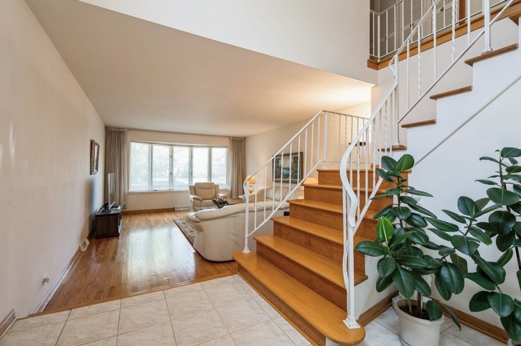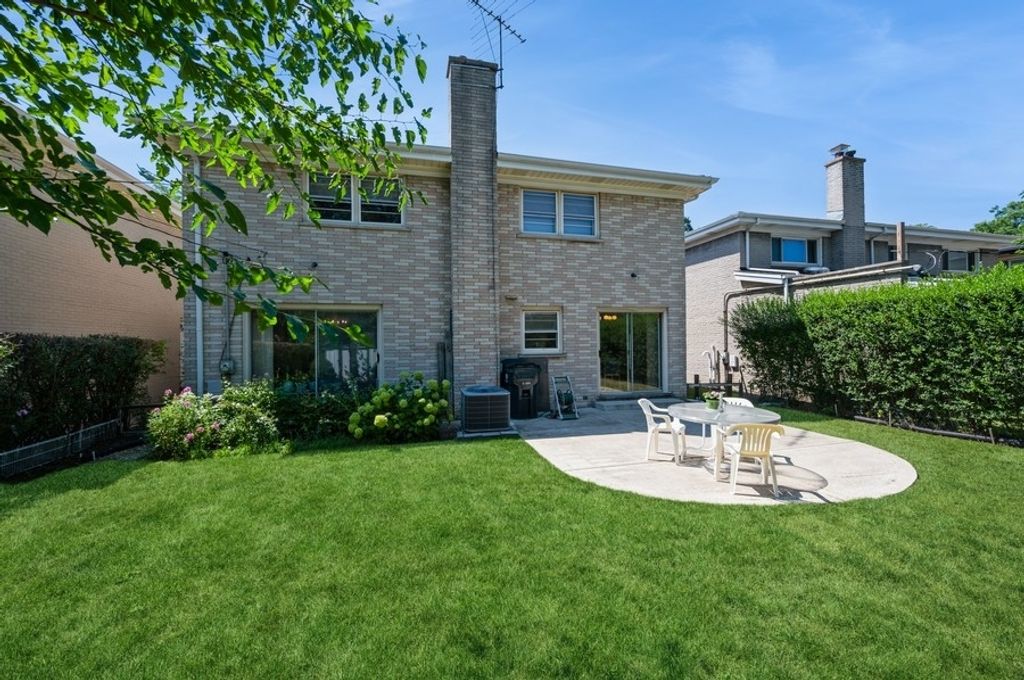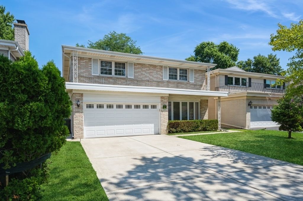 Pristine single-family home in the heart of Lincolnwood featuring a two-car attached garage and a large, private backyard-perfect for family living and entertaining. This meticulously maintained home offers four generously sized bedrooms on the upper level and a functional, flowing layout throughout. The welcoming two-story foyer is filled with natural light and showcases an extra-wide, winding hardwood staircase. The sun-filled living room features a charming bay window with a window seat overlooking the front yard. A separate formal dining room provides easy access to both the kitchen and backyard via a sliding glass door. The updated eat-in kitchen boasts granite countertops, stainless steel appliances, and a bright breakfast area with direct access to the patio and yard. The main level also includes a spacious paneled family room, hardwood floors throughout (tile in foyer), a convenient first-floor laundry room, and a powder room. Upstairs, you'll find four large bedrooms-all with expanded closets. Three bedrooms share a full bath with a skylight, while the primary suite includes a spacious walk-in closet, separate dressing area with vanity, and a private bath. The upper hallway is bright with hardwood flooring and a large window for added light. All bedrooms are carpeted for comfort. The large, dry basement offers endless possibilities for finishing or storage. Additional recent updates include a newer furnace and A/C (2022), newer water heater, and fully redone concrete work including driveway, entryway, patio, and walkway. Located just off Touhy Avenue, east of the Edens Expressway-offering easy access to downtown, top-rated schools, excellent restaurants, beautiful parks, shopping, and more. A truly move-in ready home in an unbeatable location!