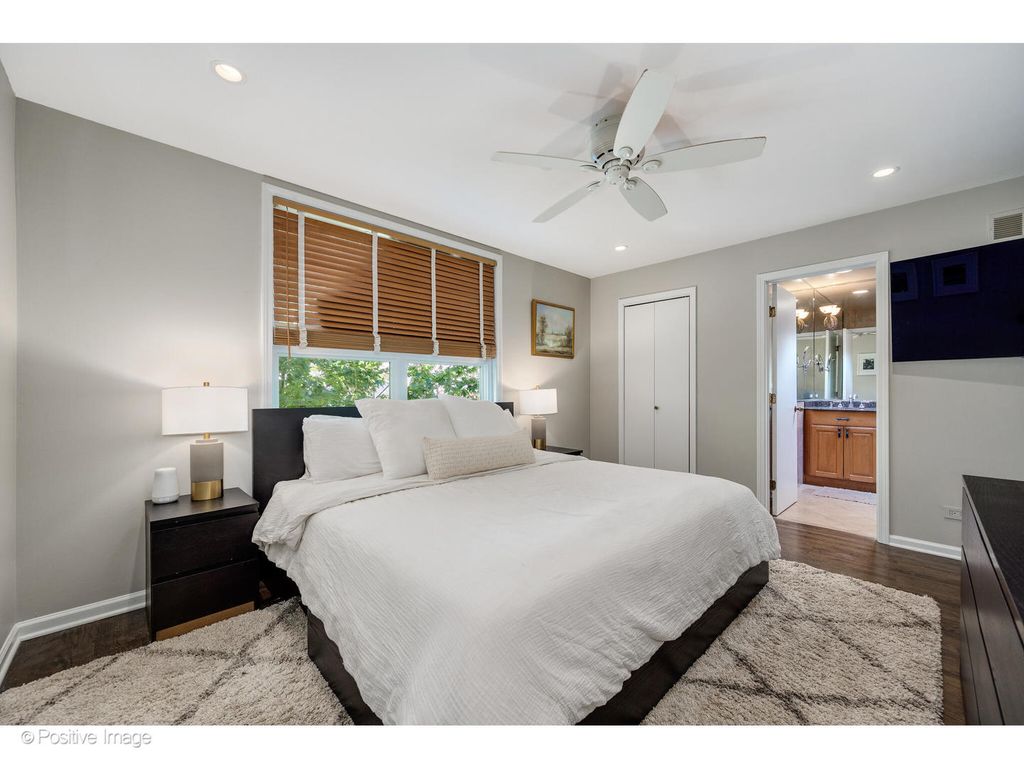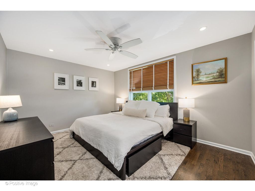 Nestled on a charming tree-lined street in the highly sought-after Oscar Mayer school district, this thoughtfully maintained fee simple townhouse blends timeless design with modern upgrades. Designed by Booth Hansen, the home offers bright, inviting living spaces across three levels. The main level features rich hardwood floors, a dual-sided gas fireplace, and an open layout that connects living and dining areas. The eat-in kitchen has been updated with some new high-end appliances, custom cabinetry, granite countertops, and a tasteful backsplash, flowing seamlessly to an outdoor deck which is perfect for entertaining, grilling, or enjoying peaceful evenings outdoors. Upstairs, the primary suite offers a spacious walk-in closet and a spa-like bathroom with a glass-enclosed walk-in shower and refined finishes. A second bedroom enjoys serene tree-lined views, accompanied by a beautifully renovated bathroom with fresh grout work. The lower level offers a flexible space ideal for an office, guest room, or den, along with a powder room (plumbed for a conversion to a full bath). This level opens to a paved, covered outdoor area designed for year-round enjoyment. Additional upgrades include fresh paint and trim throughout, a new washer, updated electrical work, and a refreshed deck with new stairs. Located just steps from Oscar Mayer Elementary, the 606, Armitage EL, and the Clybourn Metra, the home offers unparalleled access to neighborhood favorites including Trader Joe's, Whole Foods, Pequod's Pizza, and a vibrant selection of local shops and restaurants.