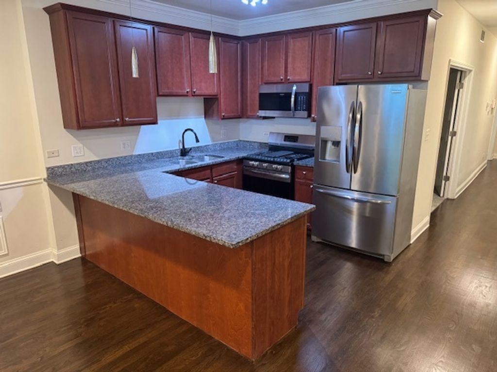 Beautiful 3bed, 2baths condominium built 2008. Open kitchen With cherry cabinets, granite counter tops, stainless steel appliances. Master Bedroom has huge space with walk-in closet, Elegant Master Bath with double sink, separate shower. Unit highlights include Brand new hardwood floors, fireplace, crown molding, central air, in-unit washer and dryer, and 2 car tandem parking space.