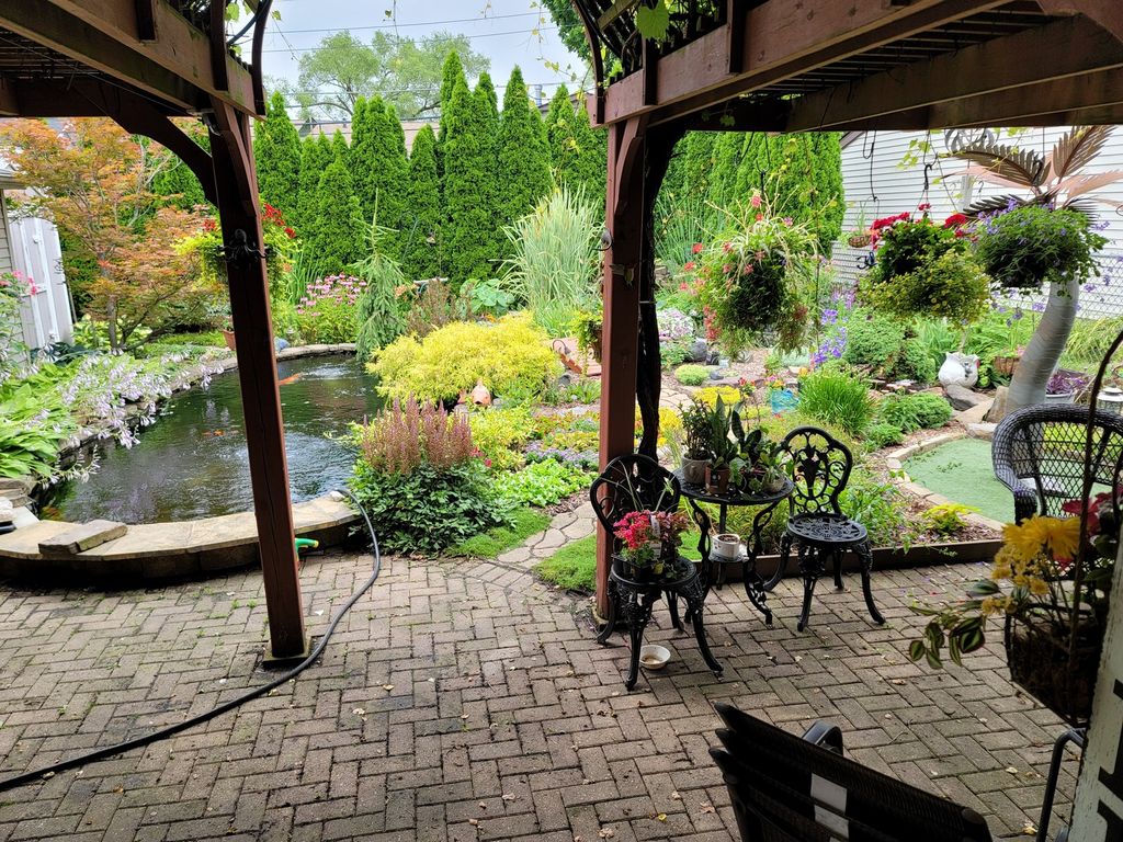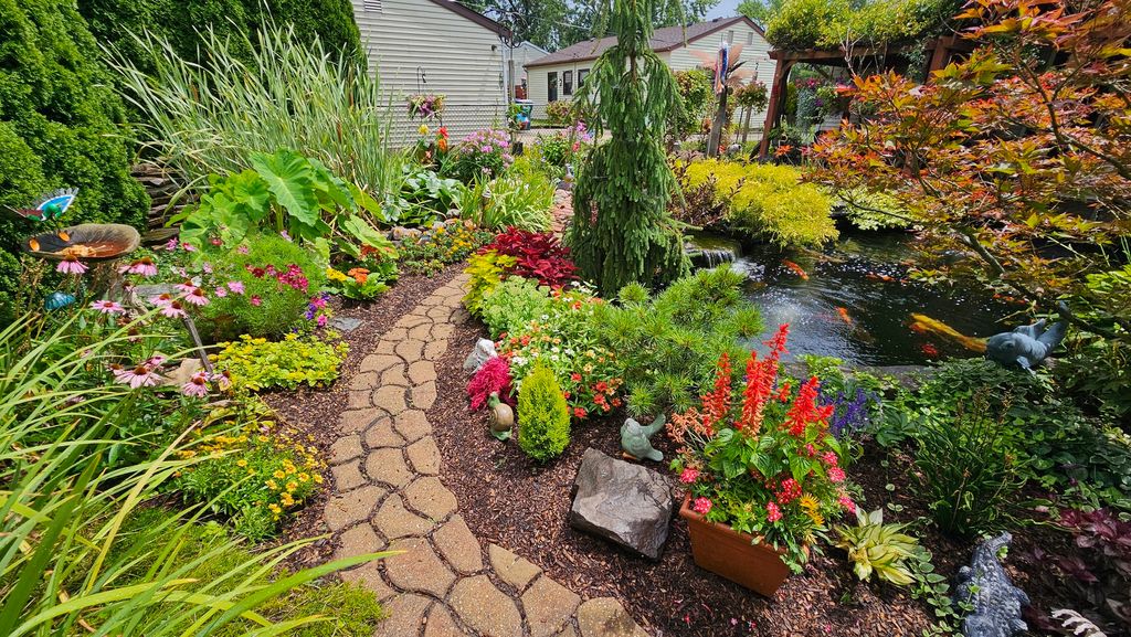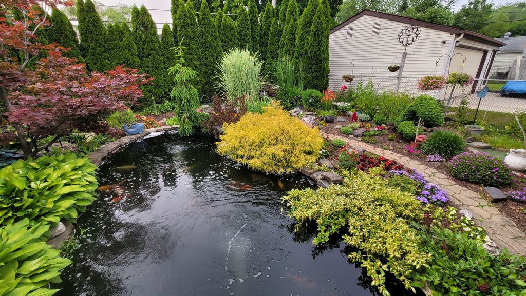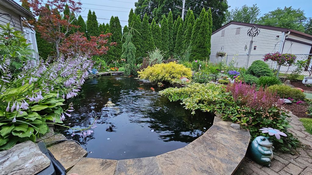 110 Elm offers easy everyday living AND a backyard sanctuary you won't want anyone to talk about until after you've seen it. Inside, the home welcomes you with a sun-filled living room, a large picture window, and a wood-burning stove that adds warmth and charm. The kitchen provides abundant cherry-stained cabinets, full appliances, and a spacious dining area perfect for real gatherings. Three comfortable bedrooms with generous closets sit just steps from the hall bath, with convenient in-home laundry and a detached garage completing the layout. The real magic happens outside. The backyard unfolds into a serene retreat featuring a one-of-a-kind, professionally designed Koi pond system-truly unlike anything else in the area. Surrounded by lush plantings, a winding paver path, a greenhouse, and two pergolas set on an impressive paver patio, this space feels like a hidden getaway carved into everyday life. A charming home in front. A private escape in back. Come experience it for yourself before the secret gets out!