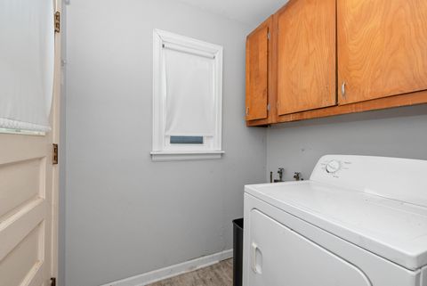 Welcome to this spacious 5-bedroom home offering versatility, comfort, and a great setup for possible related living! Step inside the main level and be greeted by a bright and inviting living and dining area featuring updated luxury vinyl flooring and plenty of natural light through the newer windows. The eat-in kitchen offers a generous dining space, built-in stove and cooktop, and refrigerator, making it perfect for everyday meals or entertaining. A main-floor laundry room adds extra convenience. You'll also find three well-sized bedrooms and a full bath on this level. The second level provides an excellent opportunity for related living or an extended family setup with its own living room, second kitchen, two additional bedrooms, and full bath. The unfinished basement offers ample storage or future finishing potential. Outside, enjoy a fenced-in backyard that's great for gatherings, pets, or play, along with a 2.5-car detached garage accessible from the alley. This home combines flexibility and function-perfect for multi-generational living or anyone seeking extra space. Don't miss the chance to make it yours! *Property is sold as is*