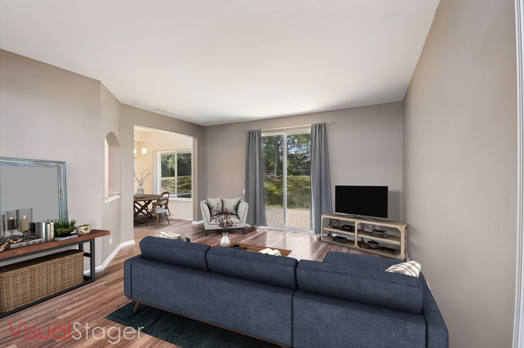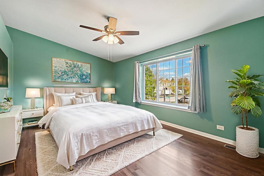 Private entrance END UNIT in a prime location just off the Randall Rd Corridor and only minutes to Metra, I-90, Rt 20/Elgin O'Hare, restaurants, shops, and schools! Enter through the private side door into a bright two-story foyer that opens to a spacious living room filled with natural light from multiple windows. The open-concept layout flows into the kitchen and dining area with sliding doors leading to a brick patio and peaceful green space-perfect for relaxing or entertaining. The kitchen offers abundant cabinet and counter space, granite countertops, stainless steel appliances including a brand new stove, and a convenient pantry closet. A first-floor powder room and direct access to the attached two-car garage provide add functionality and storage. Upstairs features a large primary suite with VAULTED ceilings and fan, Walk in closet, granite on vanity and walk in shower plus linen closet and bidet in private bath! The versatile loft makes a great office, den, or could easily convert to a third bedroom. Second bedroom, full hall bath with furniture style vanity, and convenient second-floor laundry (washer and dryer included) complete the upper level. Recent updates include new furnace and A/C, new powder room, new kitchen faucet, new smart thermostat, and new shower fixture in hall bath. Move-in ready and beautifully maintained! No carpet- solid surface flooring throughout!!! Ready for immediate move in.