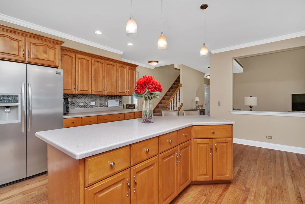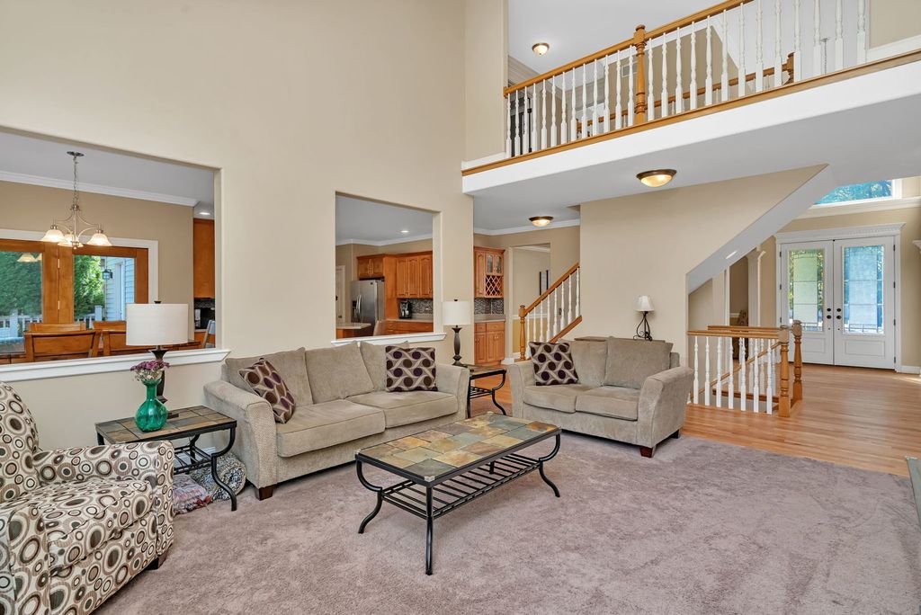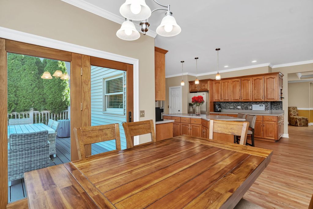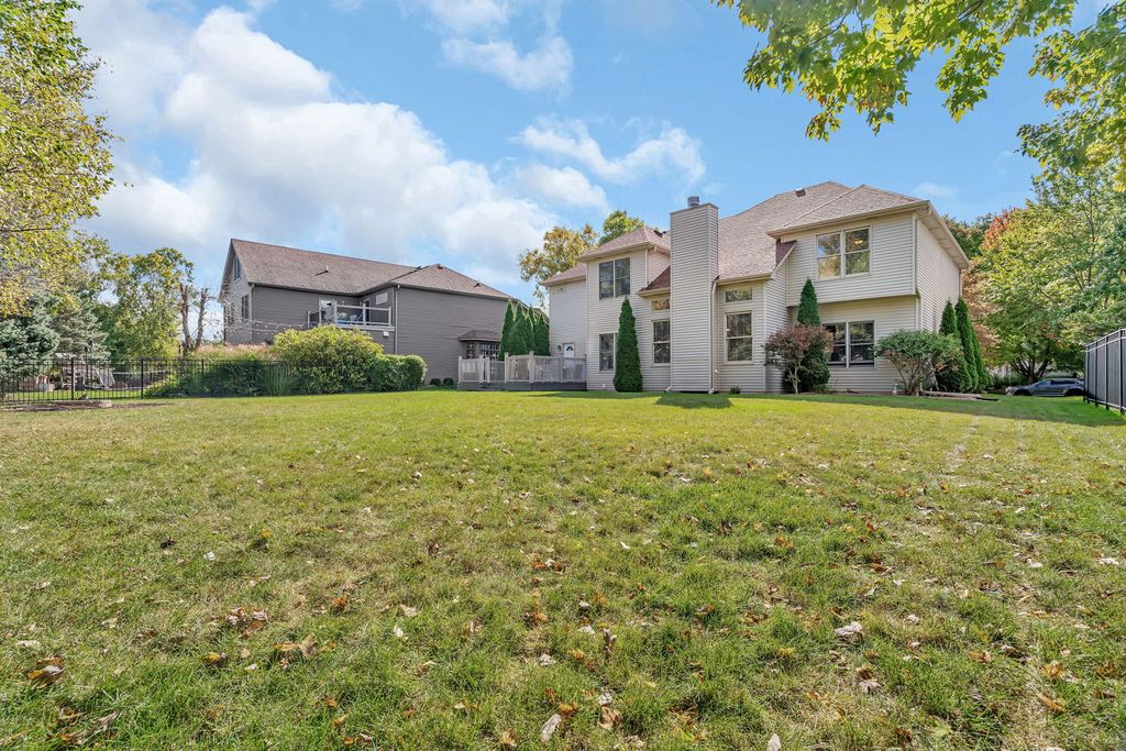 Welcome to this extraordinary home nestled in the heart of Plainfield's highly sought-after Wallin Woods subdivision, just a short stroll from the vibrant downtown Plainfield filled with charming shops, cozy cafes, and local restaurants. Step inside and fall in love with the soaring cathedral ceilings and beautiful open floor plan that immediately make you feel at home. The oversized kitchen is the perfect gathering space, featuring sleek stainless-steel appliances, Corian countertops, and a designer backsplash - all opening to the spacious family room or out to the large backyard and expansive deck, ideal for relaxing or entertaining under the stars. A private main-floor office is perfectly tucked away for quiet productivity. Upstairs, you'll find four spacious bedrooms, including a stunning primary suite with a cozy sitting area and a luxurious master bath boasting a brand-new custom shower and elegant finishes. The additional bedrooms offer generous closets, and the beautifully updated hall bath features double sinks and a tastefully tiled shower area. The fully finished lower level provides even more room to spread out - perfect for movie nights, game days, or a home gym. From its prime location near downtown to its stylish updates and incredible space, this home truly has it all. Experience Plainfield living at its best!