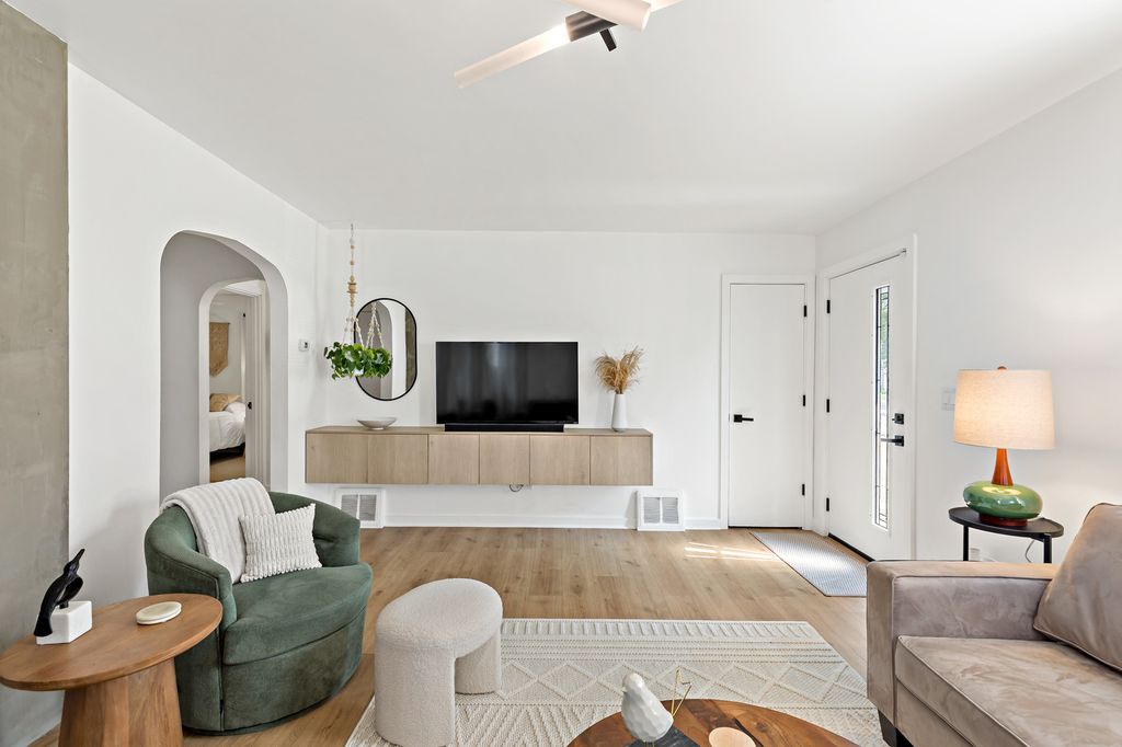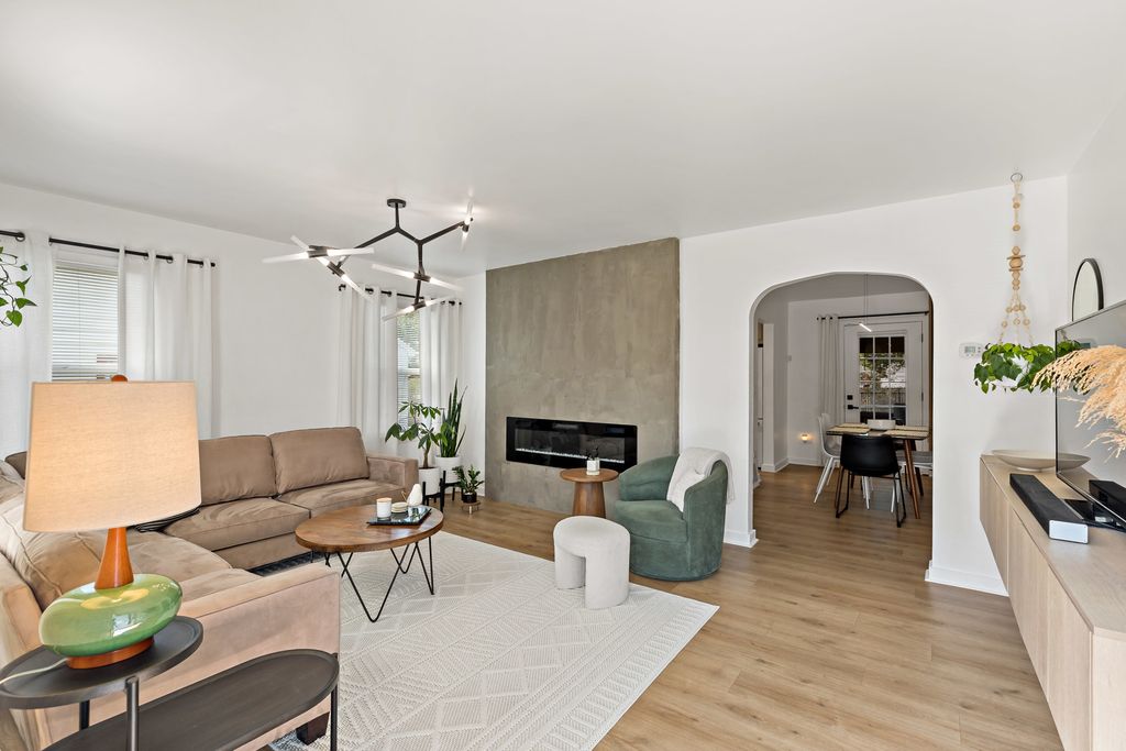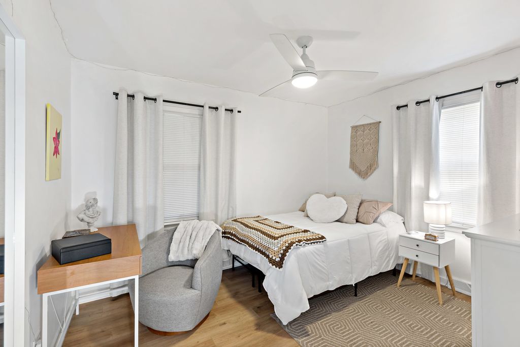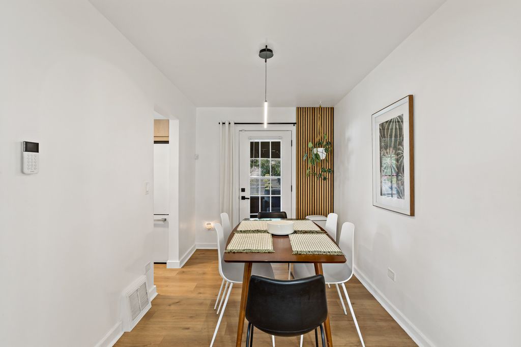 This captivating home perfectly blends modern and minimal style with comfortable, practical living. As you step inside, you'll immediately appreciate the clean lines and well-maintained feel of this residence, which is truly a turn-key opportunity. The heart of the home is a stylish and functional kitchen, designed for those who appreciate a clutter-free environment. While not sprawling, it offers a smart layout with plenty of storage, sleek white appliances, and a minimalist aesthetic that makes meal prep a joy. A full dining room provides an elegant space for hosting dinner parties or enjoying family meals. The spacious master bedroom is a true retreat, offering a tranquil escape at the end of the day. It features a private, modern ensuite bathroom, ensuring a serene start and end to your daily routine. Step outside to discover a home designed for effortless indoor-outdoor living. The serene and relaxing screened-in porch is the perfect spot for your morning coffee or unwinding with a good book, while the adjacent deck is ideal for grilling and entertaining. The nicely landscaped, fenced-in yard provides a private and secure oasis for outdoor activities. This home is designed for convenience and ease. The side driveway offers ample parking, and the full basement provides a vast amount of storage space, ensuring everything has its place. The entire house is incredibly easy to keep clean, allowing you to spend more time enjoying your life and less time on chores. Location is everything, and this home delivers. Enjoy the unbeatable convenience of being within walking distance of both the high school and junior high. All of this is offered with the added benefit of low taxes, making this a truly smart and beautiful place to call home.