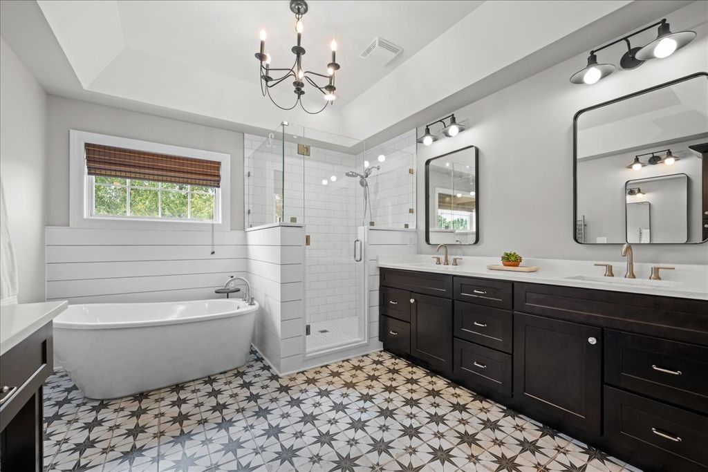 Welcome to this stunning Mill Creek home perfectly situated along the Tanna Farms Golf Course! This home lives large with nearly 4,000 square feet of beautifully finished space and sits on a private, fenced lot adjacent to non-buildable open space-offering both privacy and scenic views. The backyard is an entertainer's dream with a gorgeous paver brick patio, built-in fire pit, and ample room for outdoor living. Inside, you'll find gleaming hardwood floors, including a herringbone design in the light-filled first floor office. The open floor plan features a soaring two-story family room with expansive windows and a cozy gas-start fireplace, flooding the home with natural light. The updated kitchen boasts stainless steel appliances, elegant cabinetry, and a perfect flow for entertaining. Upstairs are four spacious bedrooms, including a massive primary suite with an updated spa-like bath showcasing a soaking tub, designer tile shower, dual sinks, and a generous walk-in closet. Home has an abundance of storage including walk-in closets, full basement and four car garage. Conveniently located near local parks, the elementary school, and just minutes to downtown Geneva's shops, restaurants, and LaFox train station-this home offers the best of Mill Creek living!