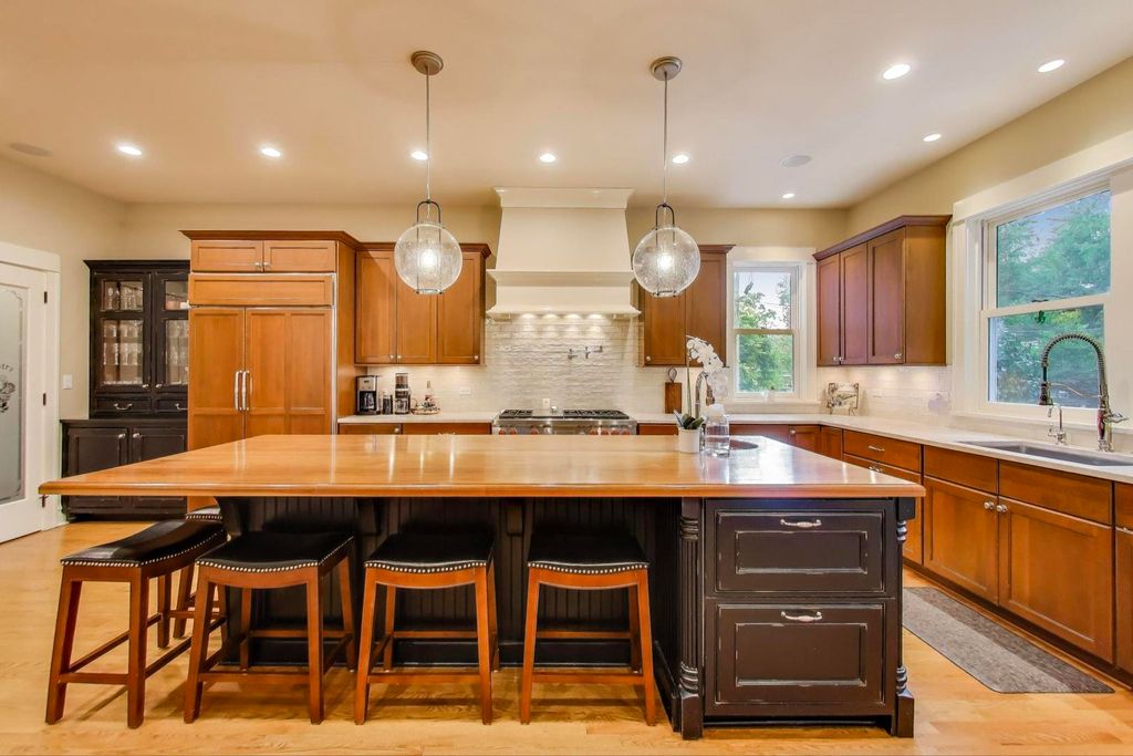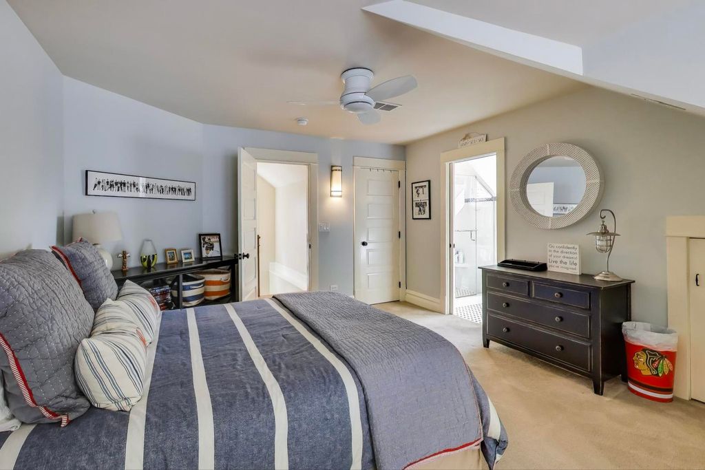 Quintessential East Wilmette home with great front porch, spacious lot (50 x 189), and rooms in all the right spaces for today's living on a tree lined street! This gorgeous 5-bedroom, 5.1 bathroom property had a full expansion renovation, with a three-story addition and dug out basement in 2008, plus new improvements. The inviting front porch welcomes you into the foyer where you will notice beautiful millwork, hardwood floors, tall ceilings, and sun filled rooms. Formal living room features lovely windows, an updated gas fireplace that opens to formal dining room with leaded glass windows. Dining area is open to the kitchen and family room, perfect for entertaining a crowd. Oversized chef's kitchen with custom cabinets, newer quartzite countertops, two sinks, Wolf oven and a half & range, SubZero refrigerator/freezer, one beverage door, one freezer drawer, walk-in pantry, control zone and large island! Kitchen opens to the family room with a wood burning fireplace, flanked by custom bookshelves, plus an additional entertainment area with a wine fridge and kegerator. South facing back of the home, overlooks the backyard - included a deck with trex-like decking, two bluestone patio areas, built in grill/plus green egg and fireplace. Dedicated office with loads of built ins and beautiful powder room finishes the first floor. The second-floor features primary suite with a fireplace in the bedroom, huge bathroom with his and her vanities, steam shower, radiant floors, soaking bubble tub, plus two spacious walk-in closets and a linen closet. Additional stackable laundry is on the floor. Three additional, generous-sized bedrooms are off the second floor landing, including an en-suite and hall bath. Third floor offers an additional bedroom, with an ensuite bathroom and a walk-in closet. Bonus space for an additional sitting room/office, plus storage finishes the floor. You won't be disappointed with the dug out basement, features a fabulous rec room, exercise room, 300+ temperature controlled wine celler, mudroom, laundry room and TONS of storage areas. Landscaped back yard with a bluestone walkway. Two car garage, plus a parking pad. Can't beat this walkable location to Central Elementary, town, Metra train, shops, Plaza Del Lago, and the beach!
