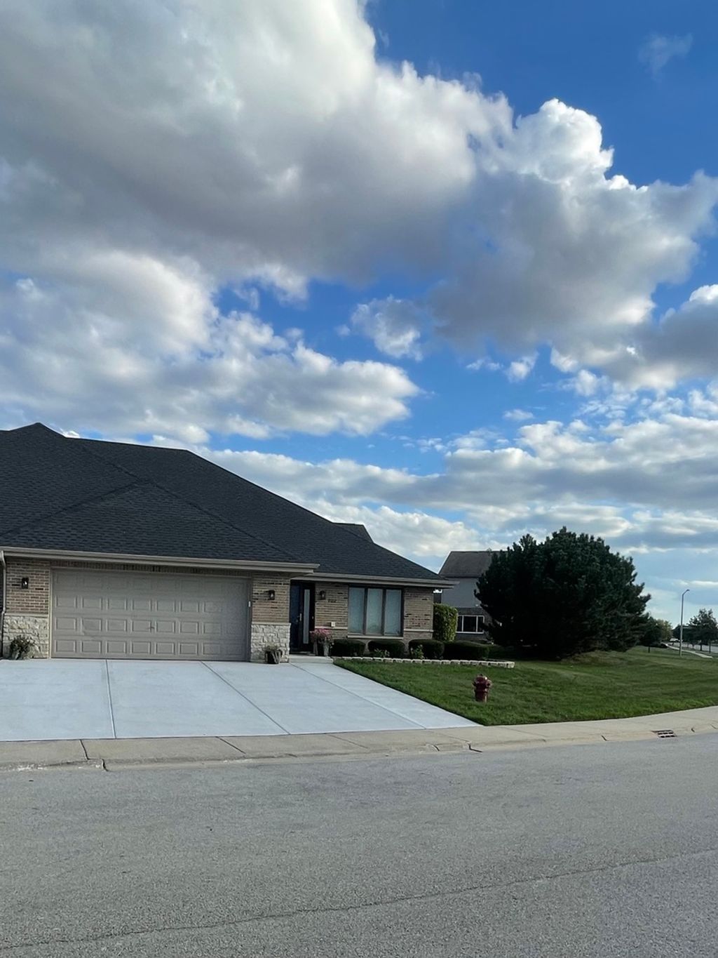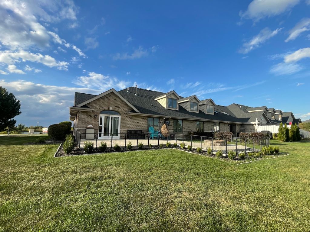 Absolutely beautiful end unit on a large corner lot with a pond view, this ranch townhome is in the sought after Sky Harbor subdivision. New construction being built in the subdivision, this 5 bedrooms (2) on the main level, (1) upstairs, (2) in the finished basement has 3 full bathroom and a full basement so many upgrades better value than new construction. Recent updates: Wainscoting in the dining area, mud room, & 1st floor hallways, finished basement with full bathroom w/ jacuzzi tub, tiled tub & shower, ceramic tile flooring throughout the basement, teak hardwood floors on the main level (excluding the 3 bedrooms, Roof new in 2023, brand new extra wide concrete driveway 2025, 2.5 car garage with new Polyaspartic flooring with a lifetime warranty, oversized concrete backyard patio with stone fire pit, New front door, back door, new patio door, new kitchen quartz counter tops, backsplash, new dishwasher, new 50 gallon hot water tank.