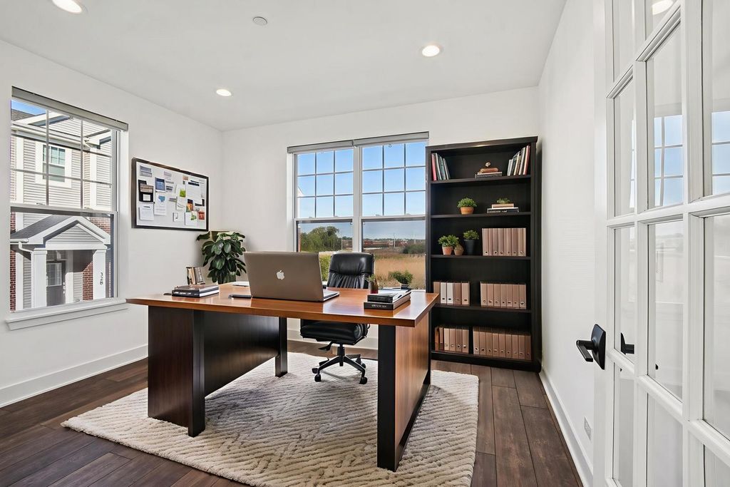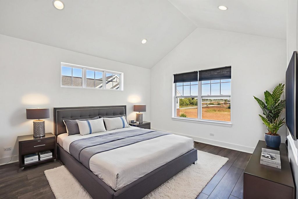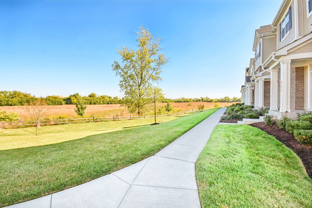 Move in for the holidays- better than new in Roselle! This stunning 2023-built "Warrington" END-unit by Lexington Homes boasts TWO Master Suites with private baths PLUS a large Den with premium upgrades, custom window treatments throughout, and a PPRIME LOCATION with expansive green space out front - PET FRIENDLY perfect for a dog or enjoying the outdoors. Two story foyer leads to the open main level. The sunlit living room with dramatic STONE FIREPLACE is open to the dining area and UPSCALE CHEF'S KITCHEN with Quartz waterfall island, soft-close 42" cabinetry, and STAINLESS STEEL appliances. A private den with glass French doors makes working at home delightful. A stylish powder room completes the main floor. Upstairs, the LUXURIOUS primary suite features VAULTED ceilings, dual walk-in closets, and a spa-inspired bath with dual sinks and glass walk-in shower. The second bedroom has its own ensuite with private bath too! The finished lower level provides versatile space for media, fitness, or entertaining. The epoxy-floored finished two-car garage with built-ins combines function with style. Premium end-unit location ensures privacy while being minutes from the Schaumburg Metra, shopping, and dining and under 5 minutes to Starbucks. Move-in ready and truly better than new! Such a versatile floor plan perfect for combined living, work from home, and great guest set up as well.