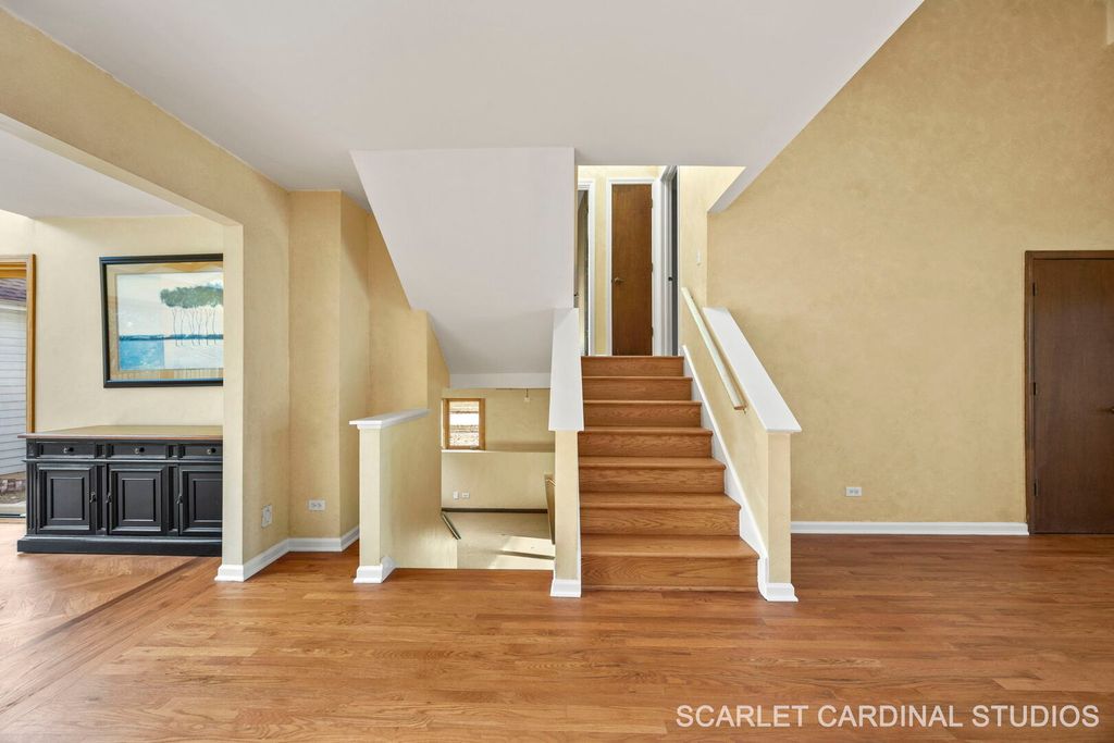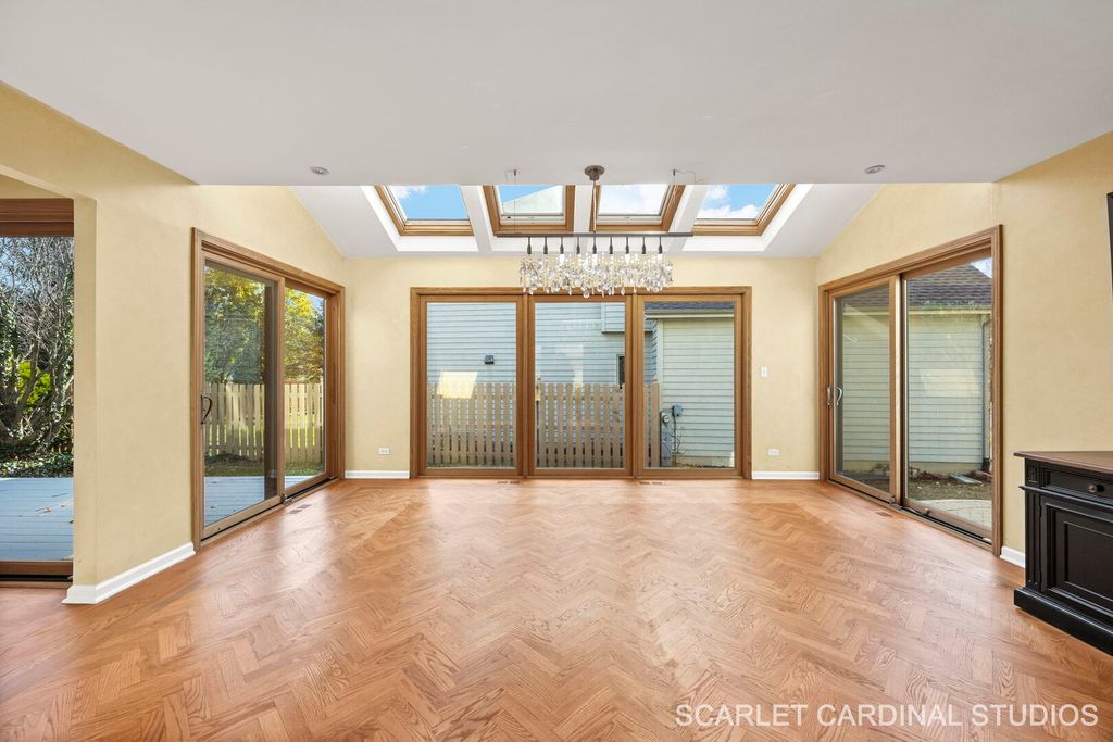 This spacious home sits on a large corner lot and offers four levels of living space, plus a partial basement with two crawl spaces for additional storage. The unique multi-level layout provides functionality and flow, perfect for modern living. The newer front door, with custom stained glass transom and side lite, leads into a welcoming foyer, which features beautiful hardwood floors with an elegant herringbone pattern and custom inlay that is echoed in the nearby dining room. The stunning two-story living room is a showstopper, boasting oversized windows, multiple skylights, a fireplace, and soaring vaulted ceilings with a loft that overlooks the space from above. The open floor plan continues into the dining room, where floor-to-ceiling windows and additional skylights flood the space with natural light. The updated kitchen is a chef's dream, featuring commercial-grade stainless steel appliances, granite countertops, custom natural cherry cabinetry, a large island with built-in cooktop, and a Thermador backdraft fan hood. An oversized pantry provides generous storage, and sliding glass doors offer seamless access to the back deck, ideal for entertaining. Upstairs on the second level, you'll find two spacious bedrooms and a beautifully updated full bath. The third level is dedicated to a private primary suite, complete with dual closets and a fully renovated en suite bath. The lower level offers a large family room, accessible directly from the living room, and perfect for relaxing or entertaining. The basement includes a dedicated laundry area and dual crawl spaces for abundant storage options. Outside, enjoy the peaceful backyard with both a deck and paver patio, providing multiple areas to unwind. Located just minutes from Downtown Naperville and the amenities along Ogden Avenue, the home is also conveniently situated across from Yorkshire Manor Park and Seager Park. Minutes away from I-88, Costco, Amazon Fresh, H Mart, and abundant dining options. At this price point, this property offers excellent value for a fortunate buyer. Welcome home!