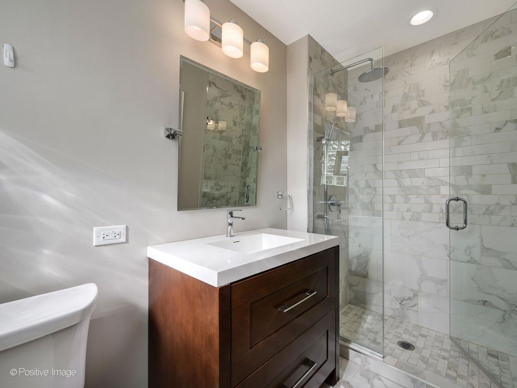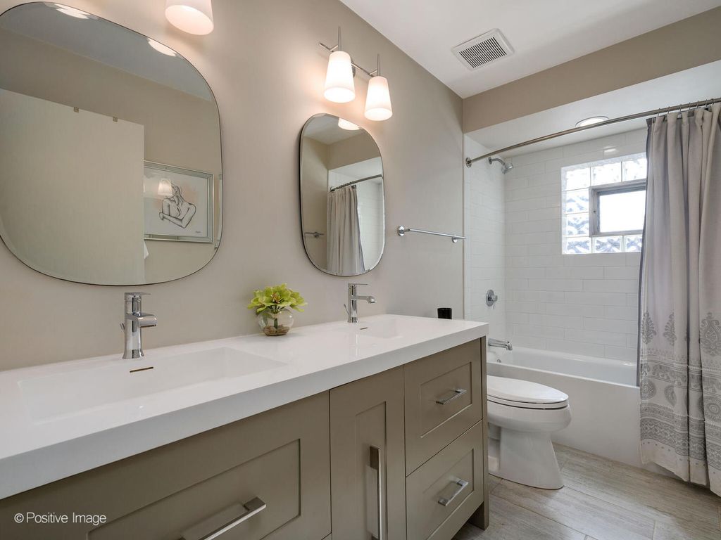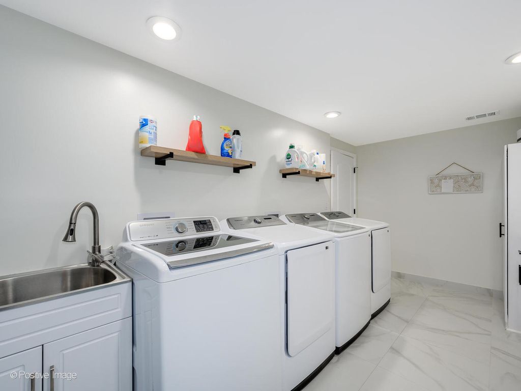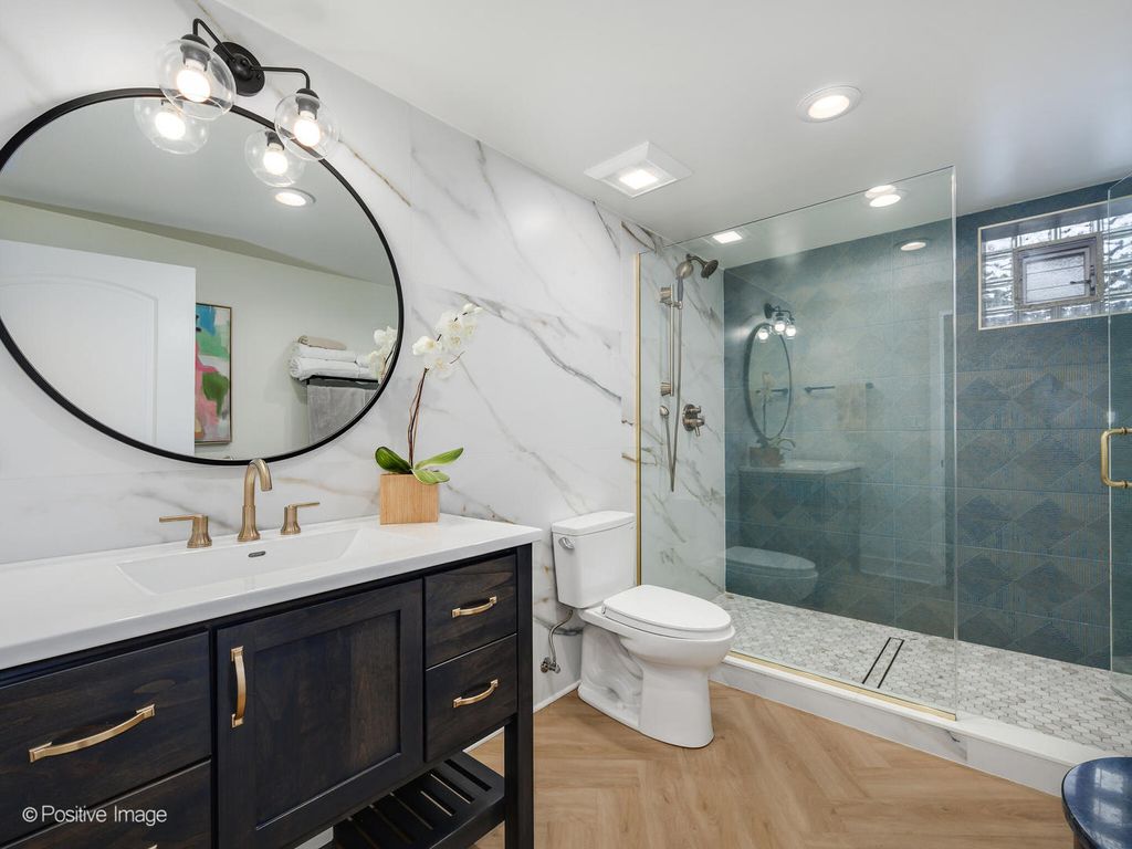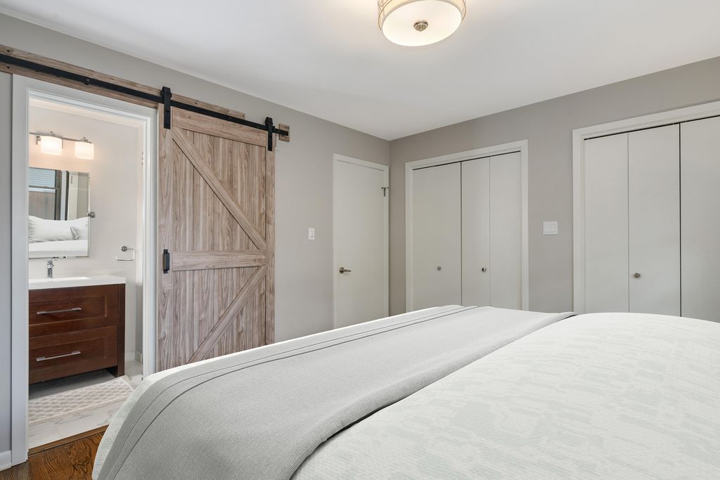 Beautifully reimagined from top to bottom, this 4-bedroom, 3-bath home blends timeless curb appeal with modern convenience in a Park Ridge location. From the moment you arrive, the brick facade, new landscaping, and large picture windows set a welcoming tone. Step inside to a light-filled living and dining area where pristine hardwood floors, sleek electric shades, and an open flow create an inviting setting for daily living or entertaining. The updated kitchen is a true showpiece-featuring custom cabinetry to the ceiling with glass display sections, herringbone tile backsplash, quartz countertops, stainless steel appliances, peninsula seating for 4-5, under-cabinet lighting, and designer pendant fixtures. A large pantry keeps everything organized. The kitchen opens seamlessly to the family room, offering additional dining space, a comfortable lounge area, and sliding doors that lead to the beautifully landscaped backyard. The main level features three spacious bedrooms, each with professionally built-out closets, one bedroom with a custom murphy bed and two fully updated bathrooms. The completely renovated lower level is equally impressive-boasting a stylish herringbone floor, full wet bar with dishwasher, beverage fridge, and sink, plus an oversized laundry room with two full size washer/dryers, built-in cabinetry, and even a dog wash station. The open floor plan offers a spacious rec room with seating plus in-home gym and office space. Plus, a large bedroom and full bathroom with a walk-in shower provide the perfect setup for guests or extended family. Additional highlights include designer tile and finishes throughout, a 200-amp electrical panel, and an attached garage with epoxy flooring and two 220 outlets for EV charging. Outside, enjoy the privacy of a fenced yard with newer landscaping and a sprinkler system-perfect for relaxing or entertaining. Every detail has been thoughtfully curated for modern living and effortless style.