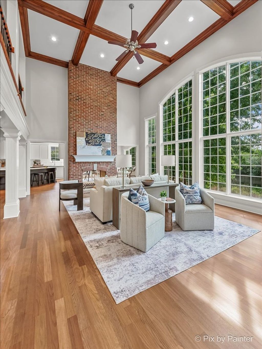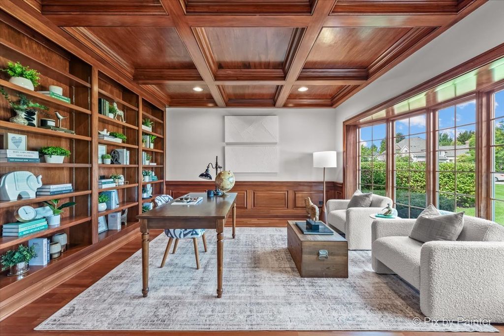 FALL IN LOVE WITH THIS EXCEPTIONAL FOX MILL STUNNER! SUNNY AND BRIGHT CUSTOM-BUILT DERRICO HOME WITH A SPRAWLING FLOOR PLAN THAT IS PERFECT FOR ENTERTAINING! TIMELESS SOLID BUILT BEAUTY FEATURES 3/4 ALL BRICK AND STONE EXTERIOR AND 3-1/2 CAR SIDE LOAD GARAGE ~ PEACEFUL PRIVATE SETTING BACKING TO PRIVACY TREES WITH WETLANDS AND POND JUST BEYOND AND NO NEIGHBORS BEHIND ~ COVERED FRONT ENTRY LEADS INTO AN IMPRESSIVE 2 STORY FOYER WITH A SPLIT DUAL STAIRCASE ~ GLEAMING REFINISHED HARDWOOD FLOORING THROUGHOUT THE MAIN LEVEL ~ HANDSOME 1ST FLOOR HOME OFFICE WITH BUILT-IN SHELVING, COFFERED CEILING, WAINSCOTING, AND GLASS FRENCH DOORS. A RELAXING VERSATILE 1ST FLOOR SUNROOM COULD ALSO SERVE AS A PERFECT LIVING ROOM OR A FUTURE 1ST FLOOR BEDROOM ~ DRAMATIC 2 STORY FAMILY ROOM W/FLOOR TO CEILING WINDOWS, 2 STORY WARM BRICK FIREPLACE, CAPTIVATING COFFERED CEILING AN OPEN CATWALK ABOVE AND GALLERY HALLWAY BELOW ADDING A TOUCH OF ARCHITECTURAL ELEGANCE ~ FORMAL DINING ROOM WITH WAINSCOTING, TRAY CEILING AND CROWN MOLDING ~ ENORMOUS SUNNY EAT-IN KITCHEN WITH QUARTZ COUNTERS, STAINLESS STEEL APPLIANCES, BREAKFAST BAR ISLAND, PLETHORA OF CABINETS AND COUNTER SPACE, BUTLERS PANTRY WITH WET BAR, A WALK-IN PANTRY, A BREAKFAST ROOM WITH FIREPLACE + DOOR TO NEW DECK ~ 1ST FLOOR LAUNDRY ROOM WITH A CLOSET, SINK AND CABINETS. DOUBLE DOOR ENTRY LEADS INTO AN ENORMOUS PRIMARY SUITE DESIGNED FOR COMFORT FEATURING A WARM FIREPLACE A PRIVATE BATHROOM OASIS, COMPLETE WITH A MASSIVE JACUZZI TUB, A DUAL-HEAD SHOWER WITH A BUILT-IN SEATING WALL, AND DUAL VANITY SINKS + A HUGE 19X12 WALK-IN CLOSET ~ SIZABLE 2ND AND 3RD BEDROOMS WITH VOLUME CEILING, A JACK-N-JILL BATHROOM + WALK-IN CLOSETS ~ 4TH BEDROOM WITH A PRIVATE FULL BATHROOM AND WALK-IN CLOSET ~ FULL FINISHED WALK-OUT BASEMENT IS AN ENTERTAINERS DREAM AND FINISHED TO PERFECTION: FEATURING A HUGE REC ROOM WITH FIREPLACE, WINE CELLAR, EXERCISE ROOM, 5TH BEDROOM WITH FULL ADJACENT BATHROOM, A PLAYROOM, A 12X8 WALK-IN CLOSET, ENORMOUS STORAGE AND UTILTY ROOM + DOORS THAT LEAD TO A BRICK PAVER PATIO WITH FIRE-PIT AND A WONDERFUL PRIVATE BACKYARD! 5TH BEDROOM IS IDEAL FOR AN IN-LAW ARRANGEMENT, TEEN SPACE, OR GUEST SUITE ~ PROFESSIONALLY LANDSCAPED YARD WITH FLAGSTONE STEPS + IN GROUND SPRINKLER SYSTEM. ENTIRE HOME HAS BEEN UPDATED AND REFRESHED JUST FOR YOU + NEW ROOF TOO! NEW ENJOY ACRES OF OPEN SPACE, MILES OF PAVED BIKE TRAILS, WALKING PATHS, 11 PARKS, FISHING PONDS + POOL & CLUBHOUSE/COMMUNITY CENTER WITH MEETING ROOM, AND GORGEOUS GATHERING ROOM WITH FULL KITCHEN, PLUS SEVERAL COMMUNITY EVENTS THROUGHOUT THE YEAR THAT INCLUDE: 4TH OF JULY PARADE, 5K RACE, EASTER EGG HUNT, COOKIES WITH SANTA, SCHOOLS OUT PARTY, BOOK CLUB, BUNCO, FOX MILL SWIM TEAM AND SO MUCH MORE! BELL GRAHAM ELEMENTARY SCHOOL IS LOCATED IN THE SUBDIVISION + SHOPPING, DINING, DOWNTOWN STC + METRA STATION, AND MUCH MORE JUST MINUTES AWAY!