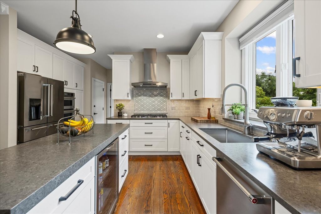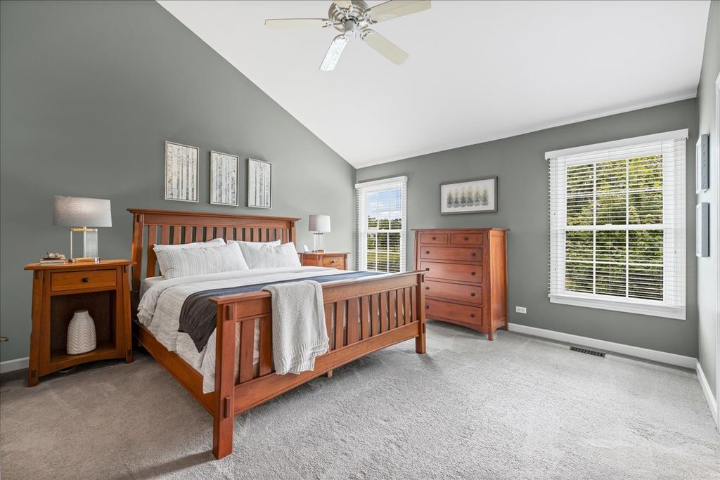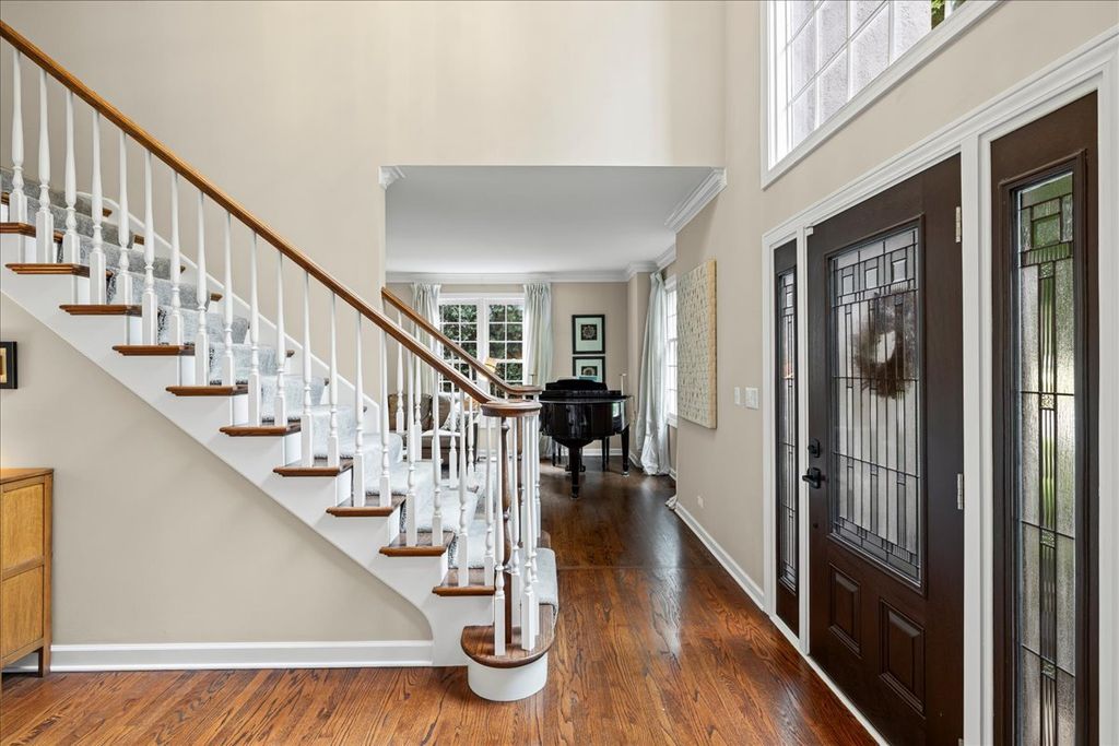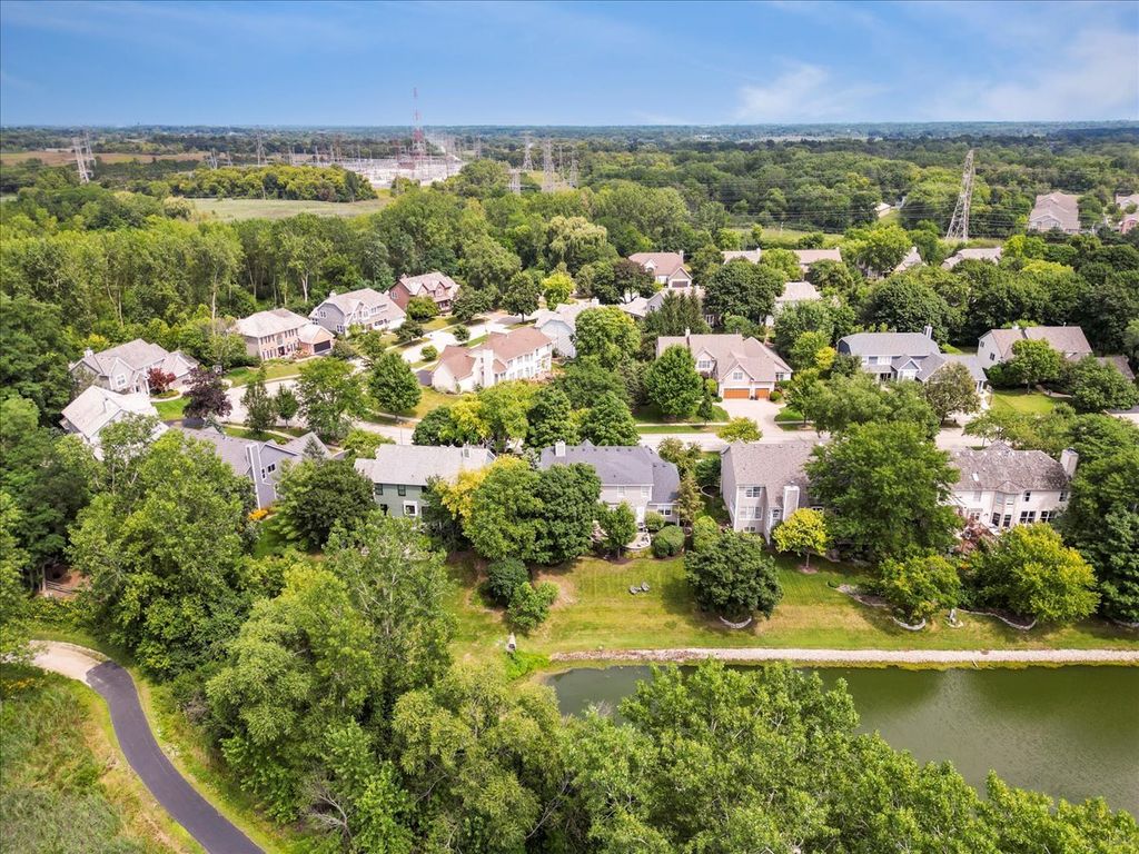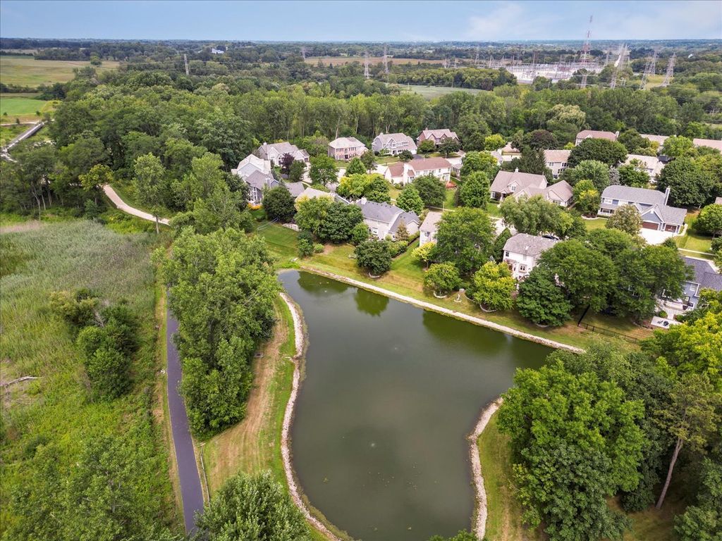 Get over to this beautifully updated and superbly located home in Libertyville's Timber Creek! Situated on a pond and adjacent to the Liberty Prairie Reserve, you've got access to beautiful views and the Casey Road Trail that rolls through spectacular countryside and connects you to the Independence Grove Forest Preserve complex for concerts, fishing, and beer garden. It's nothing short of spectacular! Inside this home, you will be hard-pressed to improve on the updates or the style. The kitchen is an absolute stunner - with subway tile, quartzite counters, and a high-end set of stainless Kitchen-Aid appliances. All that, and you get views to the paver patio! Other plan features include wood flooring, a first-floor office, and a vaulted family room with a huge wall of windows. Upstairs, there is a lovely primary suite with vaulted ceilings, a big walk-in closet, and a nicely updated bath. The basement here is finished "to the nines" with a media room, wet bar, full bath, and one of the nicest exercise studios you will see in a private residence. Schools are Adler Elementary (D70) Highland Middle (D70) and Libertyville High (D128) The delightful Timber Creek Park is tucked into the neighborhood just around the bend from this home. It's a lovely spot. Make it yours!
