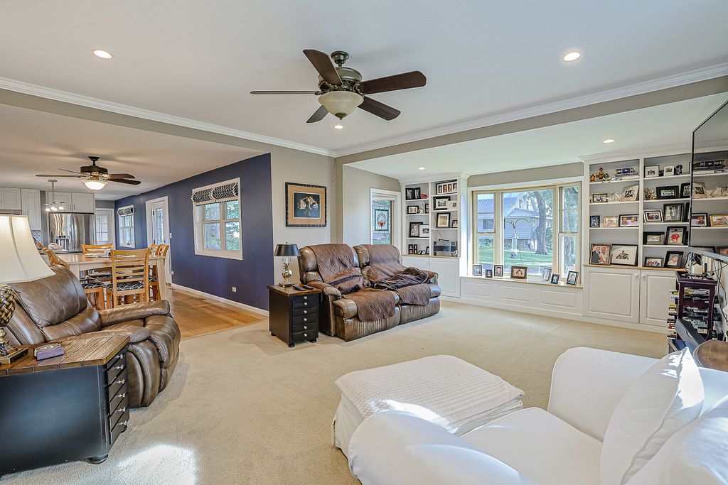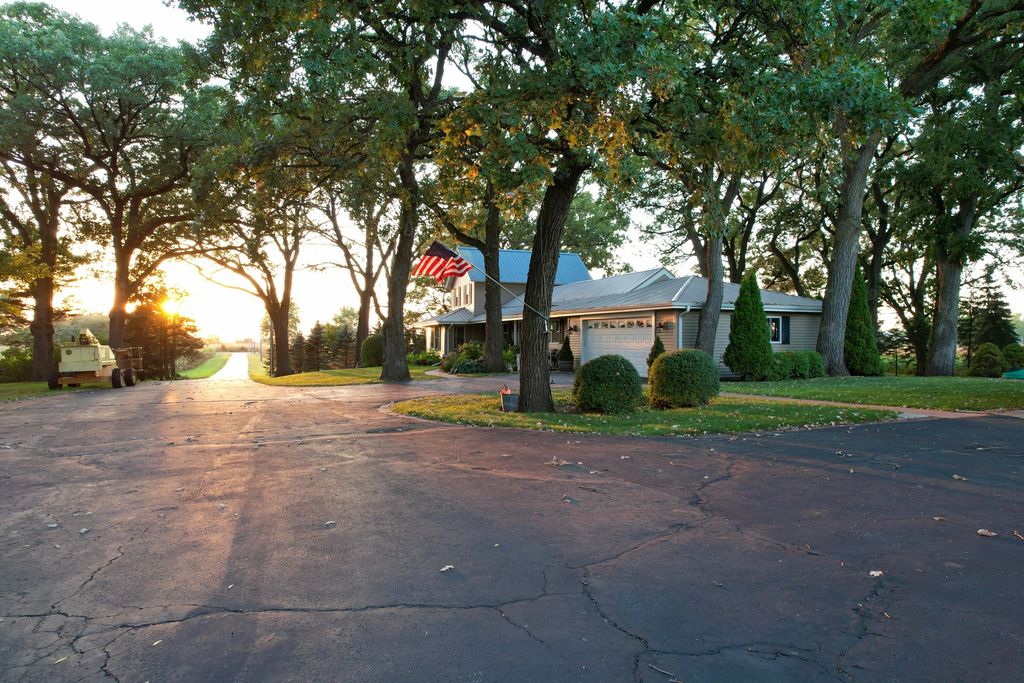 Set on 8.5 acres just outside Huntley, this property offers the perfect mix of space, privacy, and functionality. A 660-foot asphalt driveway lined by open cropland creates a grand approach, leading into a peaceful oak grove where two homes, a large barn, and a stocked pond are tucked away. The setting is both practical and picturesque, offering the charm of country living with the convenience of being minutes from town. The main home, custom-built in 1974, offers over 2,900 square feet of living space with four bedrooms and three and a half bathrooms. Designed with craftsmanship and comfort in mind, it features radiant floor heat throughout, a masonry fireplace, two high-efficiency heat pump systems, and a wood-burning outdoor boiler. A newer steel roof provides lasting durability, and the attached 2+ car garage adds convenience. The drive-in basement spans 2,650 square feet with 11-foot concrete ceilings-ideal for a workshop, equipment storage, or large-scale projects. The back deck overlooks a scenic pond stocked with bass and bluegill, creating a serene backdrop for morning coffee or evening sunsets. The second home, roughly 1,400 square feet, has been completely remodeled with an open floor plan, three bedrooms, and one bathroom. It includes a spacious front porch and detached two-car garage, making it perfect for extended family, guests, or rental income. A 48x76 barn provides exceptional utility with three levels including a basement, main floor, and partial upper floor-offering roughly 9,600 square feet of flexible space for storage, livestock, or workshop use. Mature oak trees surround the homes and pond, while the open ground offers ample room for recreation, gardening, or hobby farming. Located within Huntley's top-rated school district, the property sits near Pleasant Valley Conservation Area, adding scenic surroundings and opportunities for outdoor recreation. With easy access to town, excellent schools, and major routes, this property combines the best of country life and modern comfort. Whether you're looking for multi-generational living, hobby farming, or simply room to spread out, 6914 Mensching Road delivers exceptional space, privacy, and long-term value. Property is sold as is.