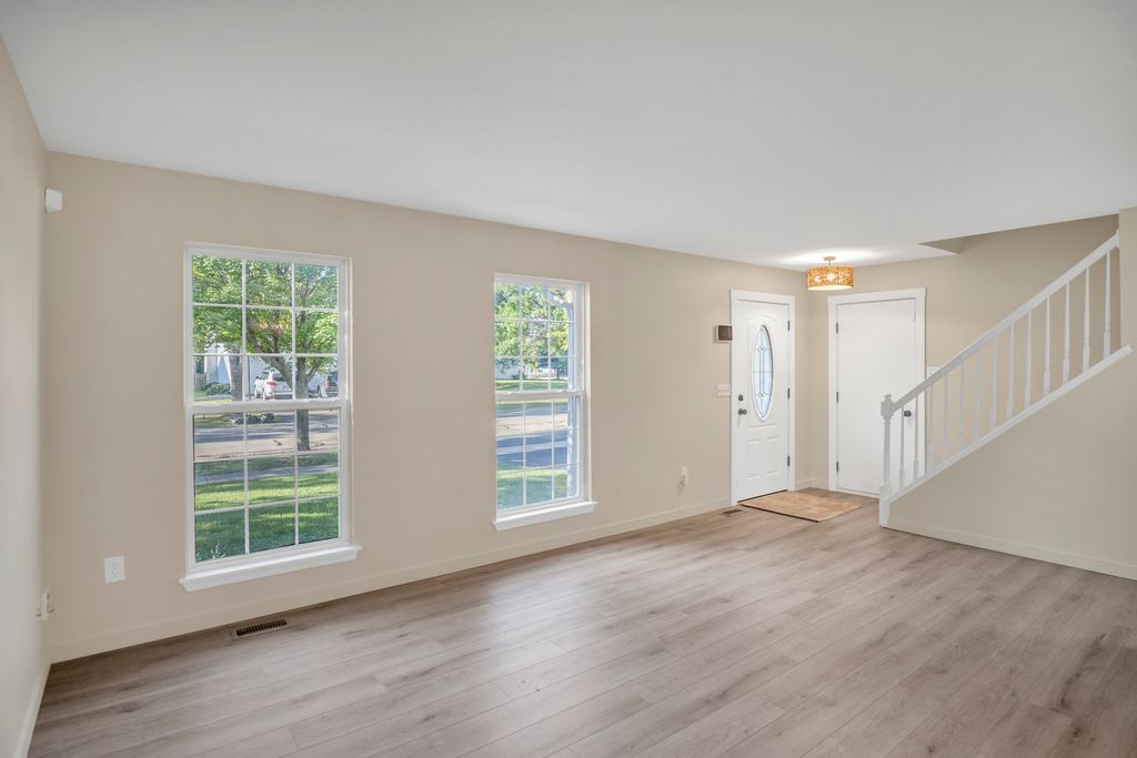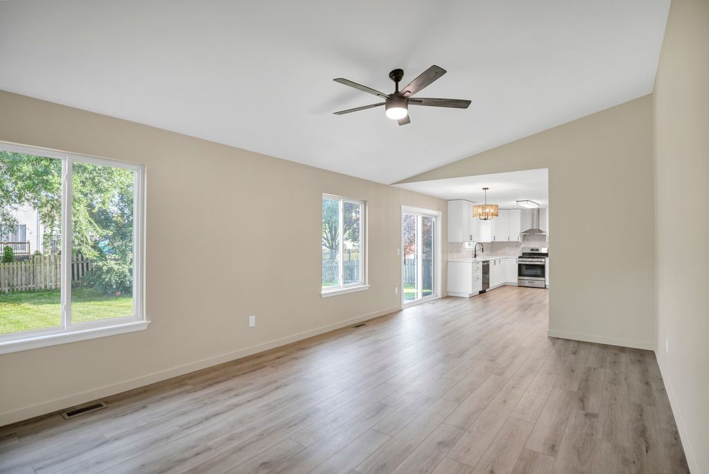 Nothing to do but move into this completely updated, move-in ready 3-bedroom home in desirable Lakewood Falls-nestled in the heart of Romeoville and within the highly rated Plainfield 202 School District. Every detail has been refreshed from top to bottom, including new wood laminate flooring, interior doors and trim, carpet, light fixtures, electrical outlets and covers, and remodeled bathrooms and kitchen. The formal living room is filled with natural light and flows seamlessly into the dining area, while the updated kitchen boasts 42-inch white cabinetry, quartz and butcher block countertops, a marble tile backsplash, new stainless steel appliances, and an eat-in space with a sliding glass door to the backyard. A spacious family room offers additional living or entertaining space, and the main level powder room has been stylishly upgraded with a new vanity, countertop, toilet, and fixtures. Upstairs, the primary bedroom features an ensuite bath with new vanity, countertop, toilet, and fixtures, accompanied by two additional bedrooms and a fully updated hall bath with matching upgrades. The unfinished basement-with crawl space under the family room-provides excellent potential for future living or storage space. Outside, enjoy a private patio and a community offering a clubhouse, pool, walking paths, and tennis courts, all for a low HOA fee. Ideally located near parks, shopping, dining, and major highways, this home combines modern updates, comfort, and convenience in one package.