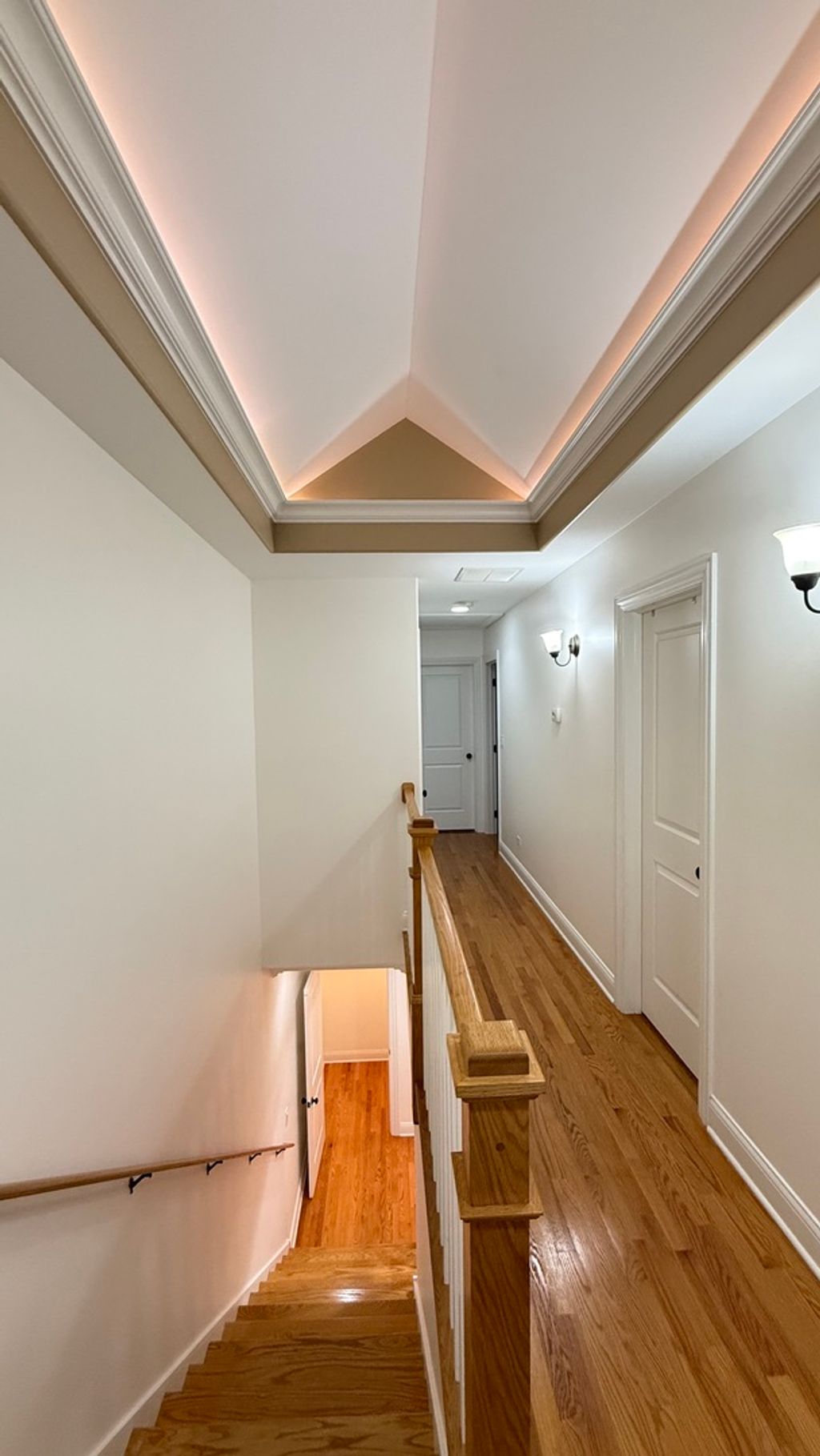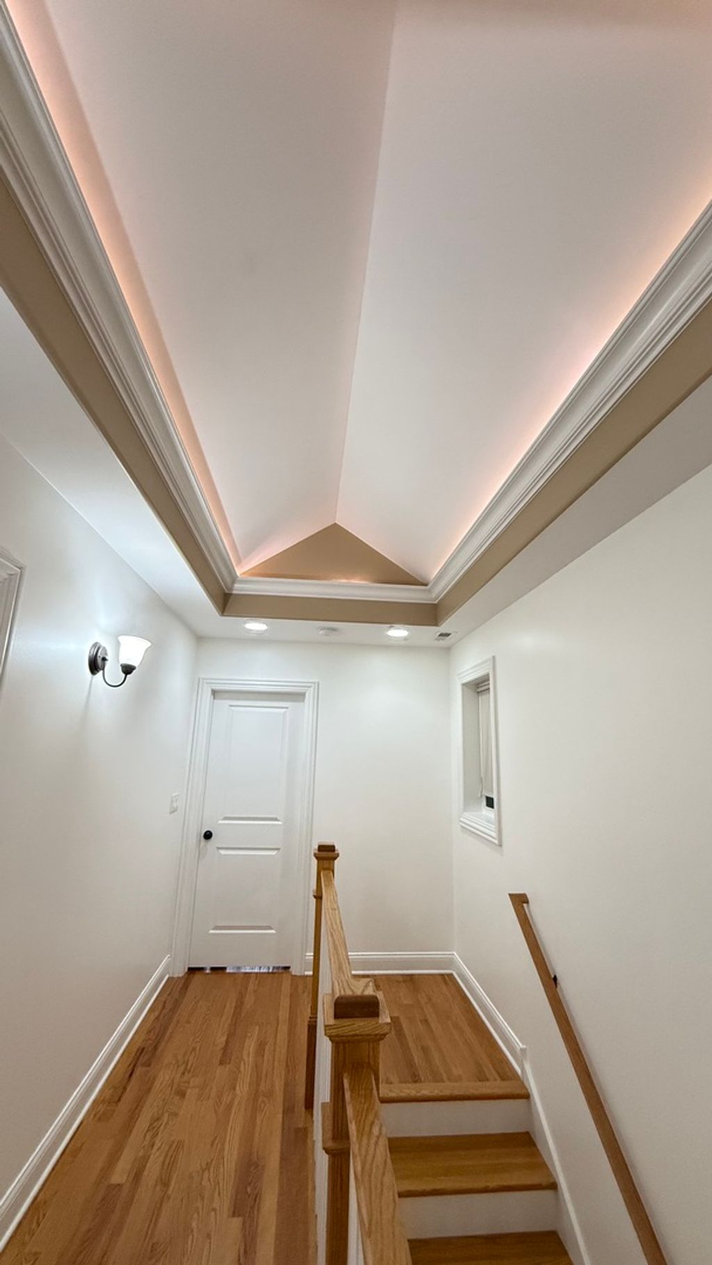 This beautiful home has 3300 s.f of living space with 5 beds and 3.5 baths Oak flooring throughout 1/f & 2/f w/Oak stair and balusters. Crown molding & recessed lights. Vaulted/tray ceiling in 2/F bedrooms w/ceiling fan. Walk out finished basement with tile flooring, 42"custom maple kitchen cabinets w/granite counter tops. Unique garage with pull down stair for storage space. . Great layouts.