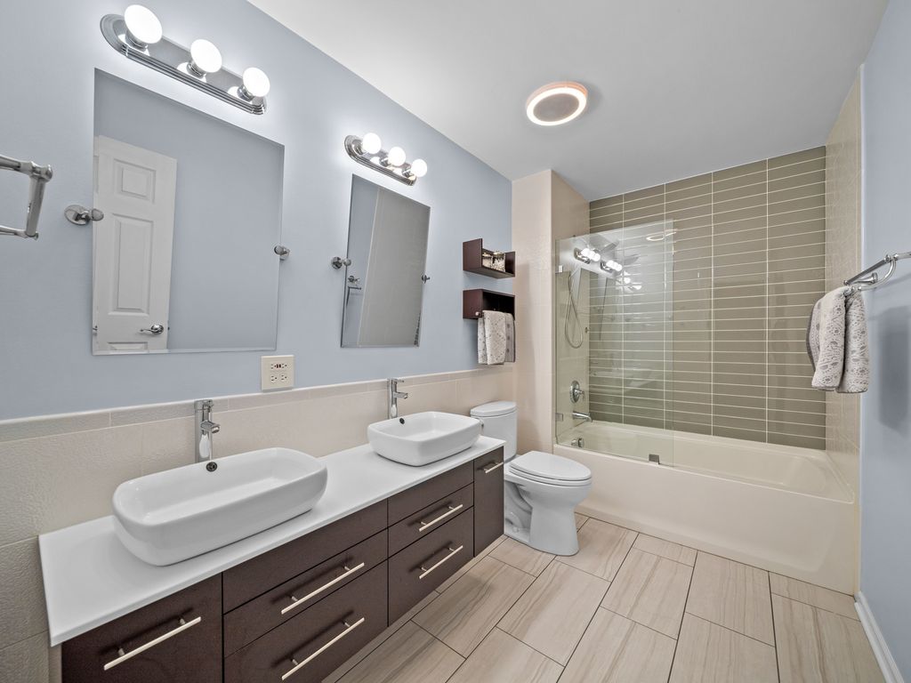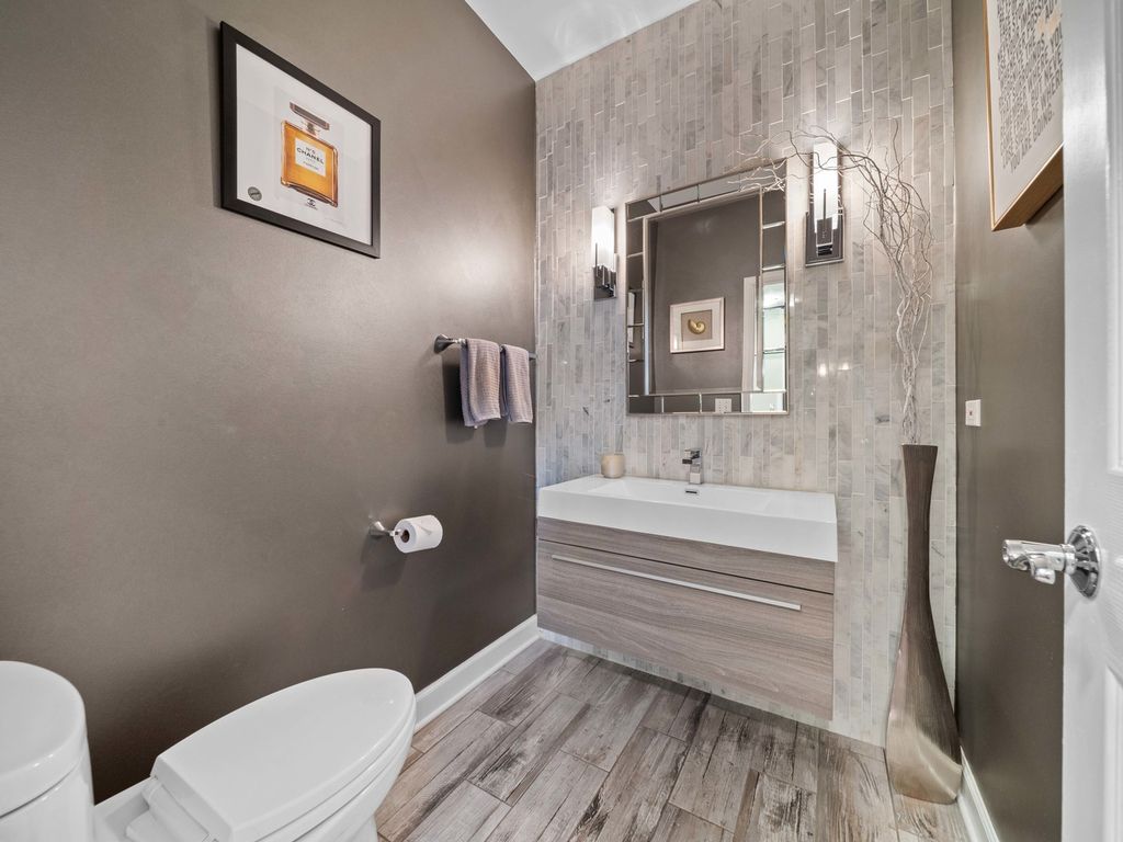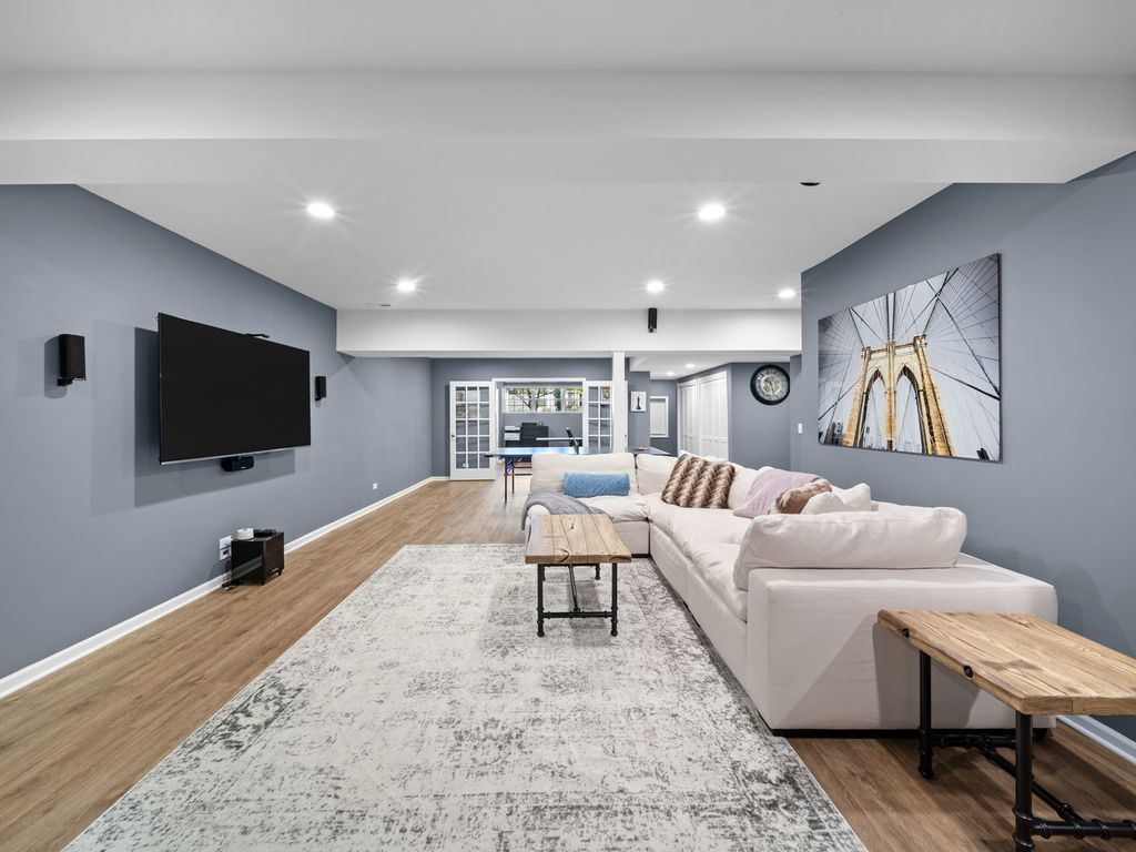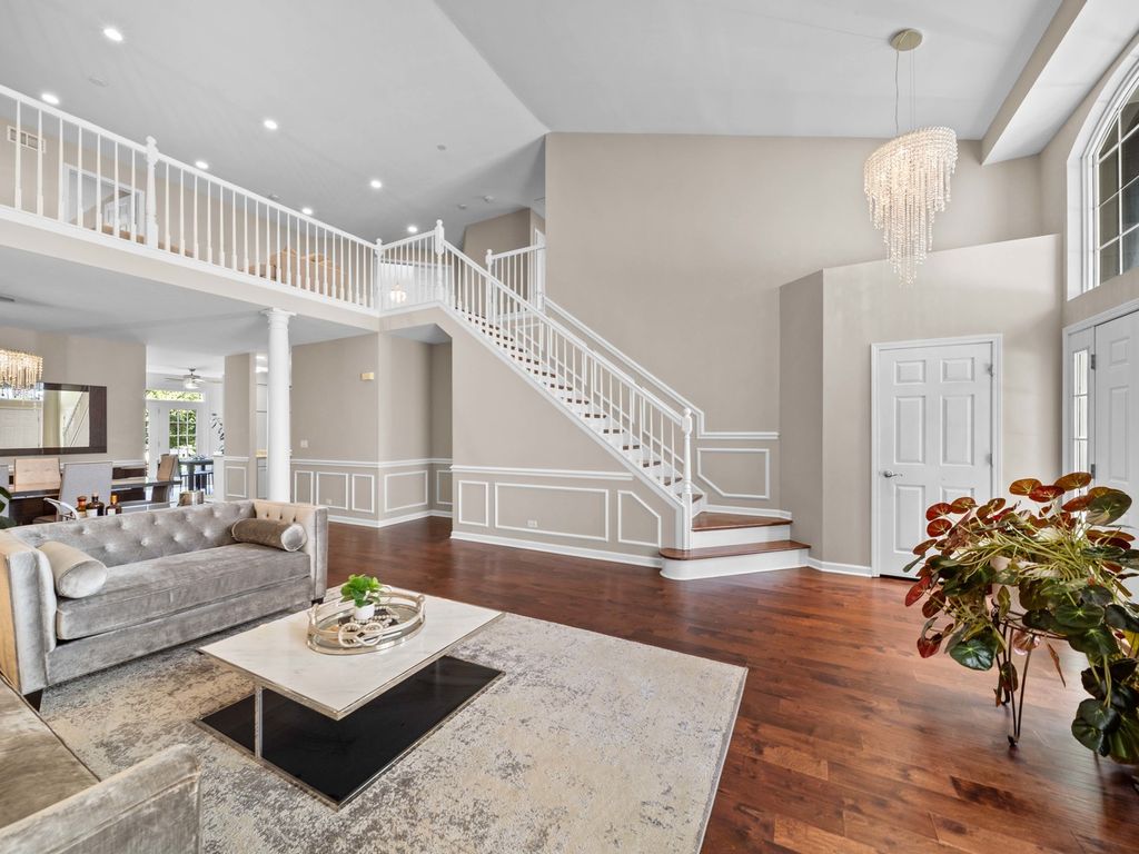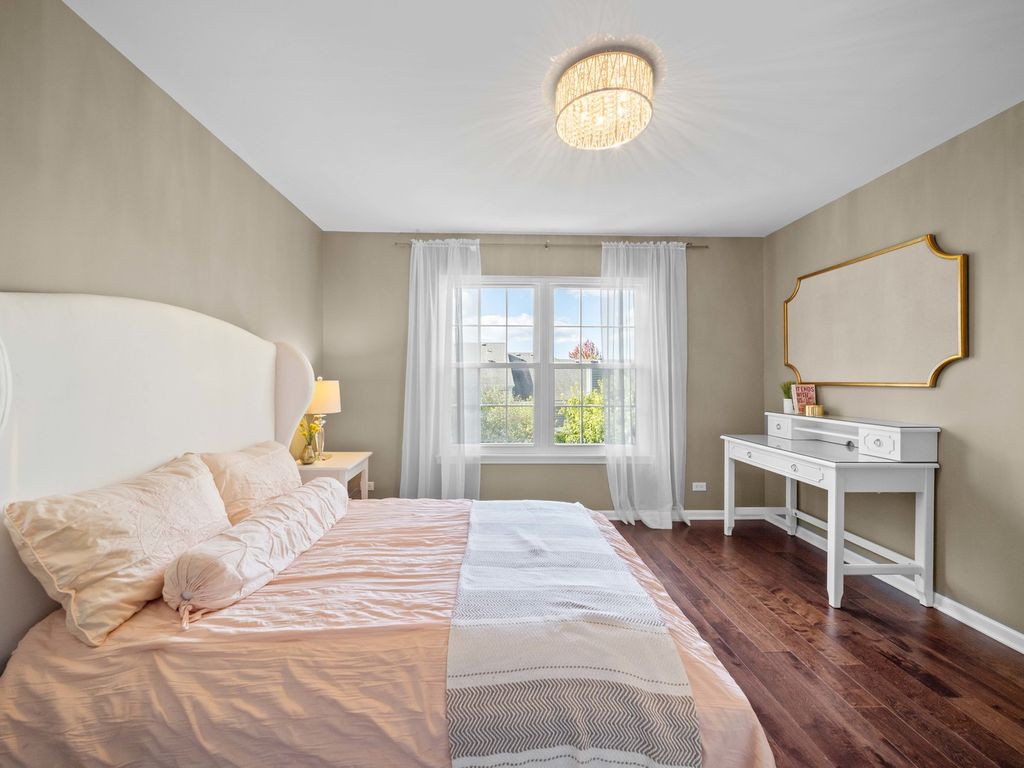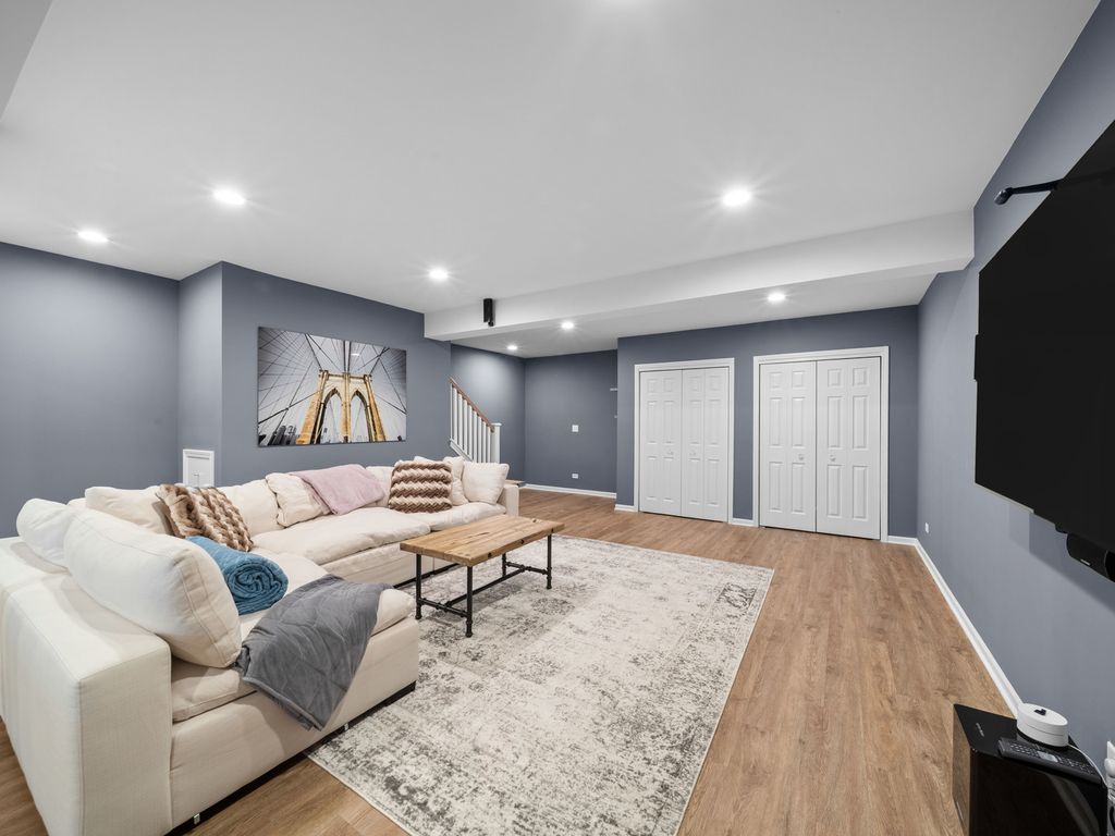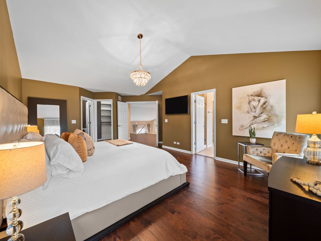 Welcome to this rarely available, largest model in the highly sought-after Ivy Club within District 27! This beautifully updated townhome perfectly combines elegance with modern comfort. A grand two-story foyer welcomes you in, with a sparkling crystal chandelier and gleaming hardwood floors setting the tone for the refined design found throughout. Vaulted ceilings and grand windows open to formal living and dining rooms accented by detailed millwork, hardwood flooring, and a convenient wet bar-ideal for entertaining! The updated kitchen features granite countertops, newly refinished cabinetry, premium stainless steel appliances, pantry closet, and a central island, offering plentiful counter space and abundant storage! A bright breakfast nook opens to a private deck for seamless indoor-outdoor living. The inviting family room offers a warm and comfortable gathering space with recessed lighting and hardwood floors. Completing the main level is a stylish and modern half bath and well-appointed laundry room. Upstairs, the spacious primary suite offers a double-door entry, dual walk-in closets with custom built-ins, and a spa-inspired bath with dual granite vanities, soaking tub, and separate shower. Two additional bedrooms with custom closets, a versatile loft overlooking the living room, and an updated hall bath complete the upper level. The finished basement adds more exceptional living space with a large recreation room, office or additional bedroom, workout area, and extra storage for all your needs year round. Additional highlights include a recently renovated deck, updated mechanicals and attached two-car garage. Recent HOA updates include roof, gutters, deck, and repaired and repainted siding. Enjoy low-maintenance living in one of Northbrook's premier communities-where quality craftsmanship, thoughtful updates, and an unbeatable location make this home truly exceptional!