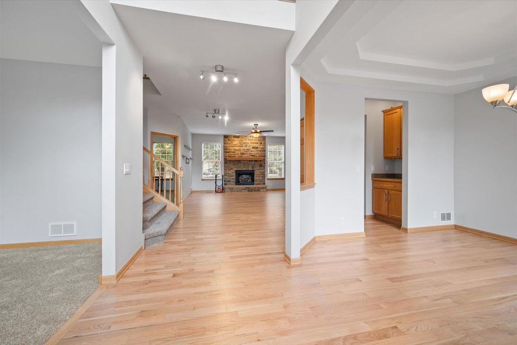 CHARMING 4 BDRM, 2 1/2 BTH, 3 CAR GARAGE HOME ON A BEAUTIFUL LOT WITH GORGEOUS POND VIEWS ACROSS YOUR FRONT YARD! You'll feel right at home in this inviting 4 bdrm, 2 1/2 bth home offering comfort, style & plenty of space for modern living. Enjoy brand new carpet throughout & freshly refinished gleaming hardwood floors that add warmth & elegance. The spacious living & dining areas flow seamlessly, creating an ideal setting for entertaining or relaxing with family. Family room with fireplace & first floor office plus so much natural light streaming thru large windows. The kitchen with it's walk in pantry, stainless appliances, & generous solid oak cabinetry is a chefs delight! First floor laundry/Mud room is so convenient. Upstairs are four generous bedrooms. Primary bedroom is very large with large walk in closet, double sinks, seperate tub & shower and private toilet. Outside enjoy a pretty well kept lot with room to relax, play or garden. With it's great layout, fresh updates (new roof 2024, AC 2019) and inviting feel, this home is ready to move in and make it your own! Side yd of property is immediately adj to 1/2 acre with mature trees that cannot be built upon. It is owned & maintained by the association. Great extra open space!