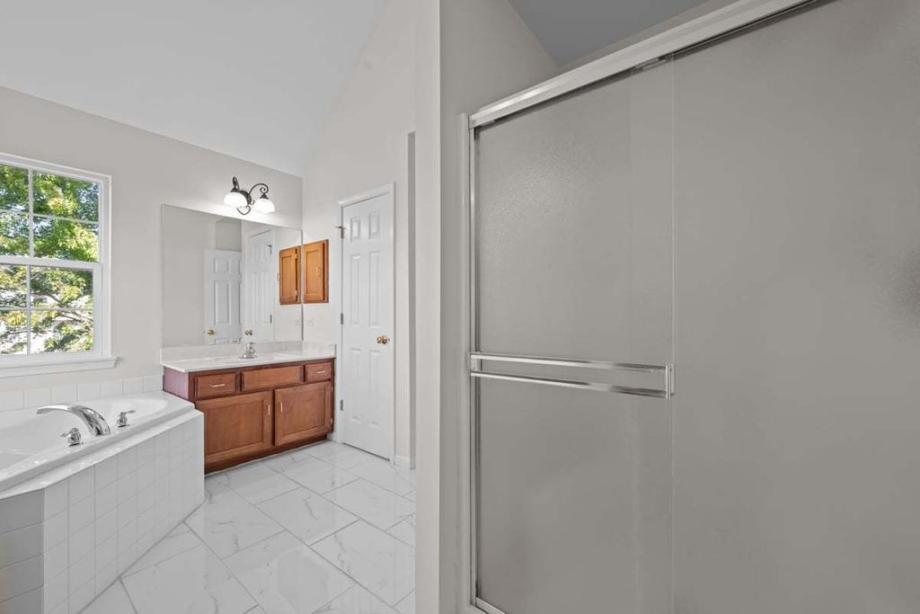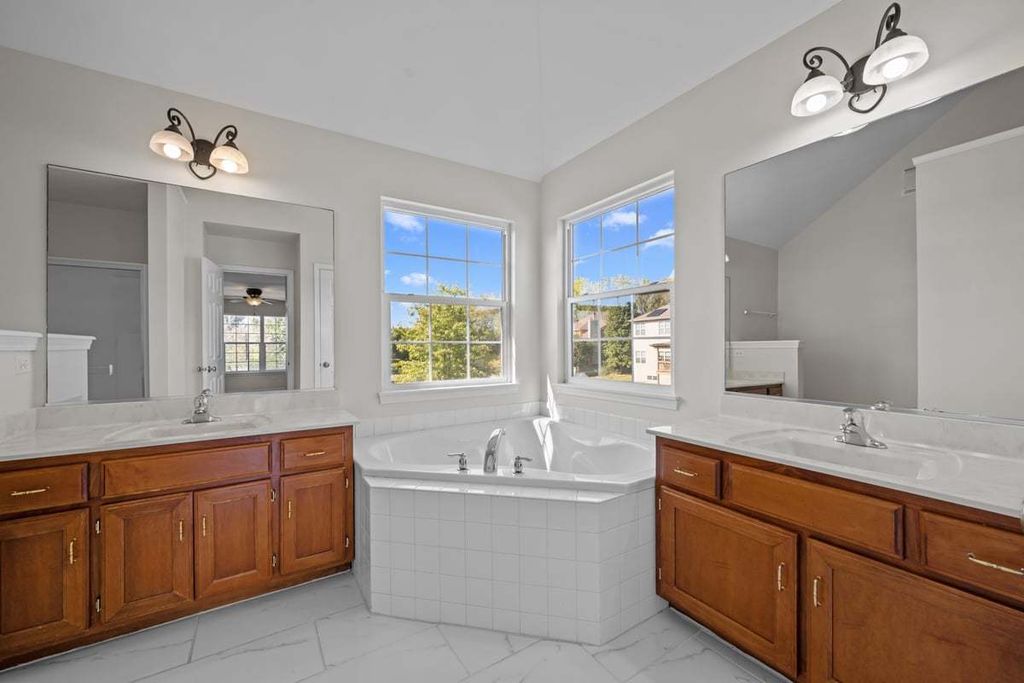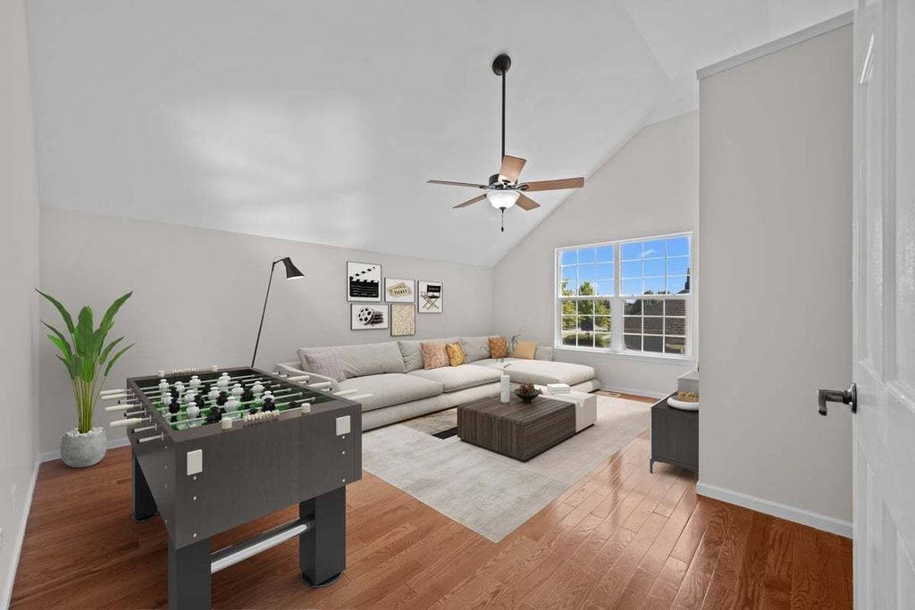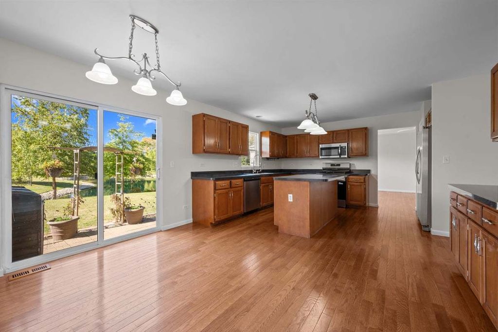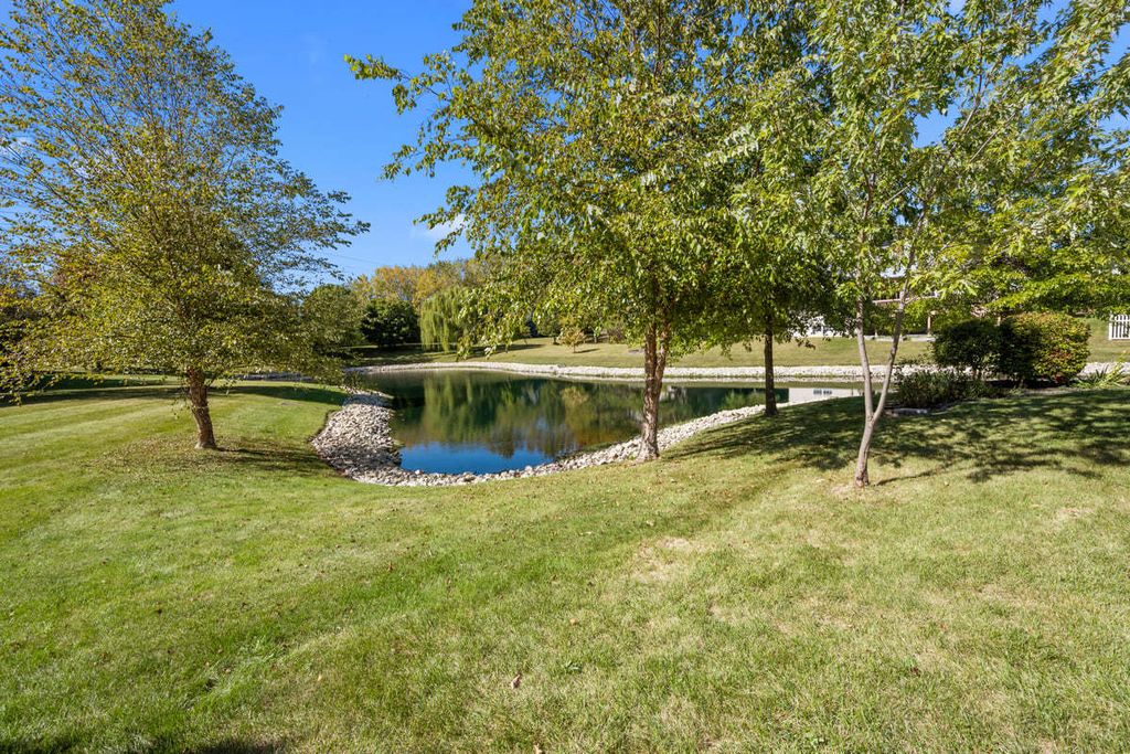 Welcome to this brick and stone home with beautiful pond views. A dramatic two story entrance with curved staircase greets you as you enter. Hardwood floors flows though out the first and second floor. French doors open to the first floor office. Entertain family and friends in your formal living and dining room. The kitchen is highlighted with a center island, all new stainless steel appliances and large eating area. Beautiful pond views can be enjoyed from this spacious two story family room which highlights an addition staircase leading to the second floor. The master suite has 2 walk in closets, private bath with corner tub, separate vanities and a shower. All bedrooms have ceiling fans. The bonus room provides you with a second floor living area or could be used for a fifth bedroom. You will enjoy the peaceful setting of this home with the beautiful pond views. New roof and hot water heater in 2024.