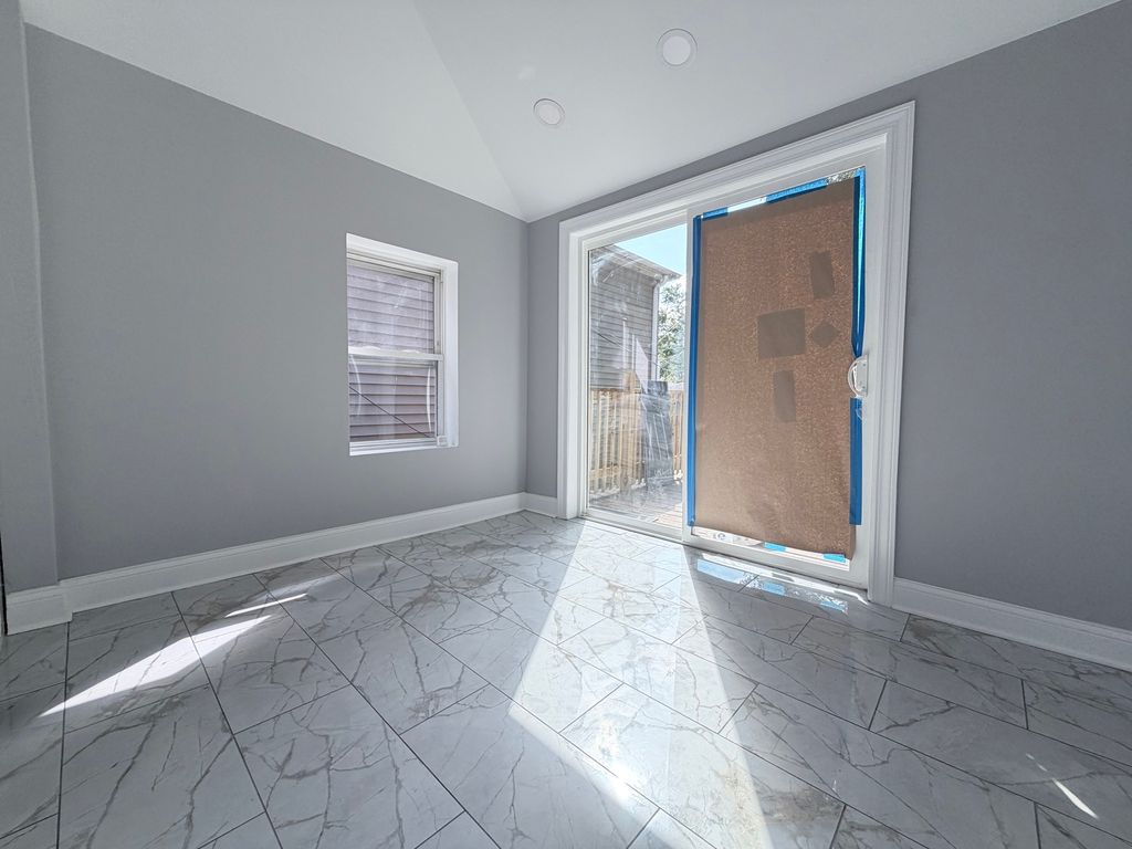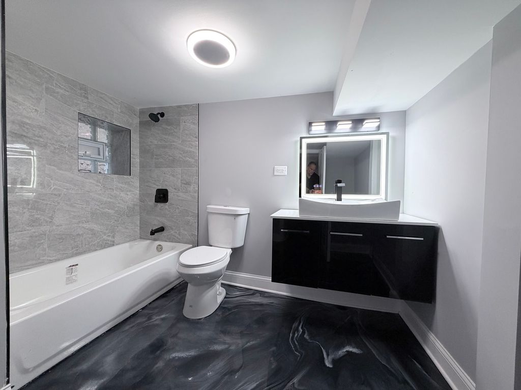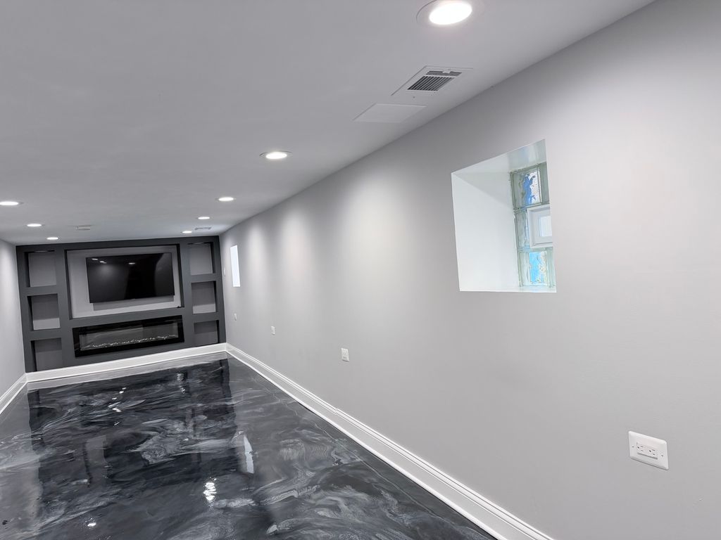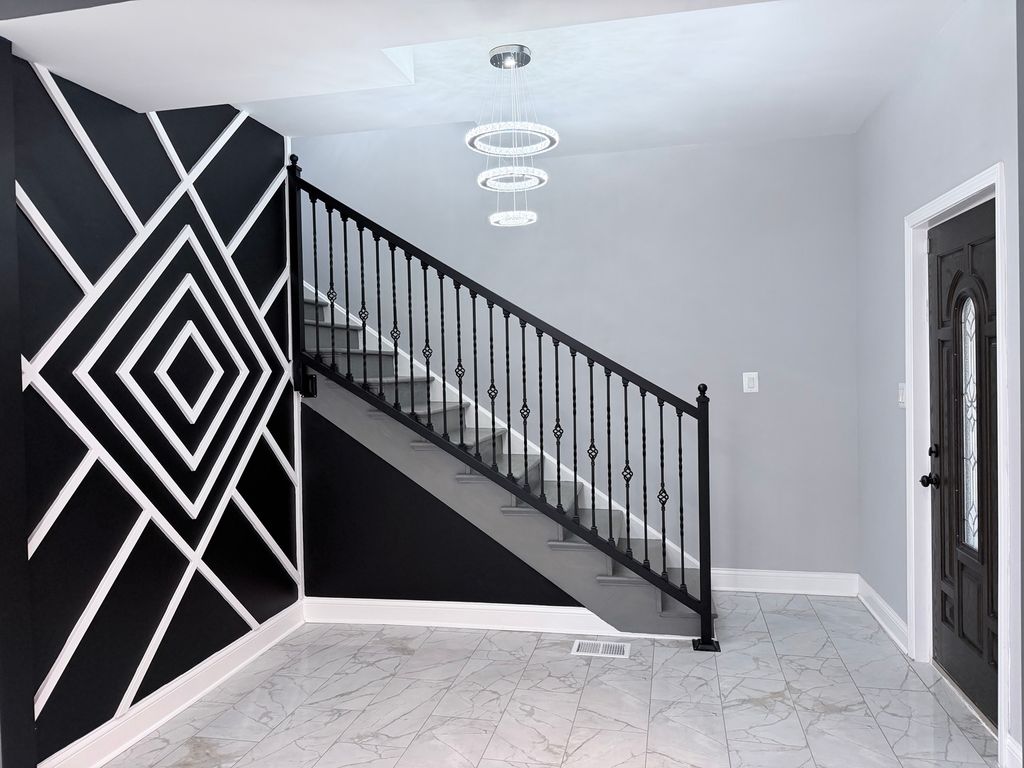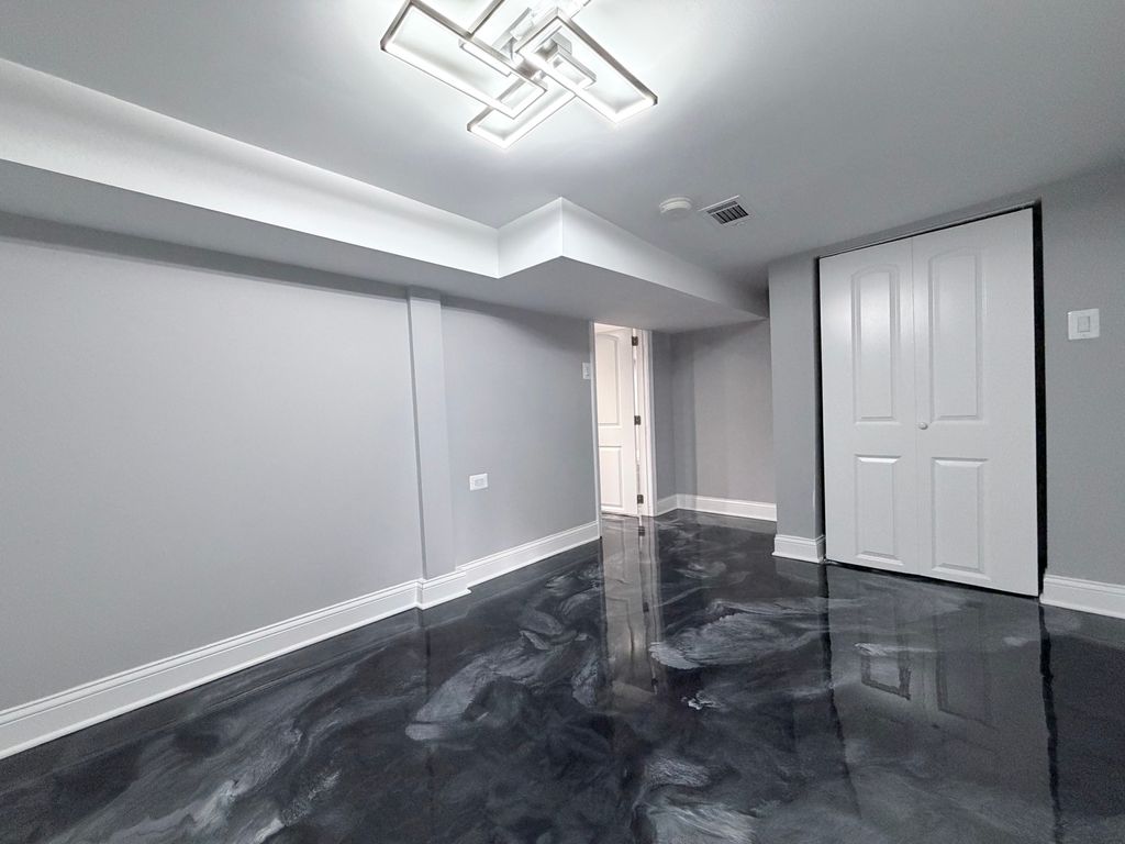 Welcome Home! This beautifully renovated 5-bedroom, 3-bath home perfectly blends modern luxury with everyday comfort. Featuring 3 spacious bedrooms upstairs, 1 on the main floor, and 1 in the finished basement, there's room for everyone to live, work, and relax. You'll fall in love with the modern kitchen-complete with soft-close cabinetry, quartz countertops, porcelain tile flooring, and top-of-the-line Samsung stainless steel appliances. The open-concept living room showcases a sleek electric fireplace and a 75" Samsung flat-screen TV, while the huge family room downstairs features stunning epoxy floors, another electric fireplace, and a 55" Samsung flat-screen TV-perfect for movie nights or entertaining guests. Everything is new inside and out: roof, siding, soffit, fascia, gutters, concrete sidewalk, plumbing, electrical, windows, doors, trim, paint, and flooring. Enjoy comfort and efficiency with a new furnace, central air system, water heater, and high-end washer/dryer combo unit. The porcelain-tiled bathrooms feature sleek modern vanities and finishes. Step outside to your expansive new deck-ideal for entertaining or relaxing outdoors. Located close to restaurants, shopping, and expressway access, this move-in-ready showstopper truly has it all. Don't miss your chance to own this stunning, fully updated home!! Schedule your private showing today!