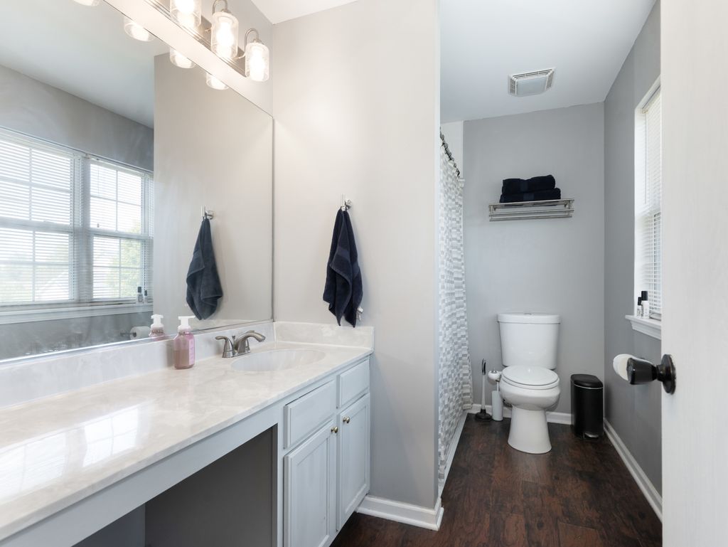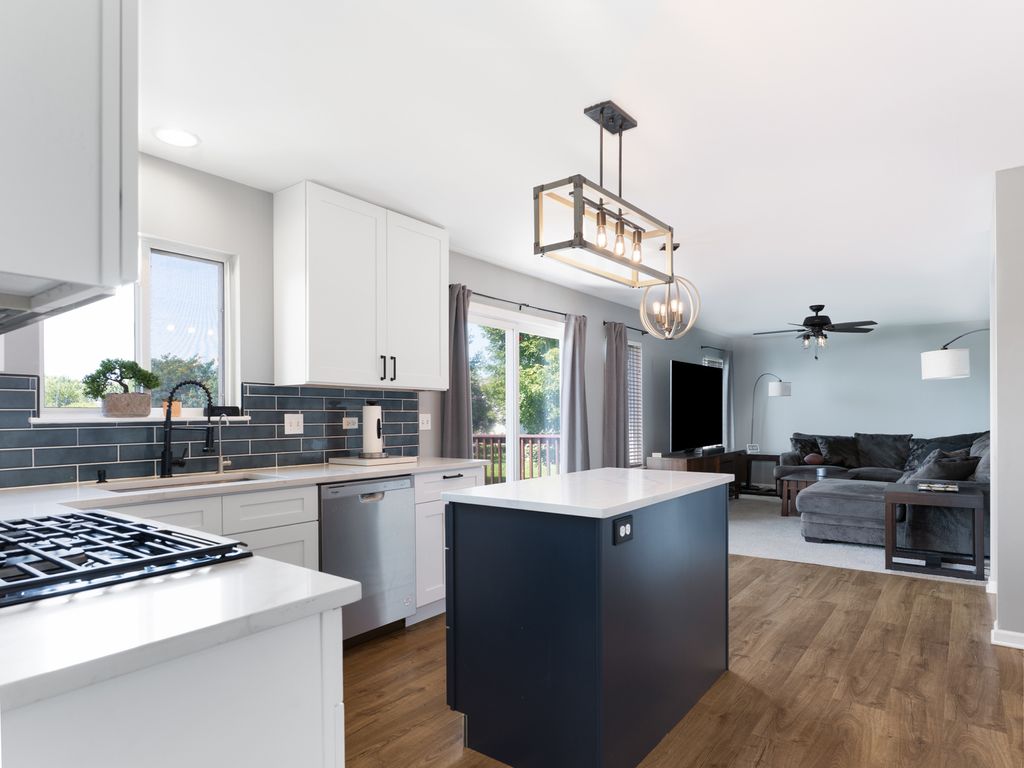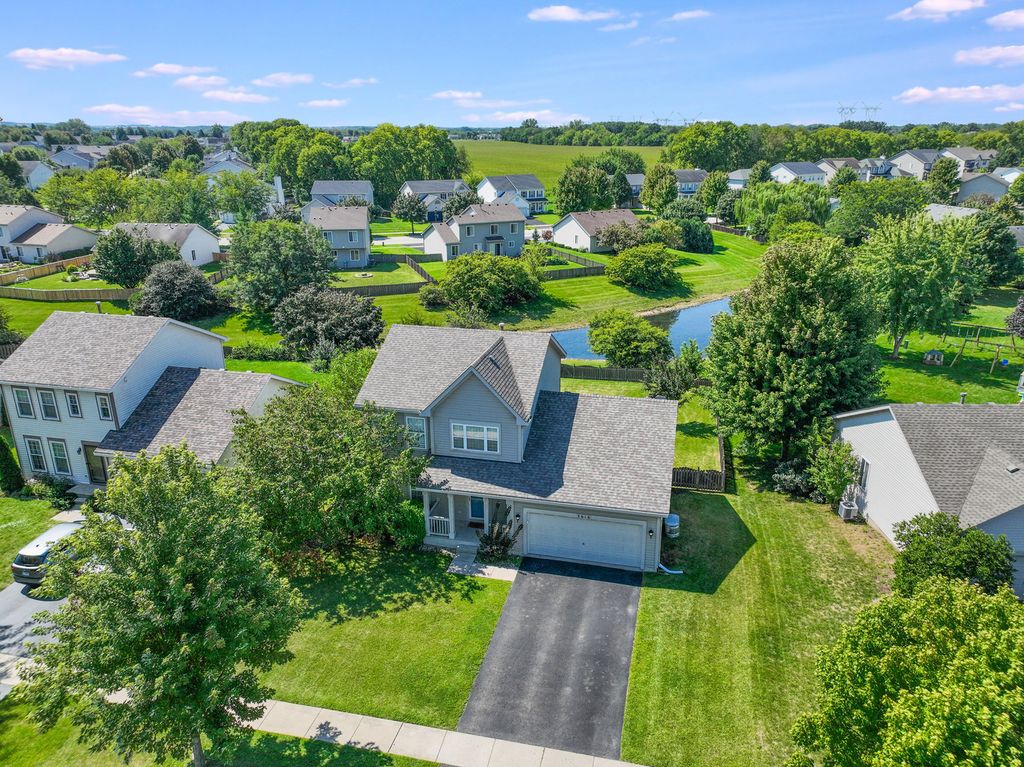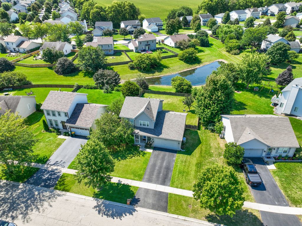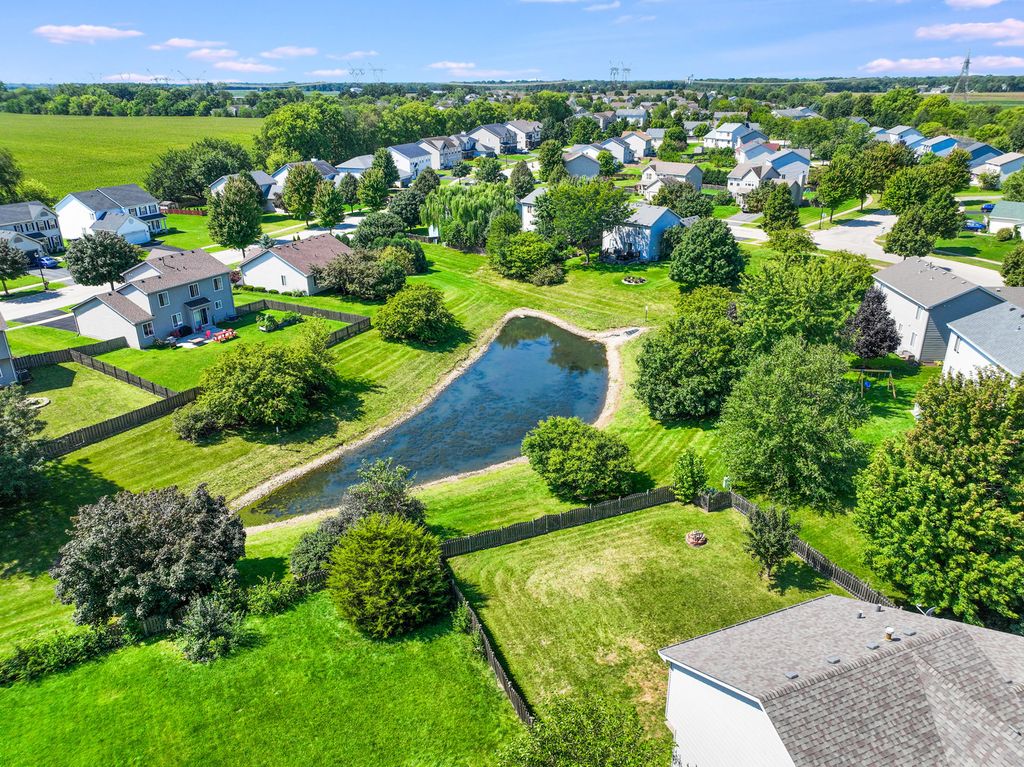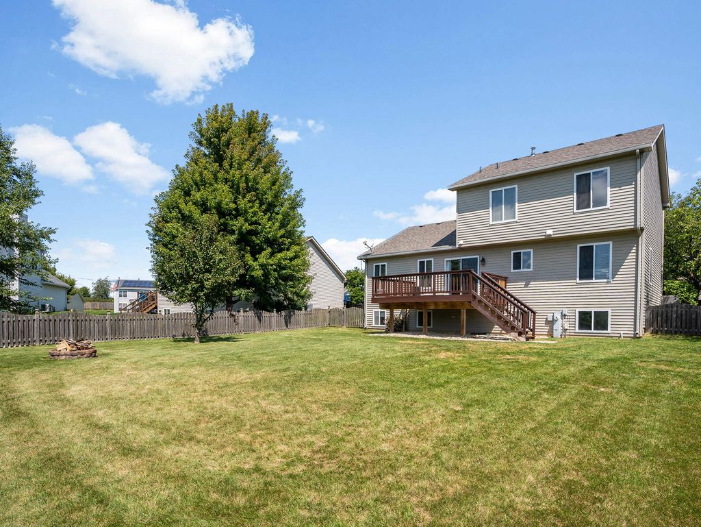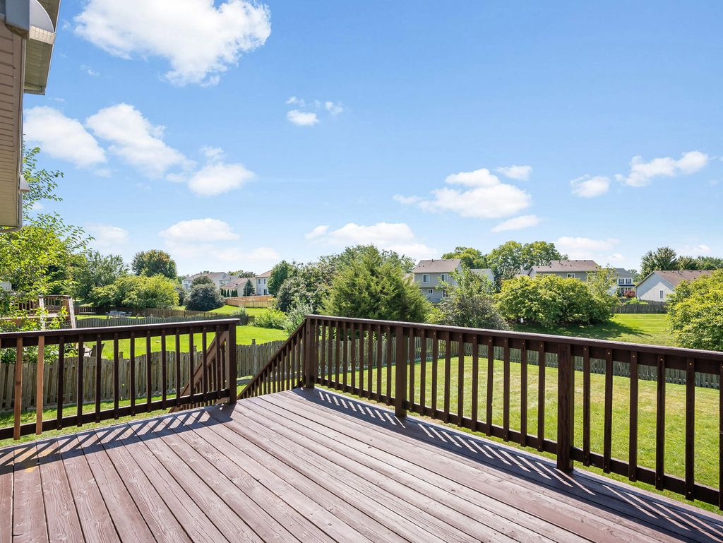 Lakewood Springs Subdivision! Curb appeal +++ with relaxing POND VIEW! Covered front porch opens to spacious foyer. White trimwork and neutral colors throughout. Large living room has plush neutral carpeting. Formal dining room with terrific daylight. Stunning island kitchen offers recessed fridge, all stainless steel appliances, gorgeous custom lighting, subway tile backsplash, tons of white cabinetry and huge pantry closet, plus eating area with sliding door to the deck. Relax in the family room with overhead fan/lighting. 1st floor powder room. Upstairs is the primary bedroom with spacious private bathroom and additional bedrooms with convenient access to the full hall bath. Unbelievable full basement with above-grade windows, awaits your ideas. HUGE deck overlooks the private, fully-fenced yard with firepit and pond view. Great location that is convenient to EVERYTHING in a terrific pool/clubhouse community! Don't miss this one!