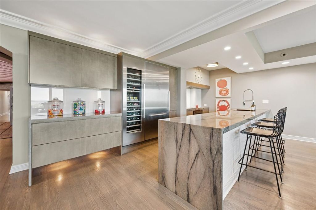 This stunning, 2800 square ft 4 bed, 3 bathroom home located in a boutique East Lincoln Park condominium is the only apartment in the building with a modern open-concept kitchen in the front of the unit. The reimagined floorplan, created by famed architect Stanley Tigerman, effortlessly combines modern design with vintage charm - and breathtaking views of Lincoln Park, Lake Michigan and the Downtown Chicago Skyline. Located on a quiet, leafy street directly across from Lincoln Park Zoo, public transportation (22,36, 151, 156 bus lines), miles of running trails, bike paths and beachfront, this gracious home with split bedroom floorplan seamlessly combines privacy and function. Features include a generously sized kitchen with marble countertops, high-end appliances, in-unit washer / dryer; three full bathrooms; and a gracious lake facing living room and dining room. Elevator entry to your own private foyer and breathtaking central gallery with original plaster barrel ceiling complete the unique elegance of this home. Additional features include hardwood floors throughout, two zone space pac AC and dramatic, built-in cabinetry in the 4th bedroom (currently used as a home office). One indoor garage space included. This elegant home is located in the top rated Lincoln Park Elementary School boundaries. Common Elements include outdoor deck w/bbq & gardens; a large storage locker & a newly renovated exercise room. Pets of all sizes welcome!