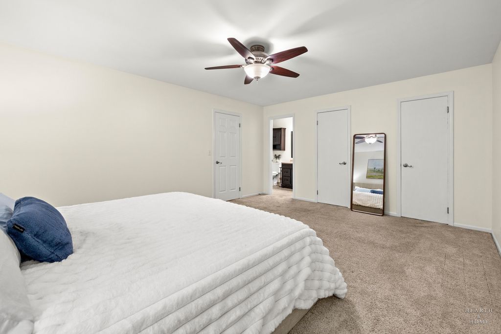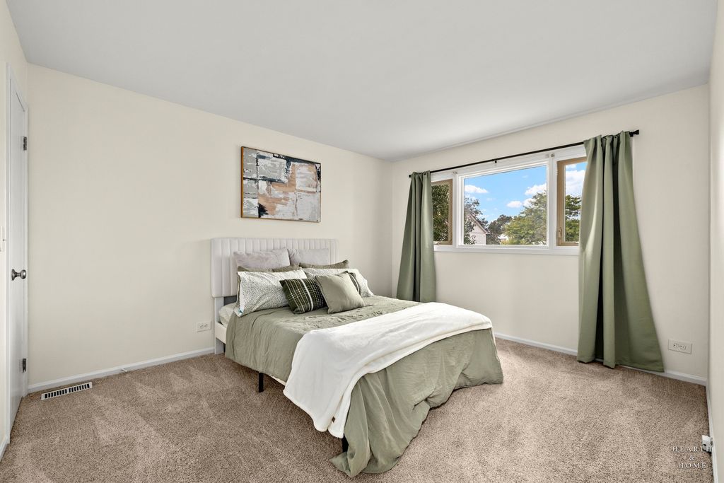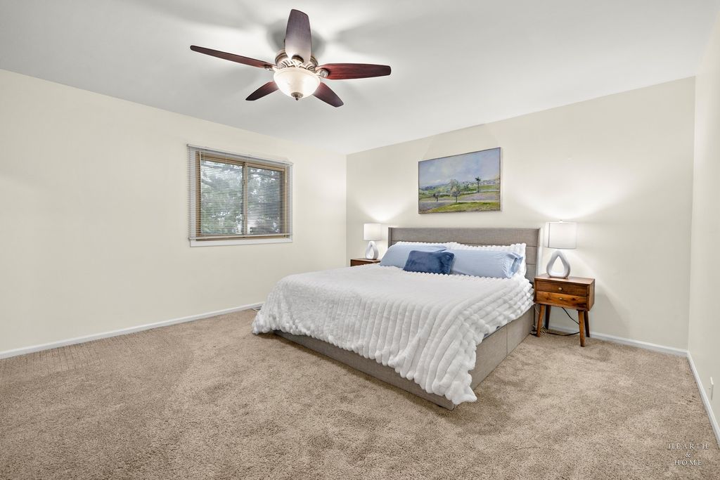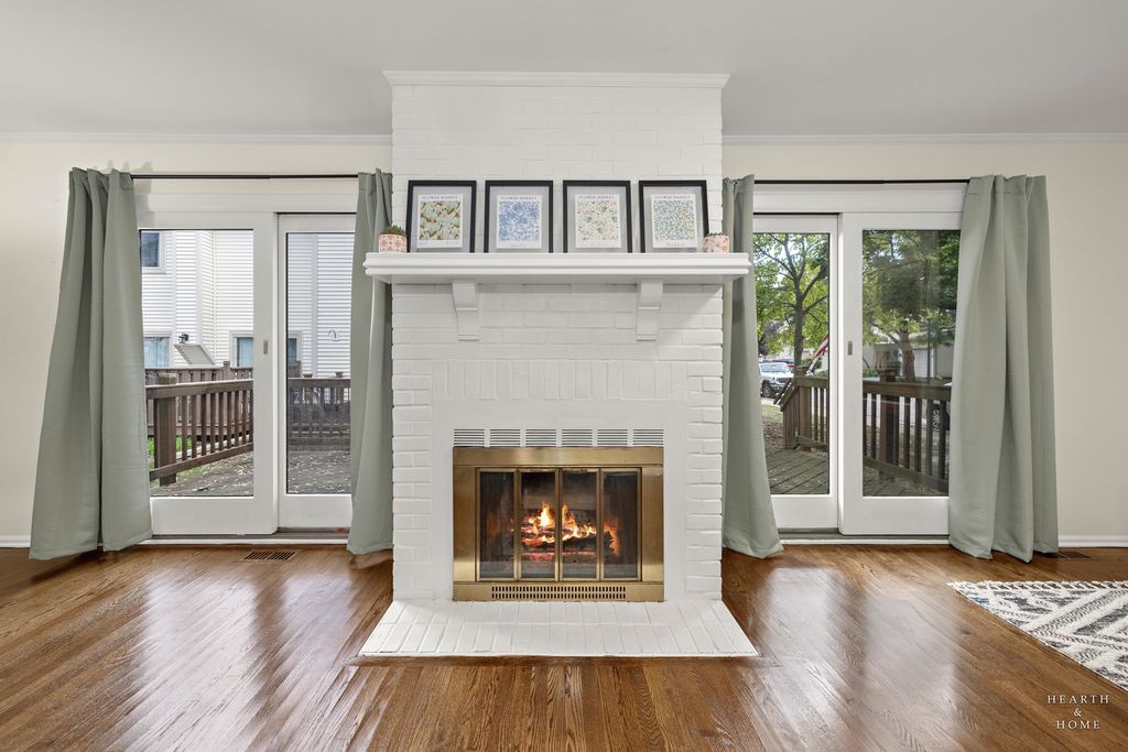 Bright and welcoming, this end-unit 3-bedroom townhome in Palatine combines fresh updates with the comfort of low-maintenance living. Enjoy a private entry and attached 1-car garage. The main level features brand-new gleaming hardwood floors and fresh, neutral paint, creating a clean and modern lifestyle feeling. The kitchen offers plenty of cabinet and counter space, a newer dishwasher, and a separate breakfast area-ideal for morning coffee or casual meals. The living room features a brick gas-start fireplace and two patio doors that bring in natural light and open to the deck, making it easy to enjoy the outdoor space. Upstairs, the primary bedroom includes a walk-in closet with built-in organizers. The extra-large hallway walk-in closet adds storage space along with two additional bedrooms that can flex for family, guests, or a home office. The finished basement with built-in bar and sink is perfect for game days, movie nights, or hosting friends. A separate laundry area and storage keep things organized. Step outside to the deck-great for grilling and relaxing. Convenience at its best-shops, dining, and amenities are all just minutes away.
