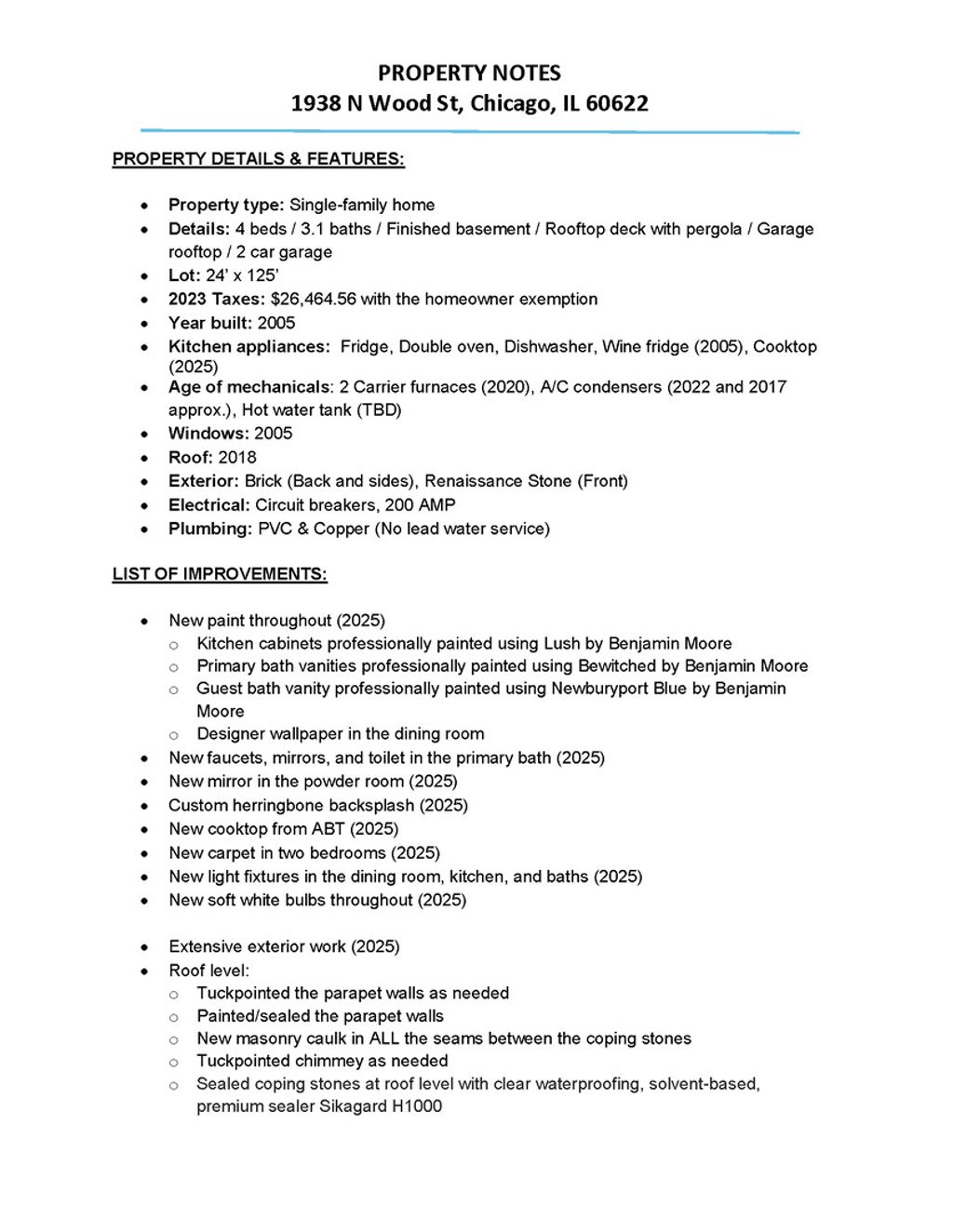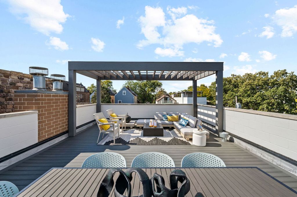 * Check out the video & the 3D tour of this home * Charming & stunning three-story all masonry home nestled in a wonderful block of Bucktown! This home features 4 bedrooms (3 upstairs), 3.5 bathrooms, a finished basement, front and rear patios, a garage rooftop deck, a two-car garage, and the crown jewel: a stunning rooftop deck with a pergola. This residence offers the perfect blend of elegance and modern updates. It features an open, airy, and intelligent floor plan, with large windows that bring in ample natural light from all exposures. The main floor flows beautifully, featuring a large, sunny living room, a dedicated dining room, a private powder room, a stunning kitchen with modern-style cabinetry, professional-grade appliances, stone countertops, a custom herringbone pattern backsplash, and a spacious pantry. A bright family room with a fireplace leads to the garage rooftop and the rear patio, which are an entertainer's dream, perfect for grilling, dining, relaxing, outdoor movie nights, and watching your plants grow. The second floor features three sunny bedrooms and two full bathrooms, with the large primary suite boasting an oversized walk-in closet and an attached bath with designer-grade finishes, including dual vanities, a walk-in shower, and a jacuzzi tub. The top-floor den/office, complete with a wet bar, opens onto the massive rooftop deck, featuring a pergola that creates a true oasis in the city, unlike any other in the neighborhood. The lower level, featuring heated floors, is both cozy and spacious, and includes a family room with a walk-out patio, a fourth bedroom, a full bathroom, a laundry room, and storage space. Several recent updates include: New paint throughout, professionally painted kitchen cabinets and vanities, extensive exterior masonry work, new carpet, new light fixtures, two new Carrier furnaces, and one A/C, Hunter Douglas window treatments, a garage rooftop deck, and a full rooftop deck with pergola (Ask your agent for the detailed list of improvements). This impeccable home is not a flip or investor-owned; the owners have made numerous additional improvements with love and care, making it completely move-in ready. Fall in love with all that Bucktown has to offer - Unbeatable location! Private security, two blocks to the Bloomingdale Trail, and a few minutes' walk to Wicker Park, Holstein Park, Walsh Park, Churchill Field Park, popular restaurants/bars/retail, coffee shops, nightlife, and so much more! Easy access to the Damen Blue Line, Clybourn Metra station, and the highway, and situated in the desirable Pulaski Elementary School District - Welcome home!